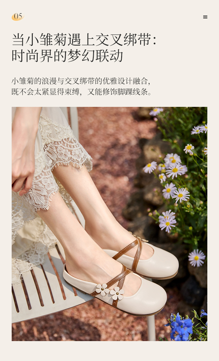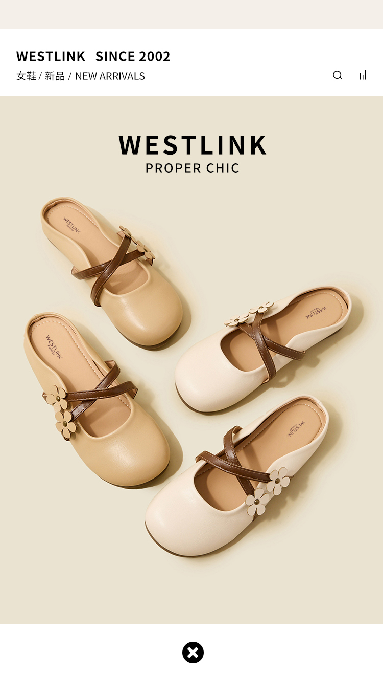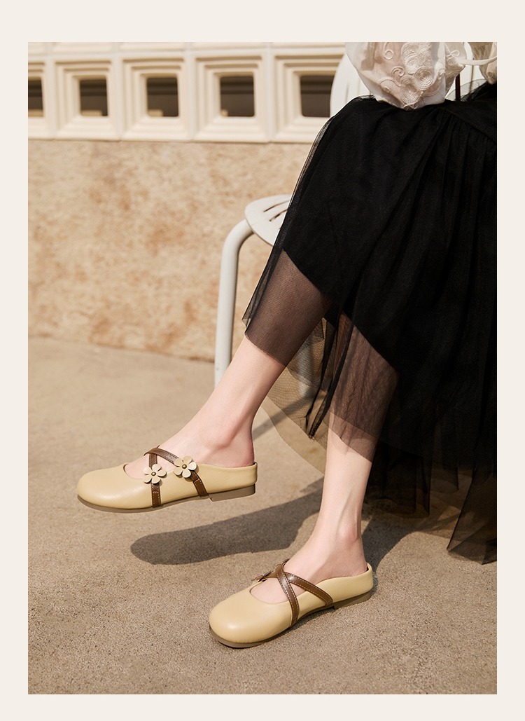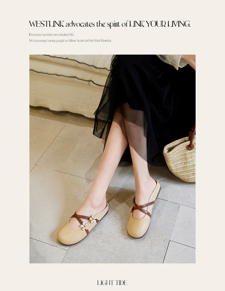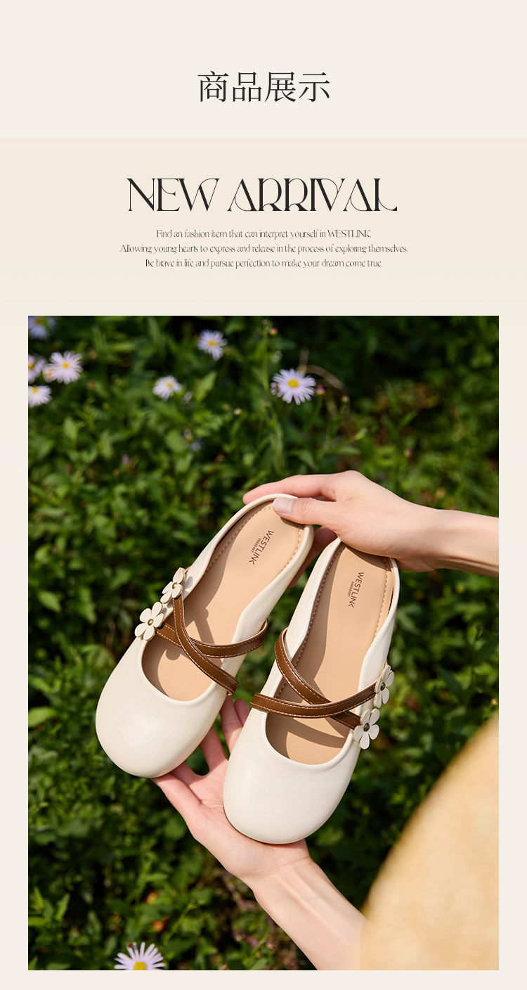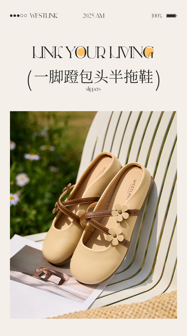 【限时秒杀】西遇包头半拖鞋女新款春夏花朵法式圆头平底外穿玛丽珍穆勒鞋V0656467