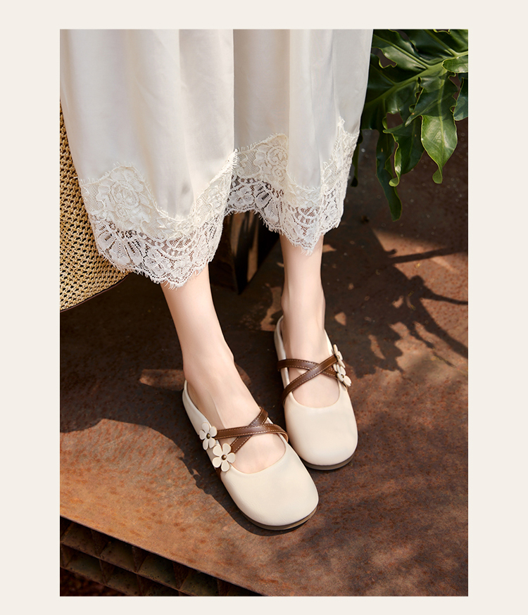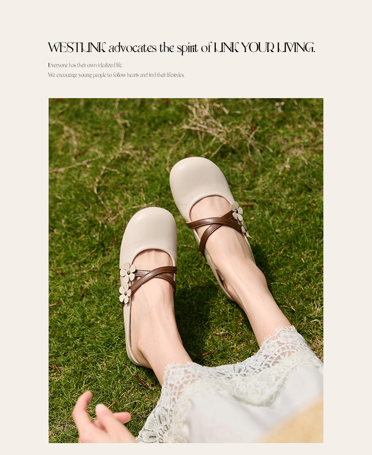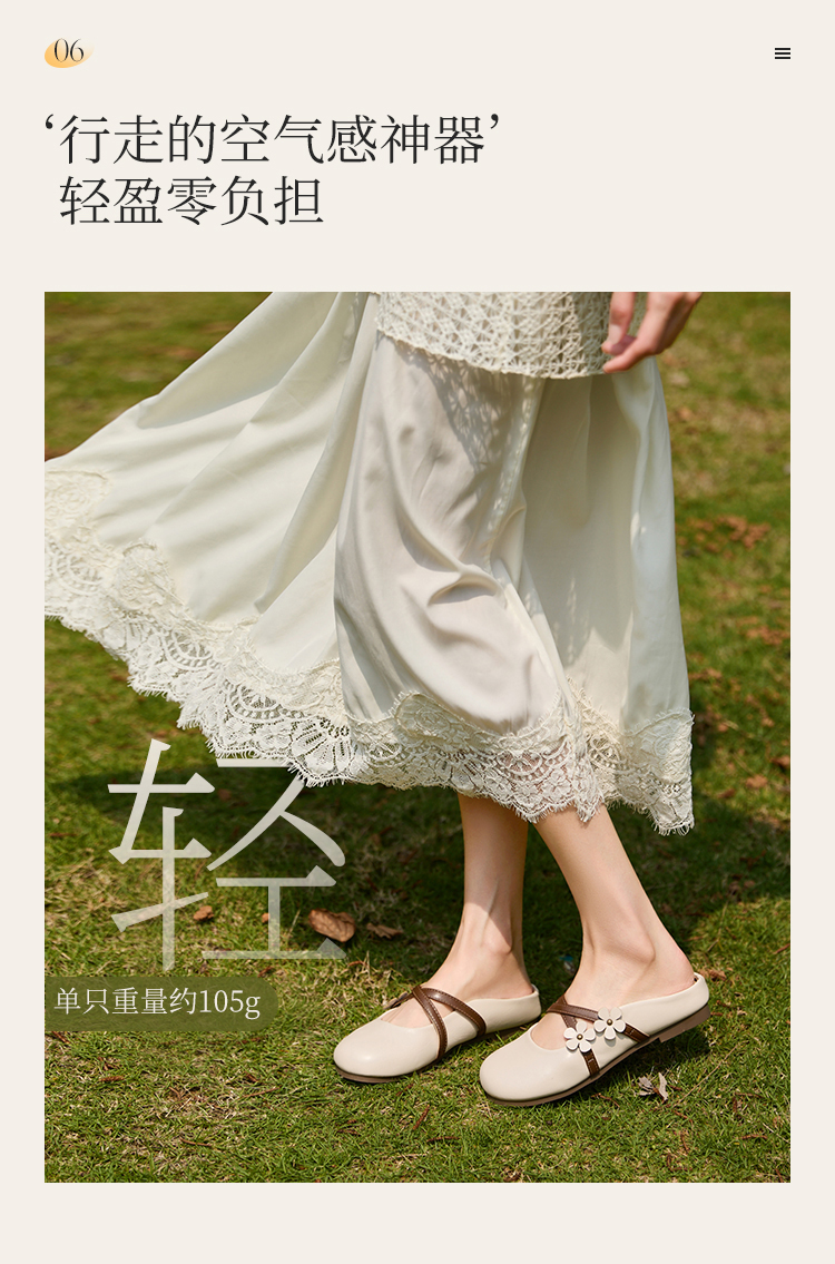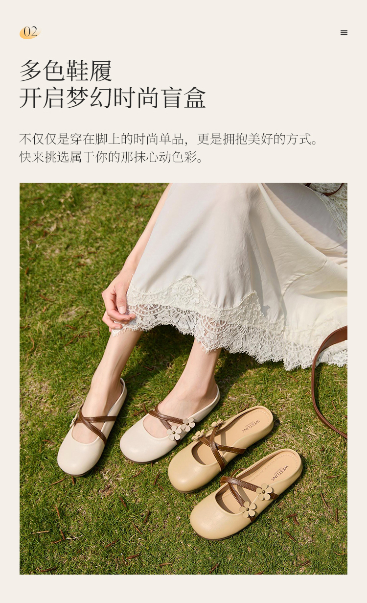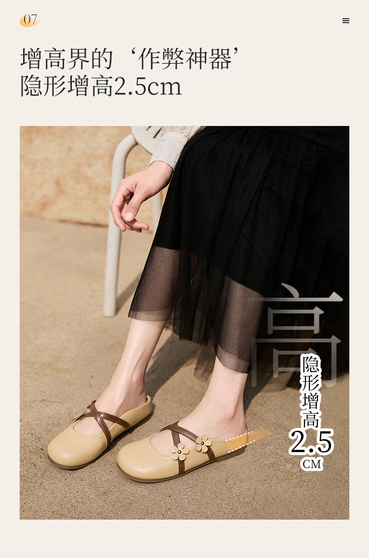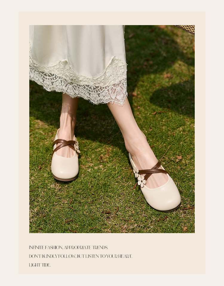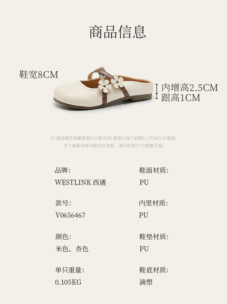 【限时秒杀】西遇包头半拖鞋女新款春夏花朵法式圆头平底外穿玛丽珍穆勒鞋V0656467