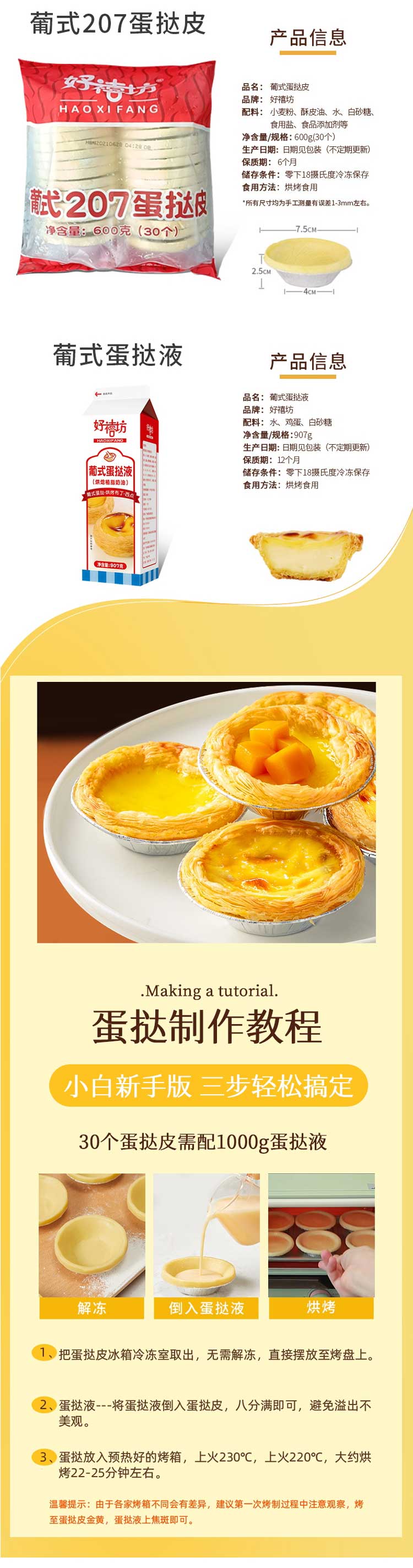 26C【会员专享】好禧坊葡式207蛋挞皮 600g/袋 (30个)10袋/件