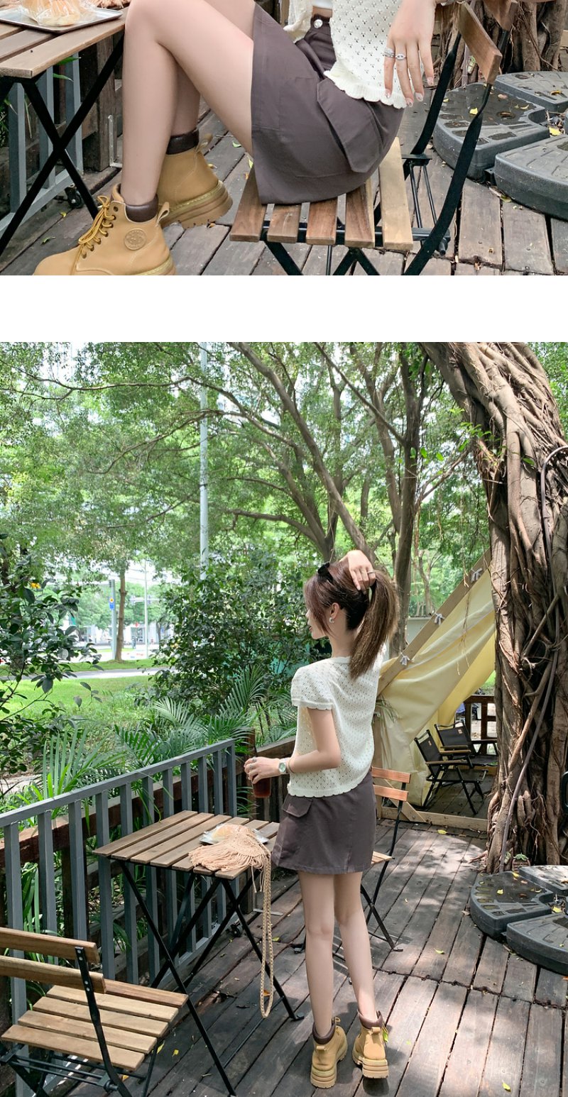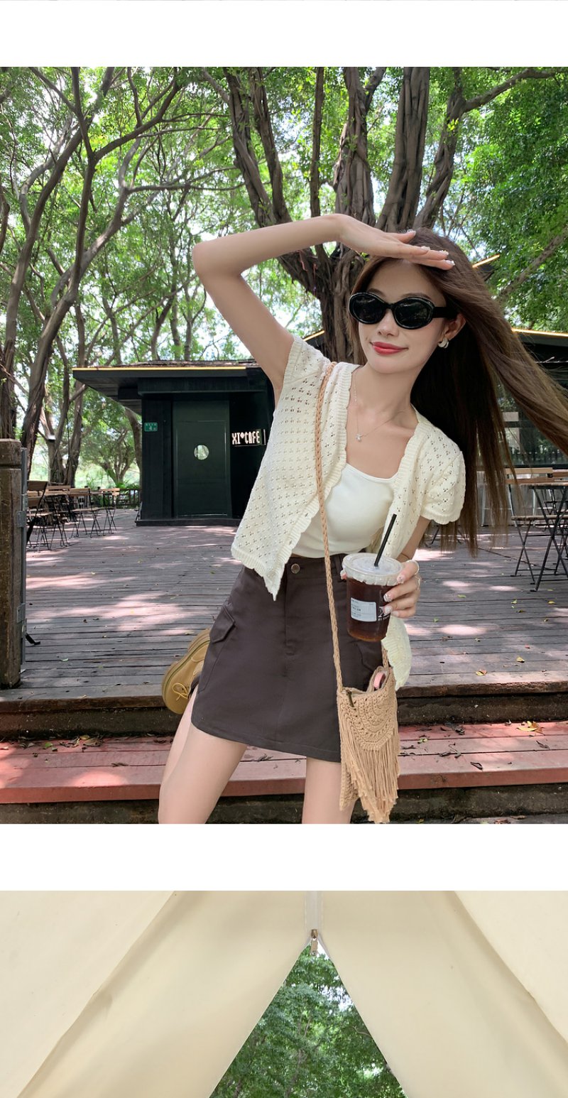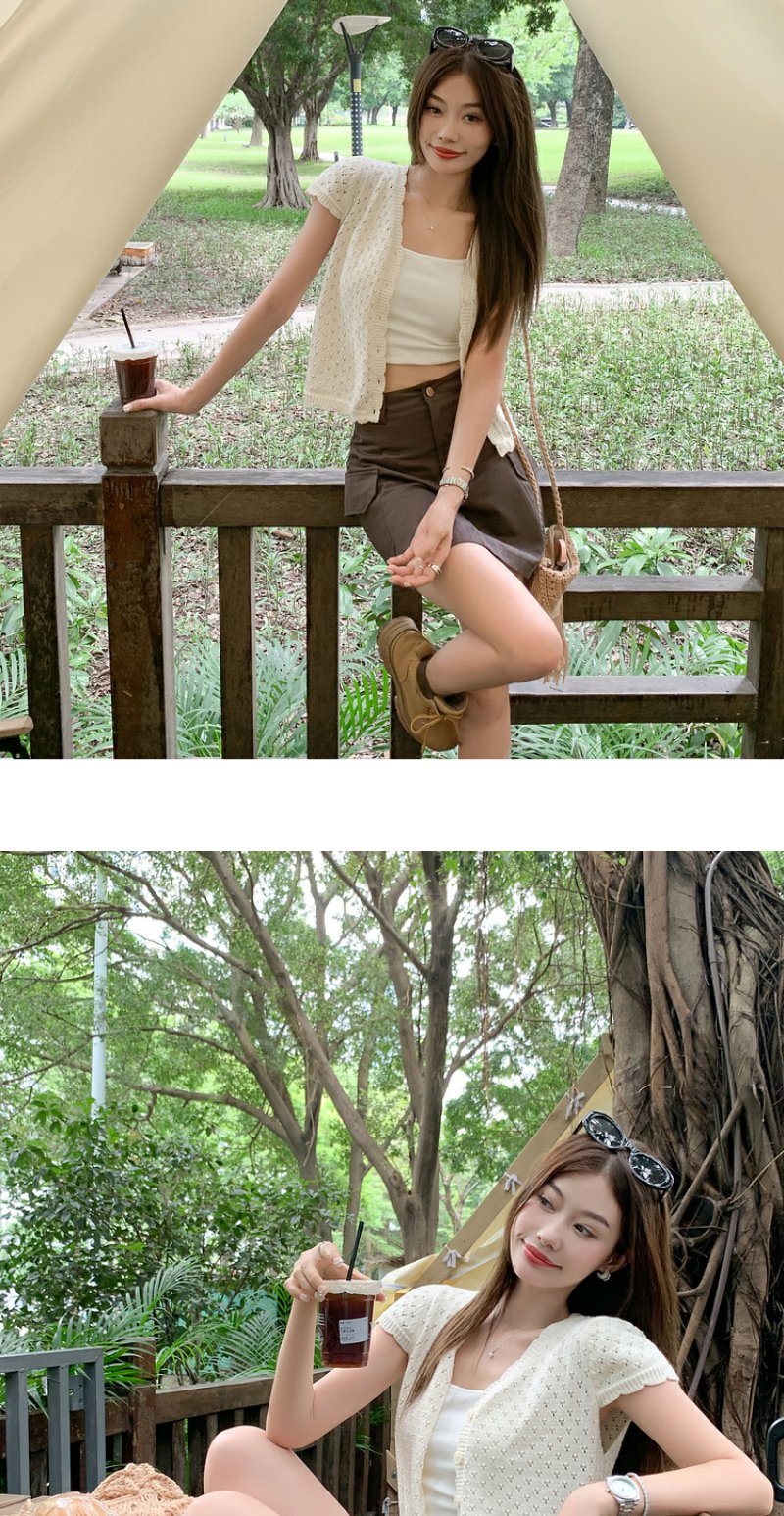 <曾小咸推荐>微信粉丝秒杀专场 仅此今天 活动结束下架【简约欧尼】杏色针织系扣短袖上衣 日常129.99 立减80 秒杀49.99!!
