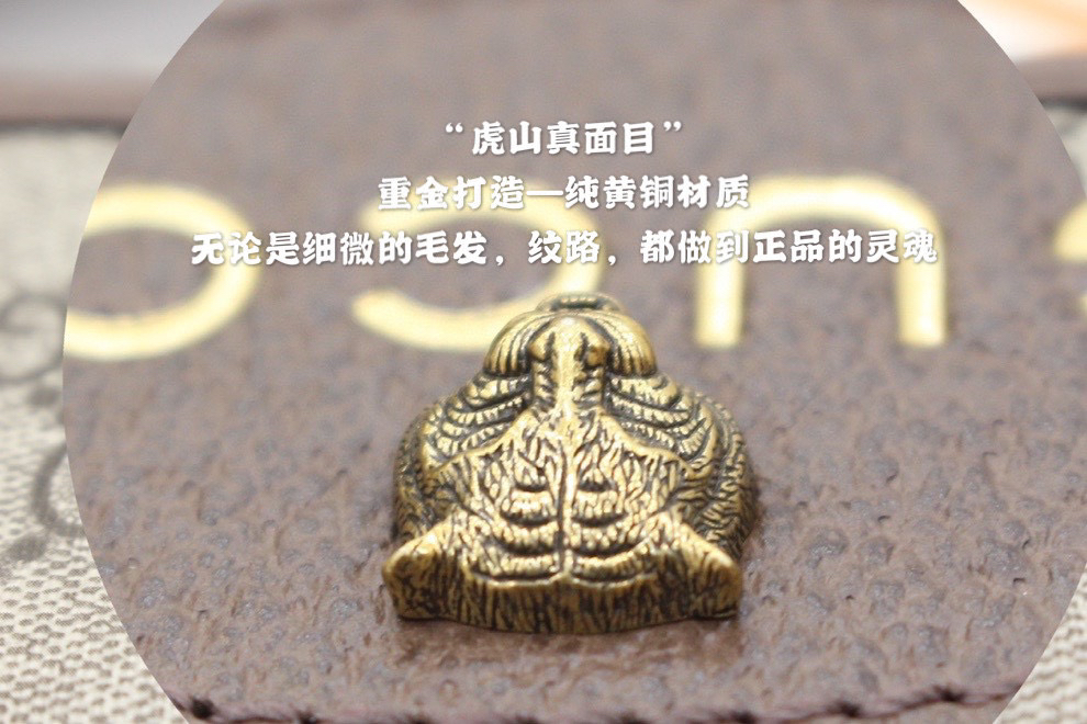 别小看一个小小的虎头—小东西大学问在这“虎山真面目”的攻破上,我们耗费了一年的时间与精力,无论市场多少五花八门的虎头版本,我们半年前的初版已经秒杀市面上所有的版本,但;我们坚持不使用,要么不做;要么做到真正的精雕正品出品—【正品小虎头(栩栩如生)神态更是体现了百兽之王该有的容貌,惟妙惟肖,这是正品神态的特征,市面上是根本复刻不到一模一样,而;我们终于攻破了,不惜重金打造正品同材质—黄铜,真金镀虎,颜色是用“厚金”材质,含金量真正达到真金的代表,无论是神态,大小,颜色,我们与正品无差异】