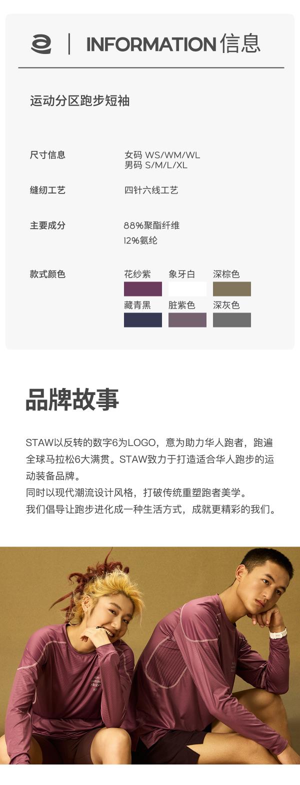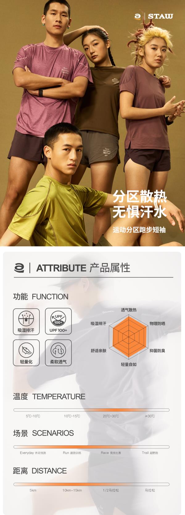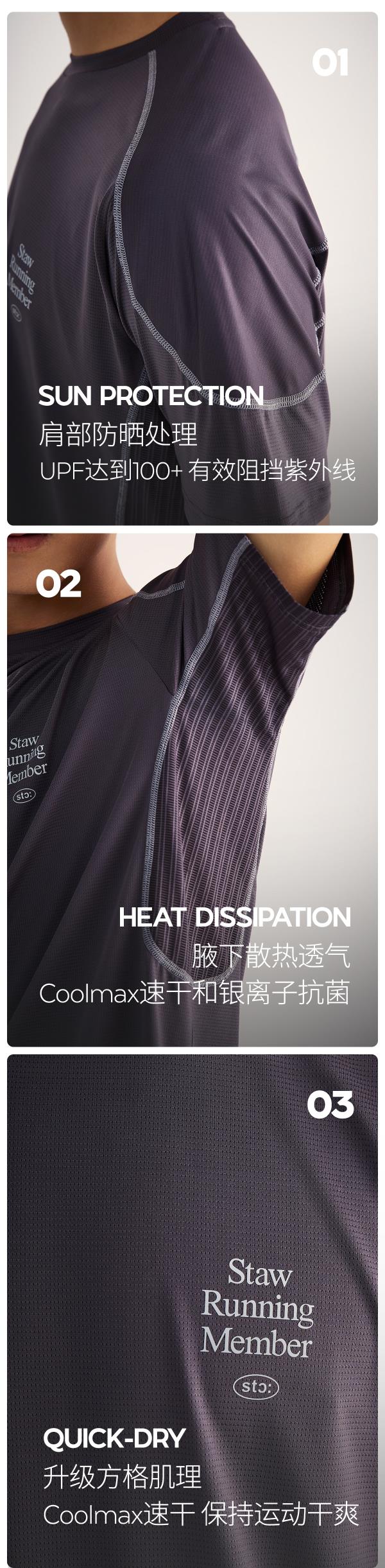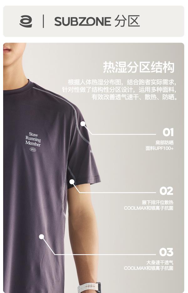 STAW世拓运动分区散热跑步短袖COOLMAX抗菌户外训练T恤男速干衣
