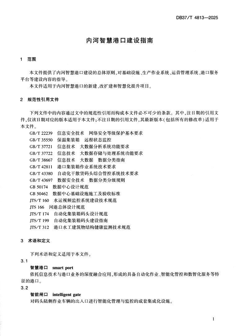 书名:内河智慧港口建设指南(DB37/T 4813—2025)