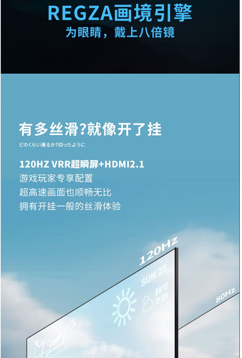 东芝(TOSHIBA)65Z570KF 65英寸游戏电视 火箭炮音响 120Hz全面屏HDMI2.1超高清智能远场语音平板电视机