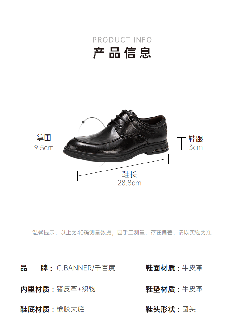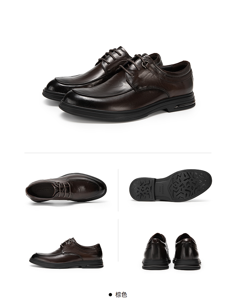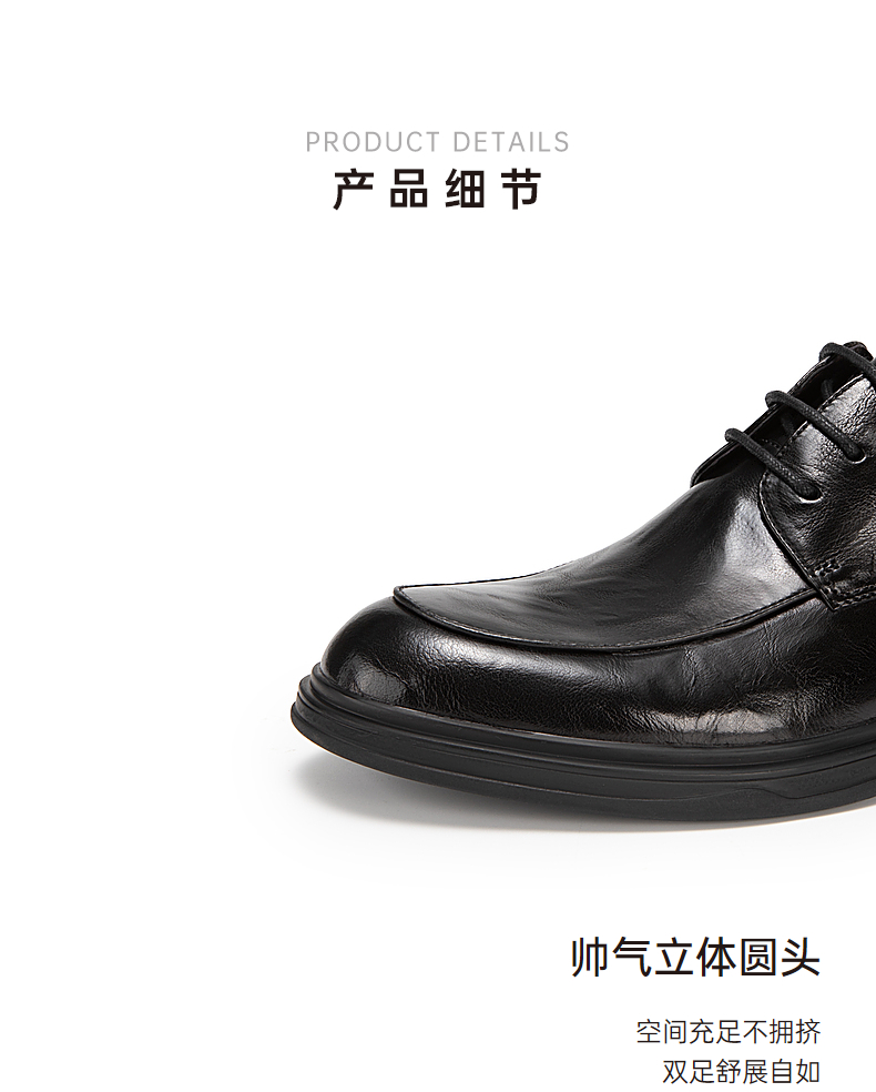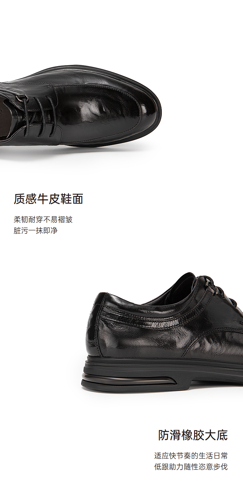 千百度商务休闲皮鞋春季英伦风系带正装皮鞋男A24101266