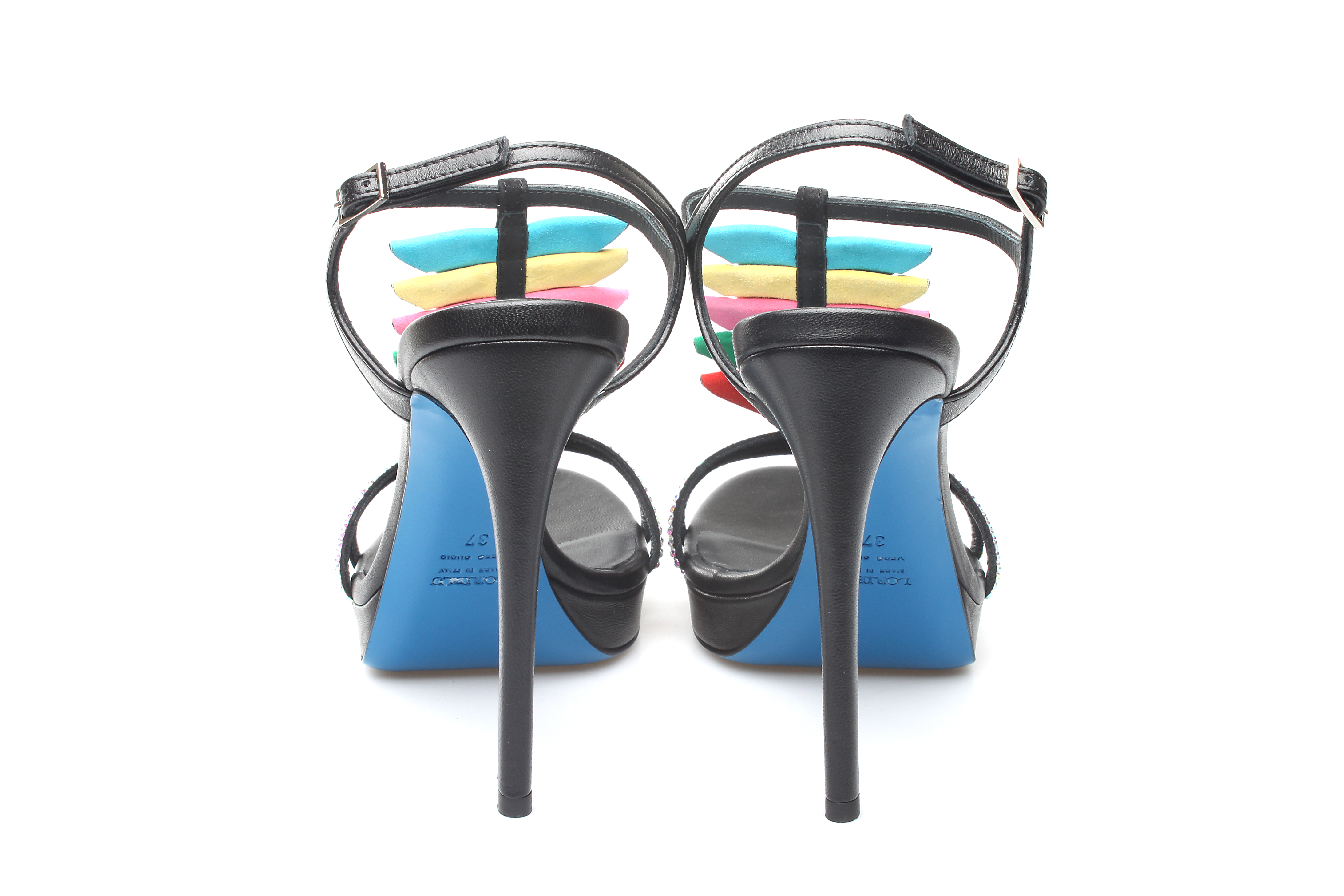 豪麟名鞋奥莱LORIBLU女鞋凉鞋羊皮革+施华洛世奇LR05512L黑色 原价6600元