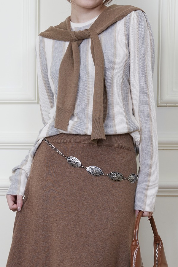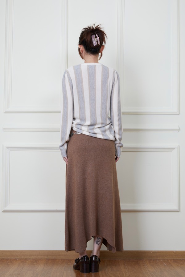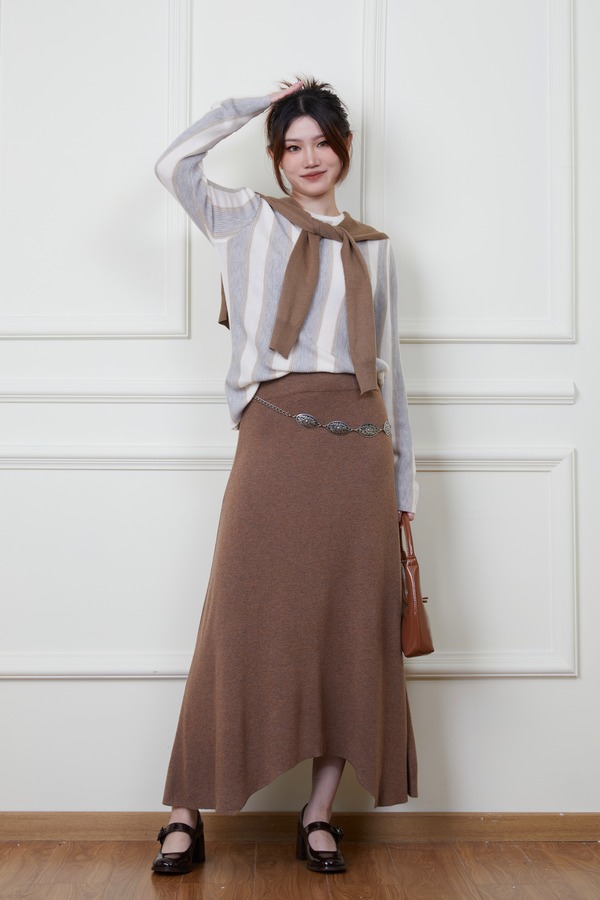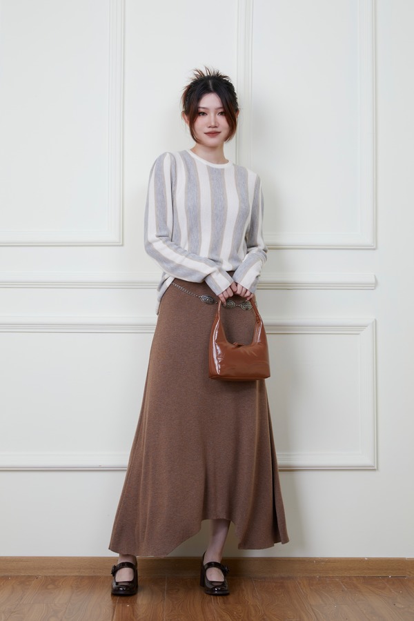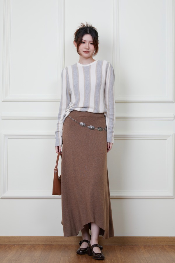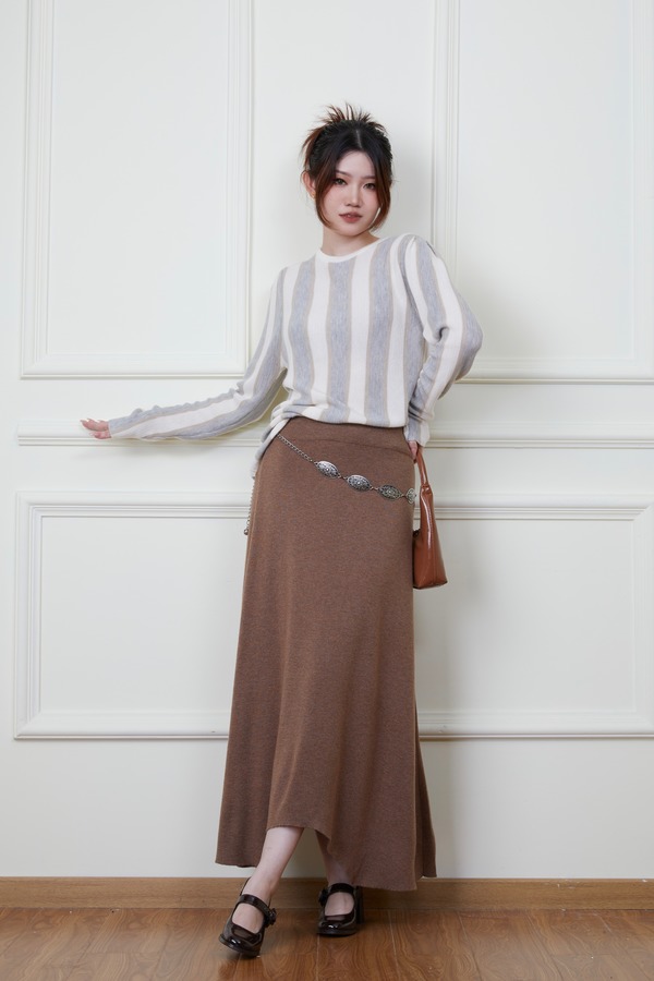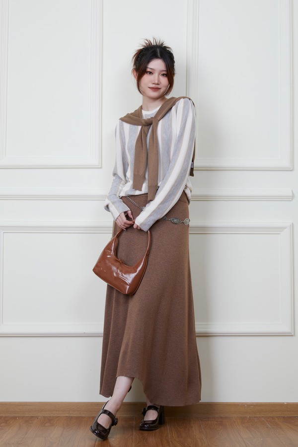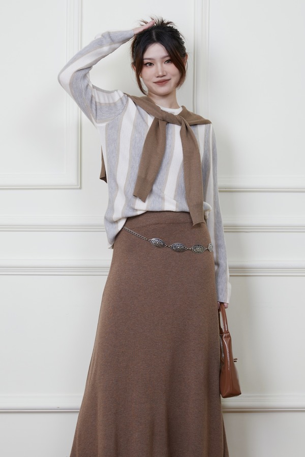 ANSUABEL 舒适条纹针织上衣半裙套装 18876