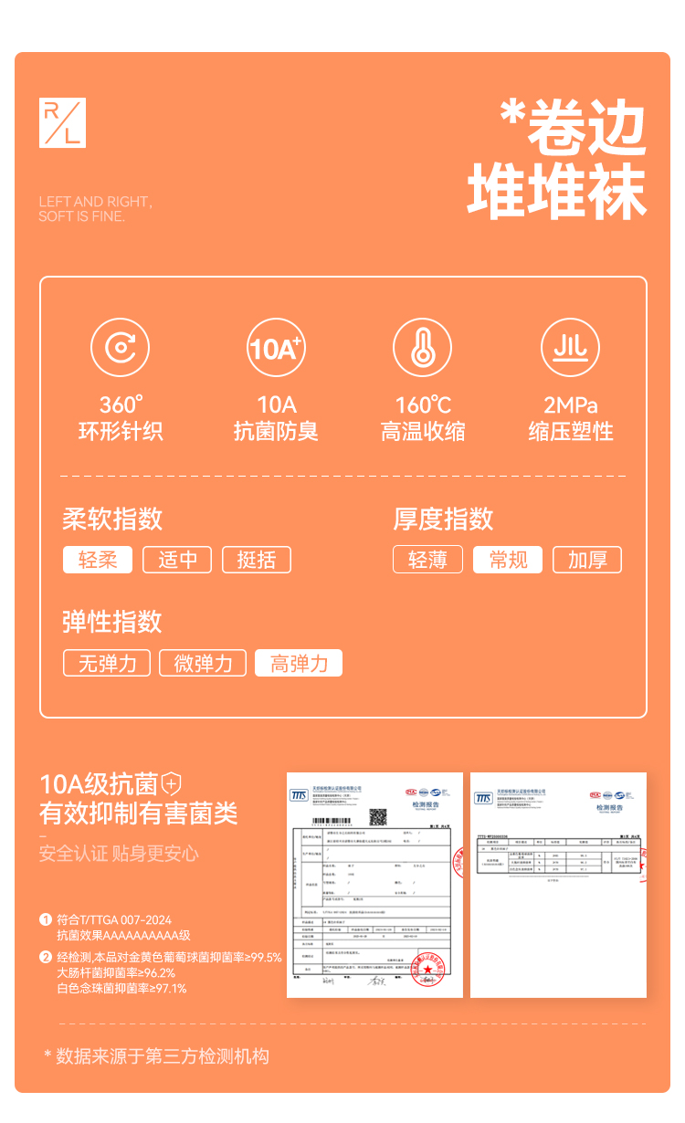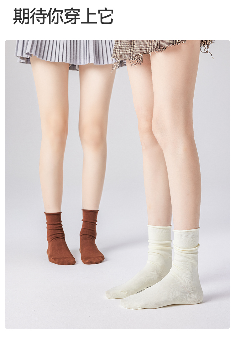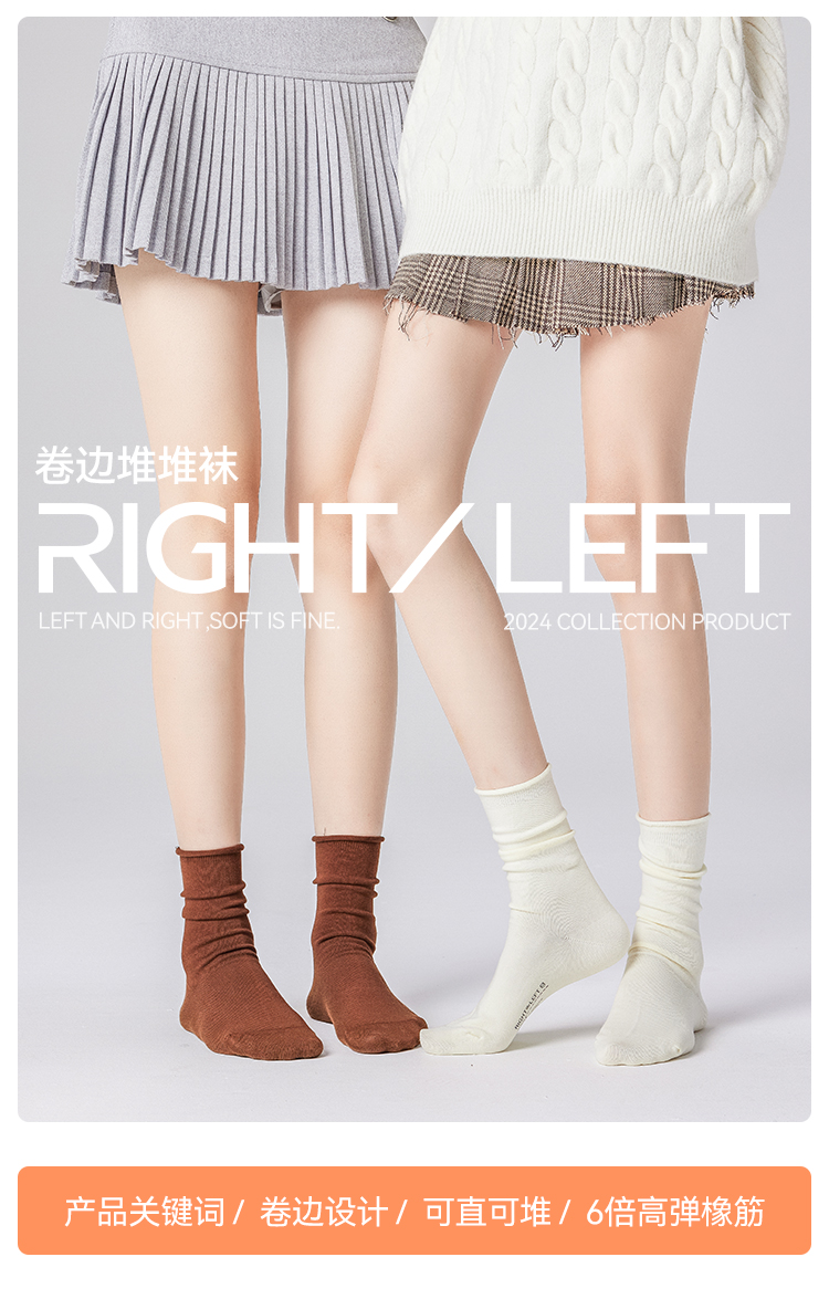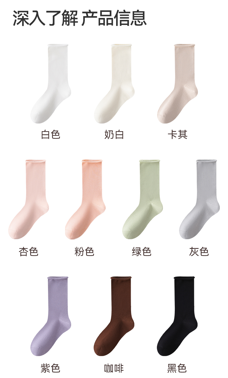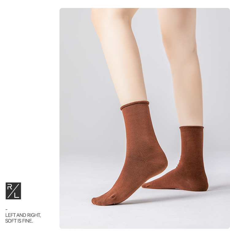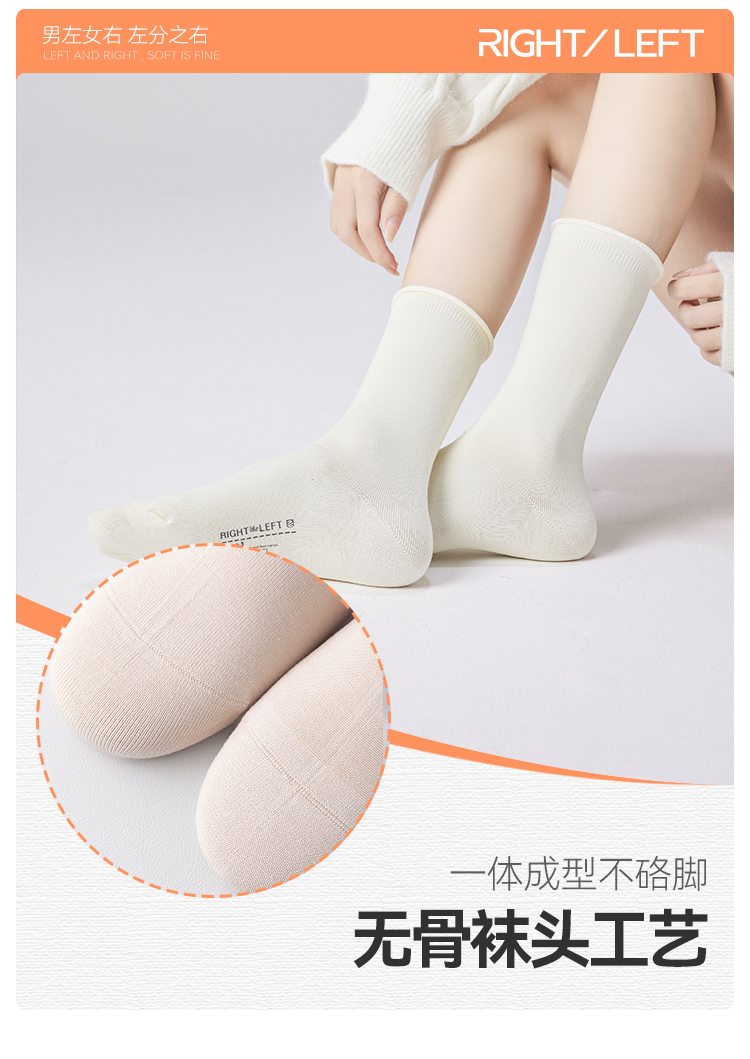 左分之右袜子女春夏款纯棉10A抗菌中筒袜糖果成人无骨卷边堆堆袜