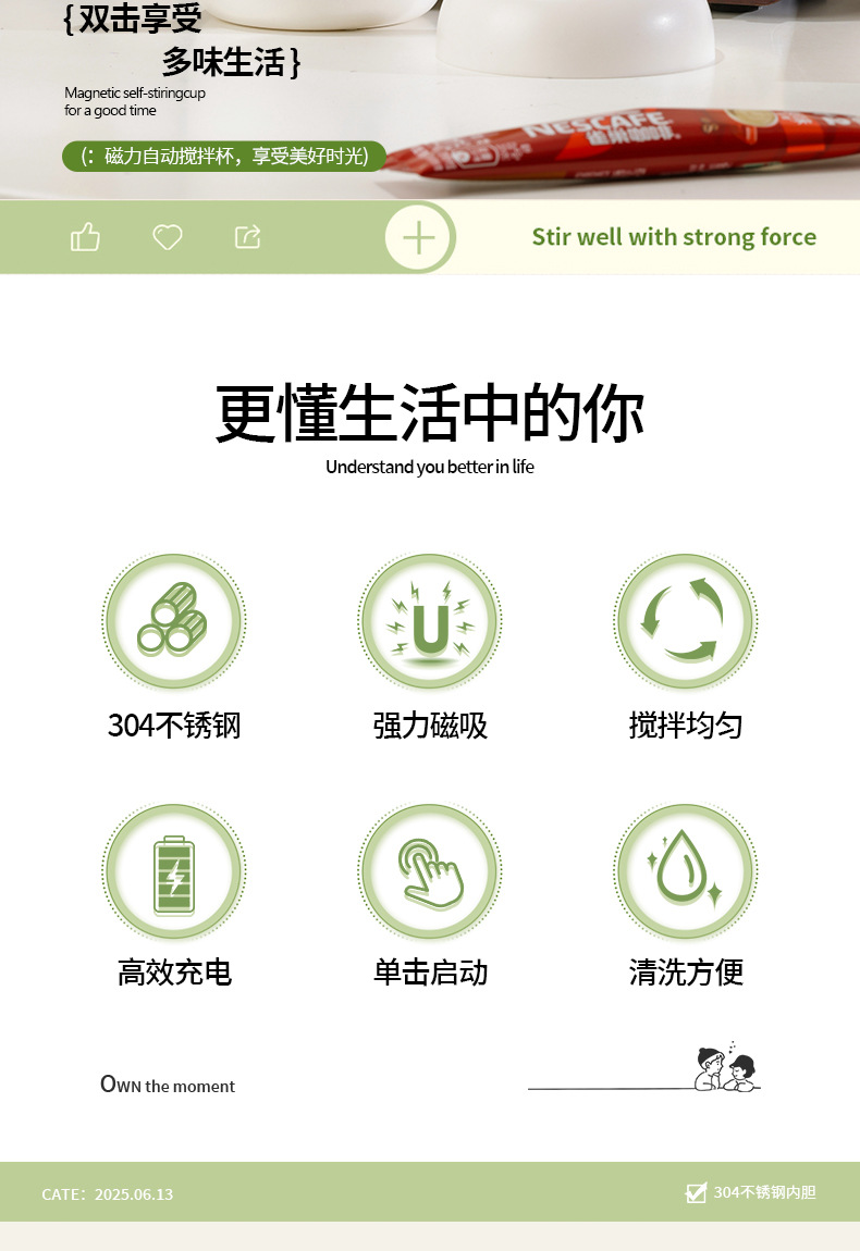 【享甜蜜食光❗️自动搅拌杯】食品级材质懒人必备神器 创意简约自动搅拌杯 充电无线懒人水杯 便携电动磁力旋转摇摇咖啡杯 磁力旋转摇摇咖啡杯