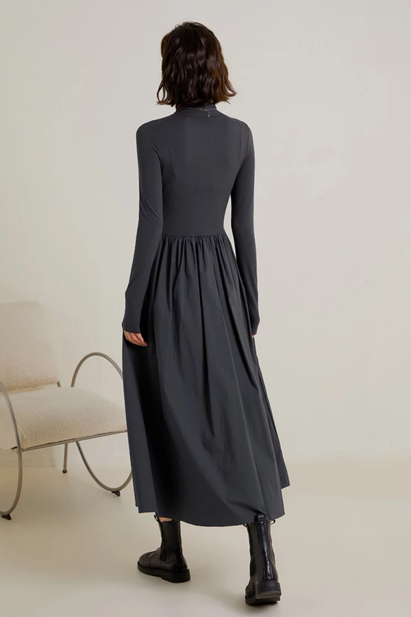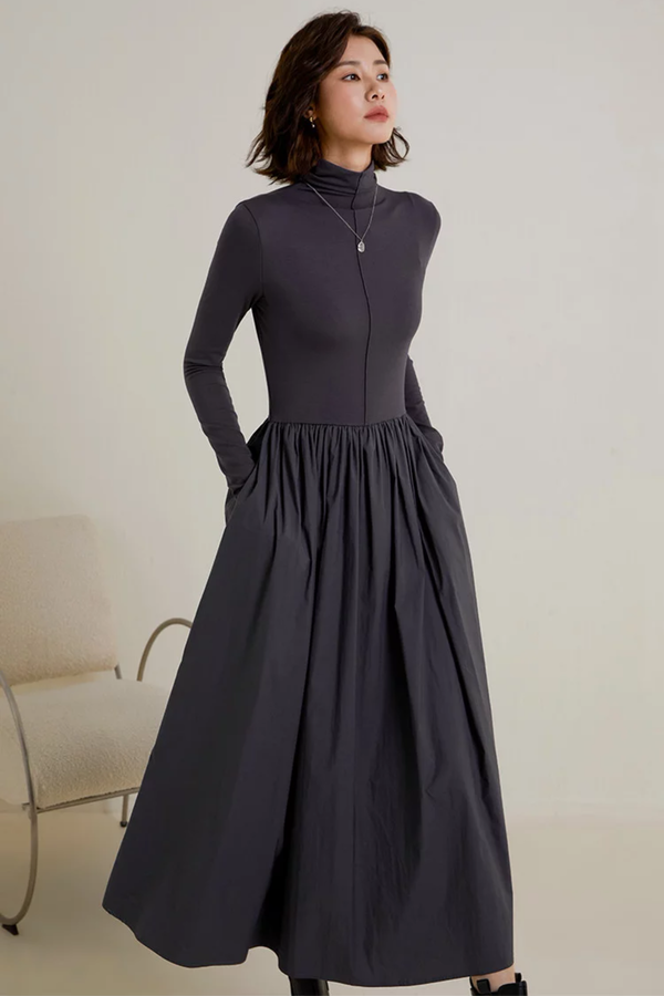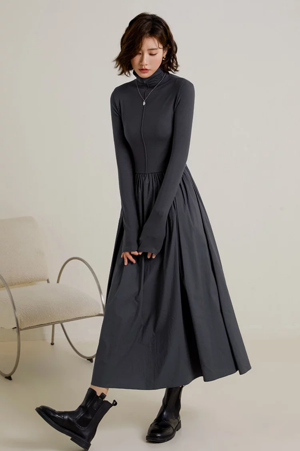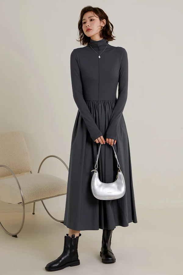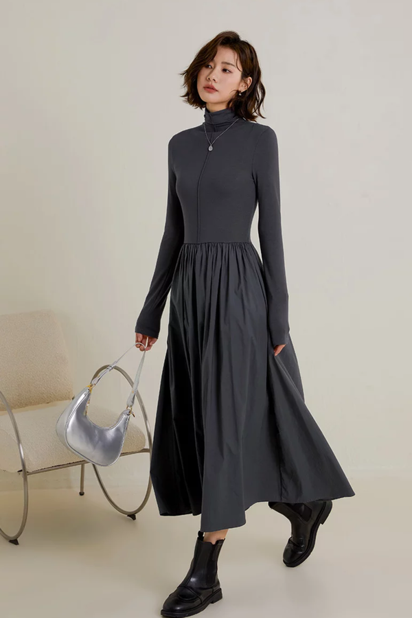 MIGU/弥古 高领收腰拼接休闲针织连衣裙 21714