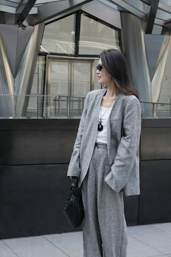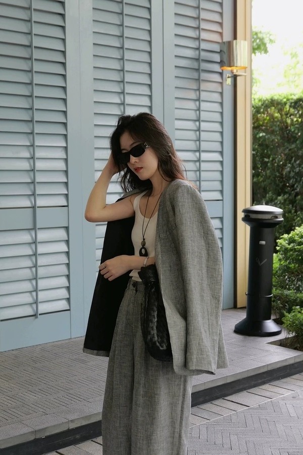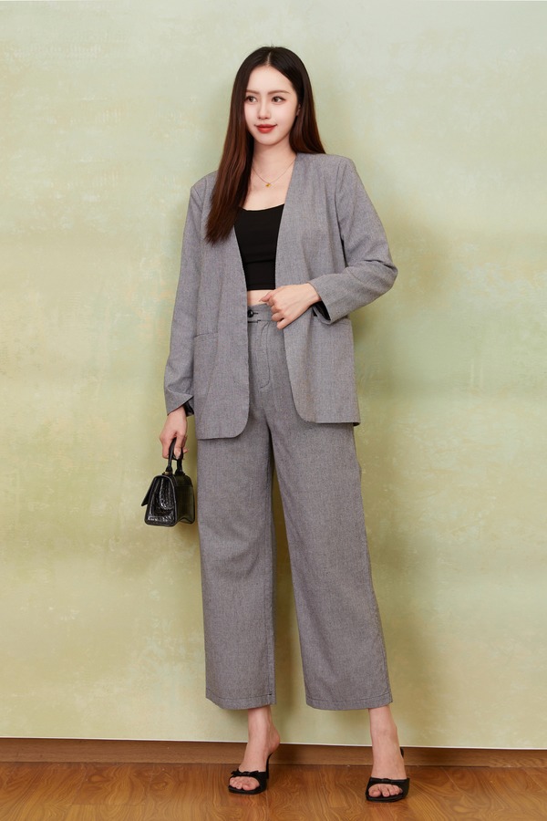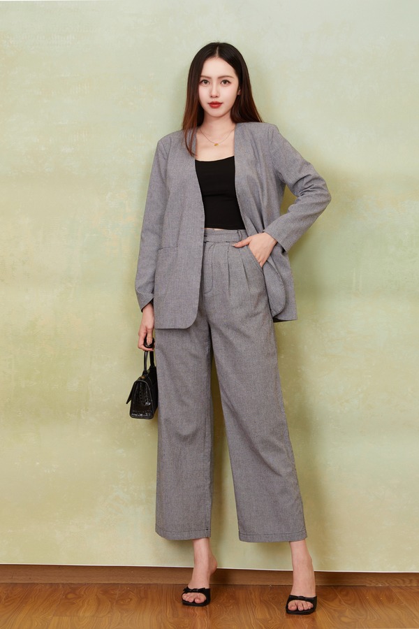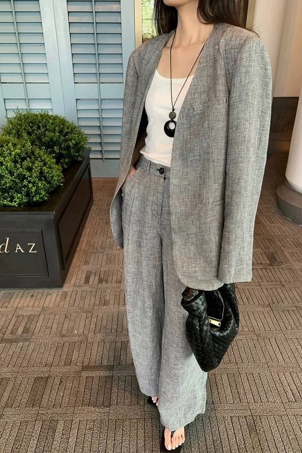 ESTELLICA 极简老钱风黑白细格西装长裤套装 21150