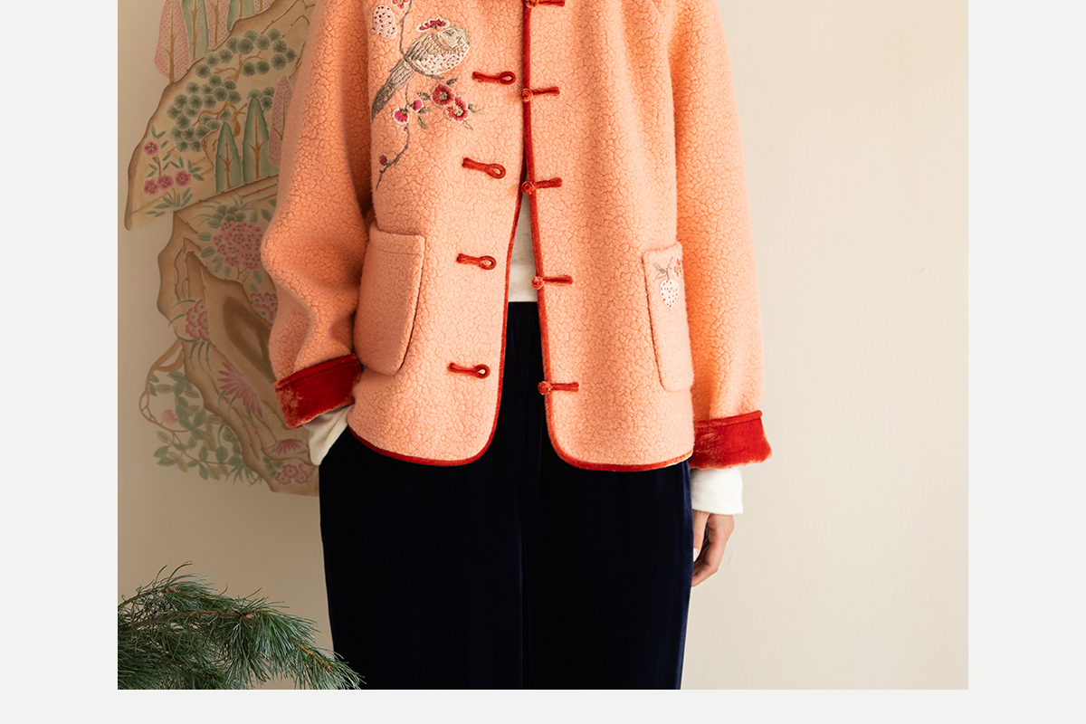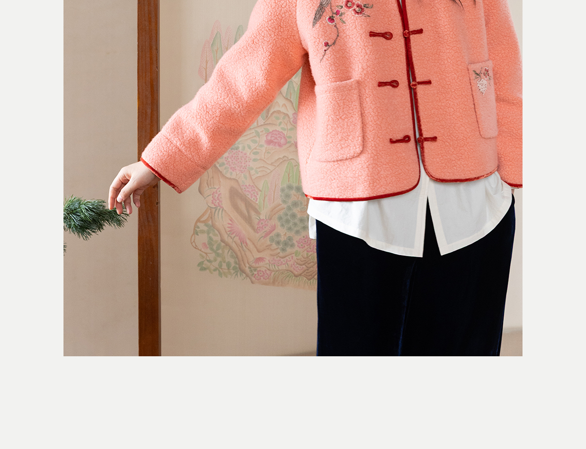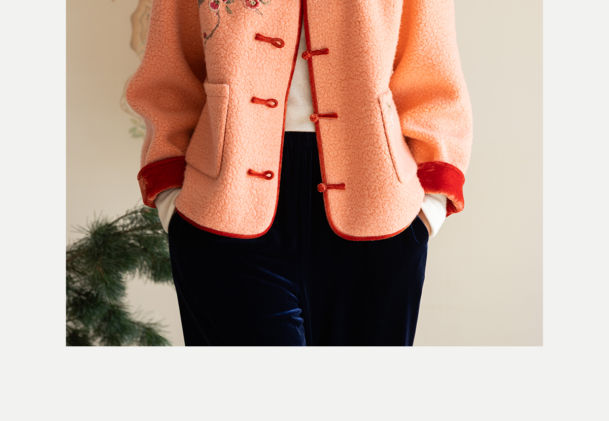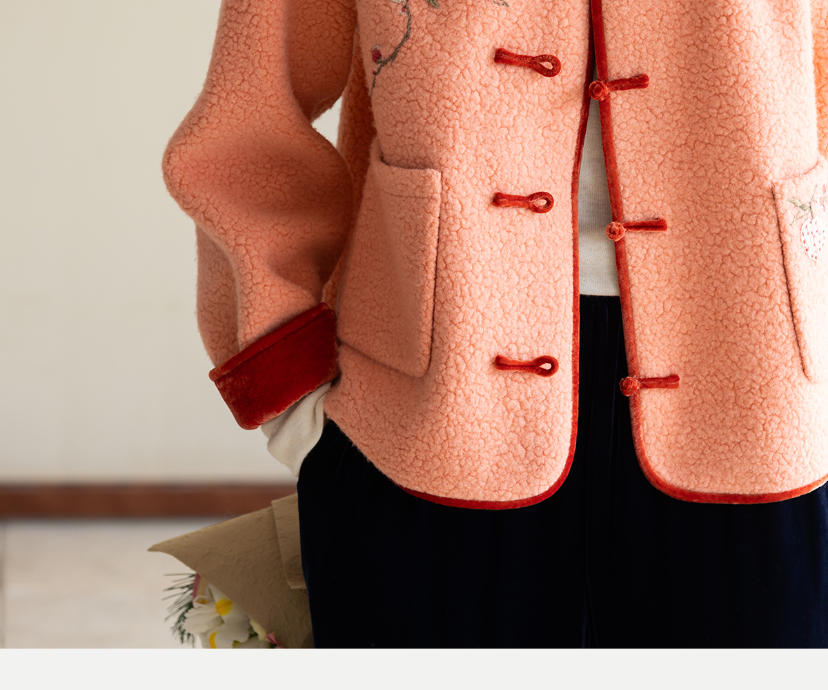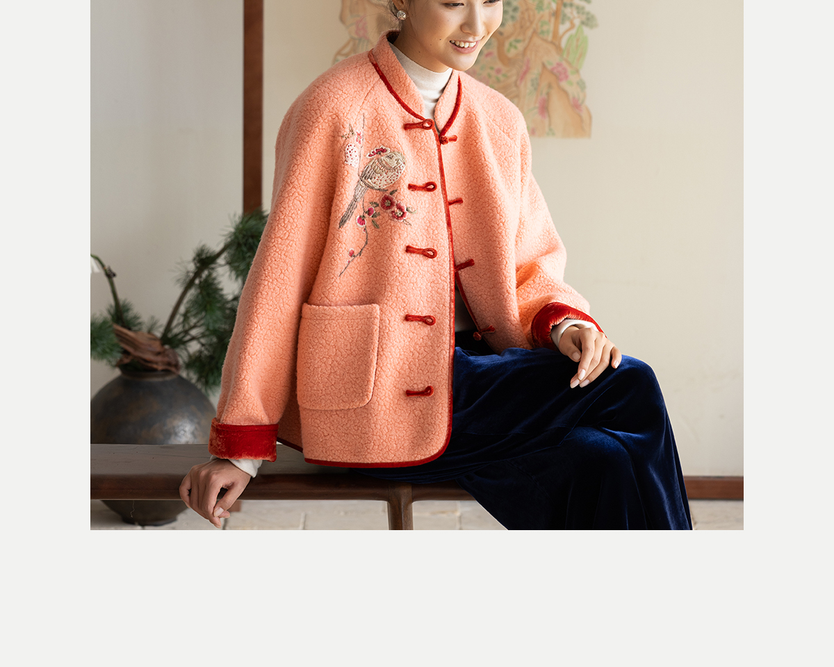 牧衣游原创 刺绣进口羊毛混纺羊羔毛毛呢外套新中式红色新年 风雲