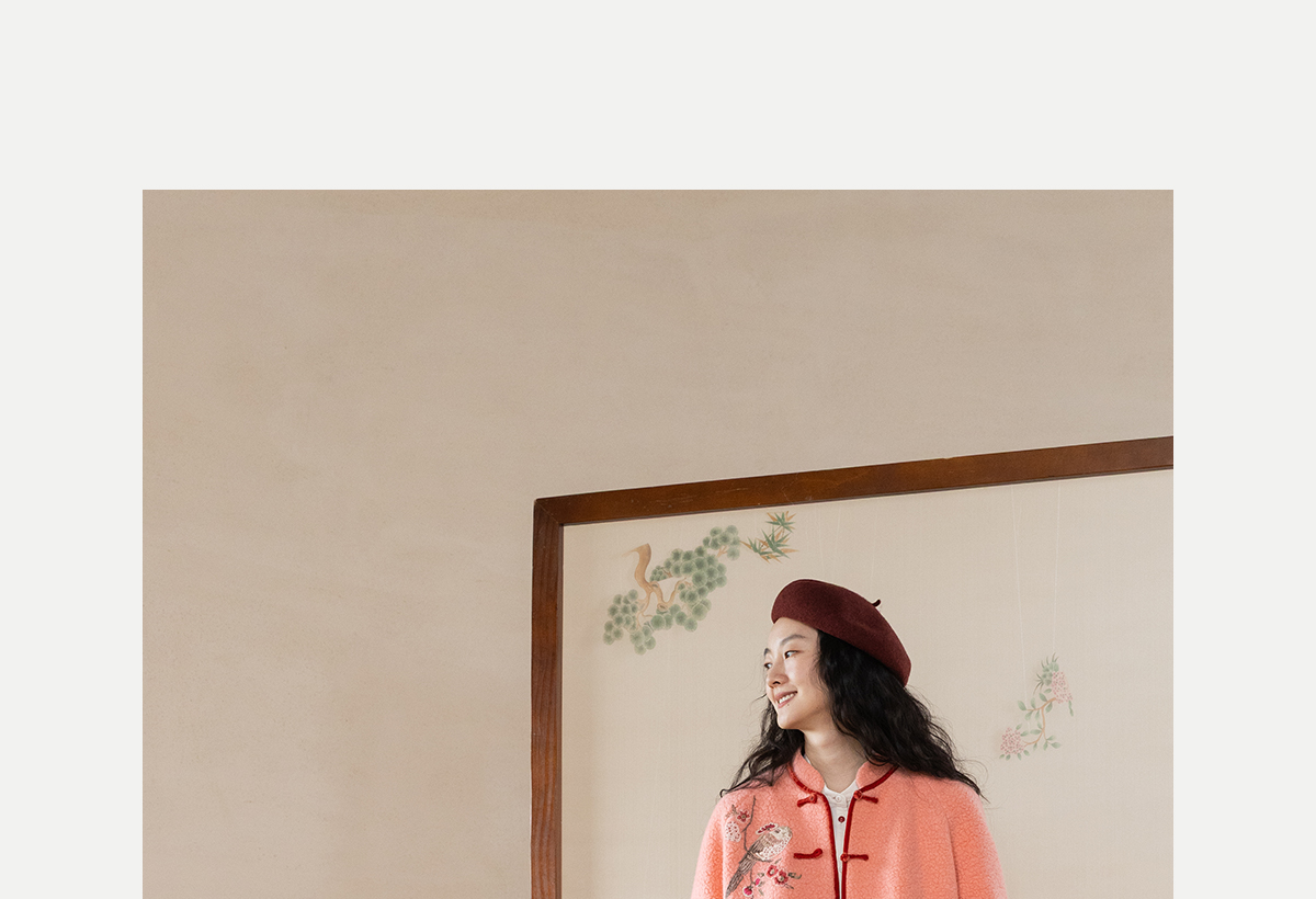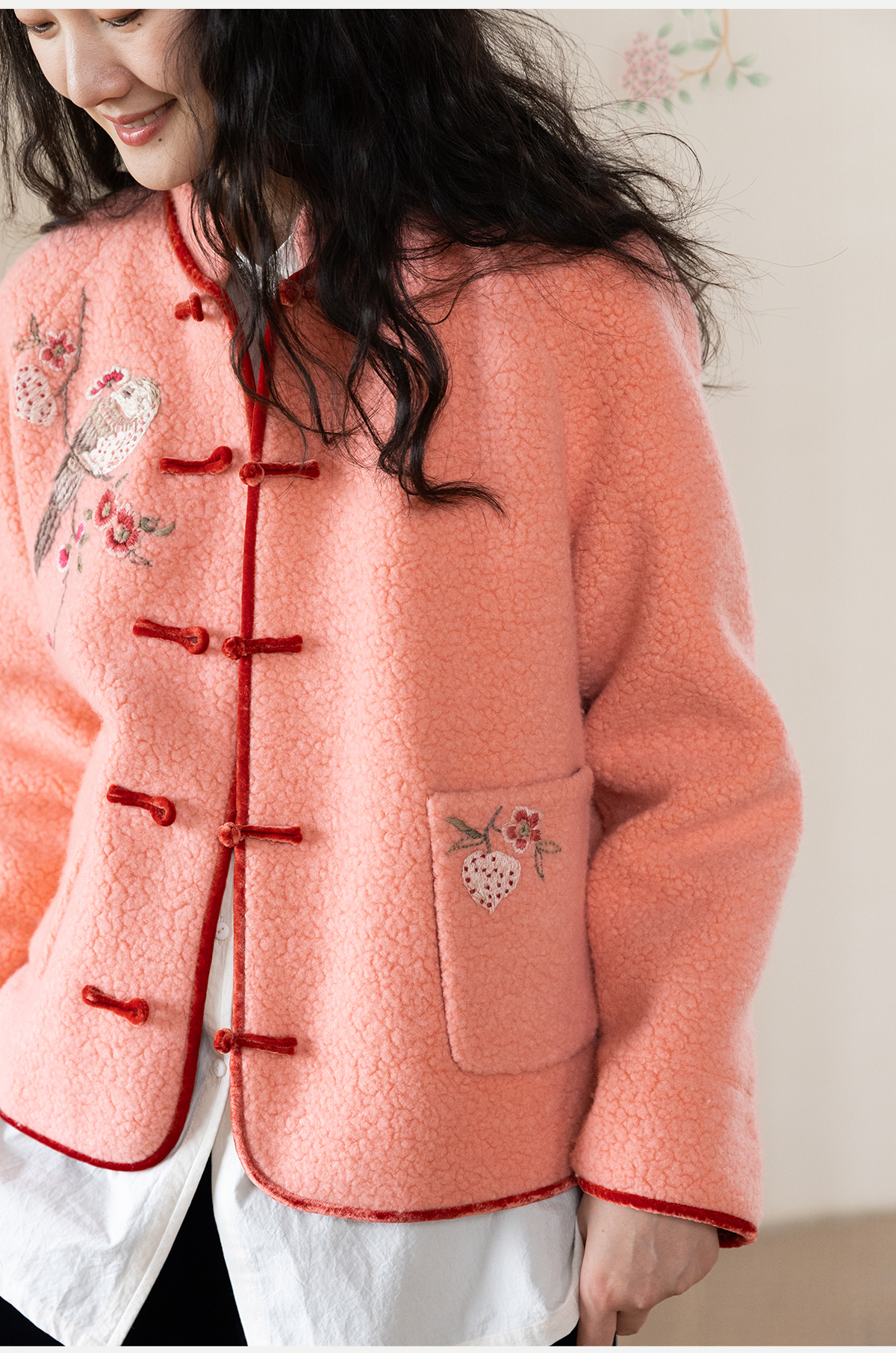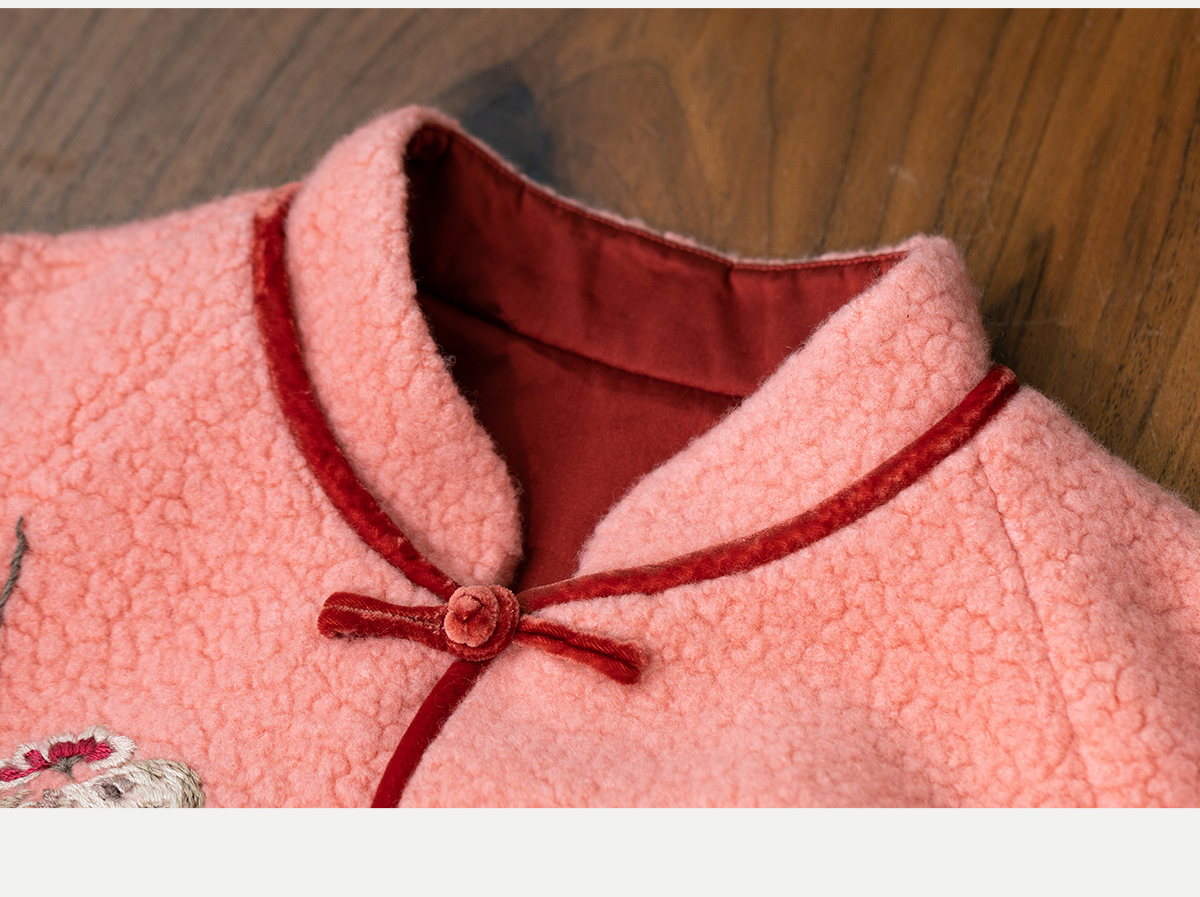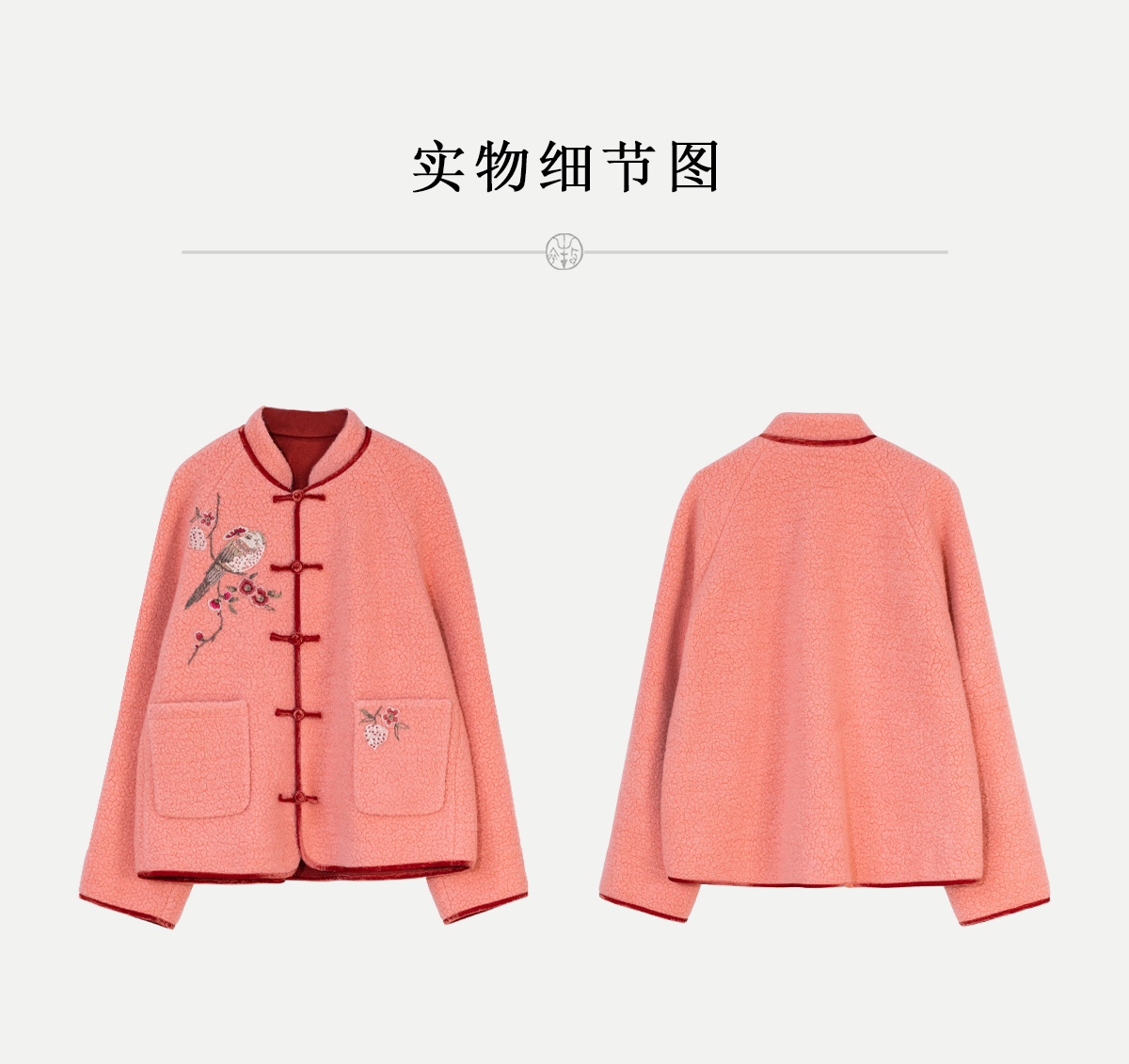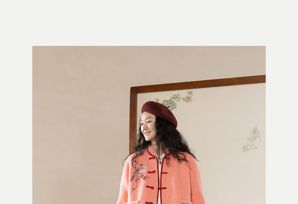 牧衣游原创 刺绣进口羊毛混纺羊羔毛毛呢外套新中式红色新年 风雲