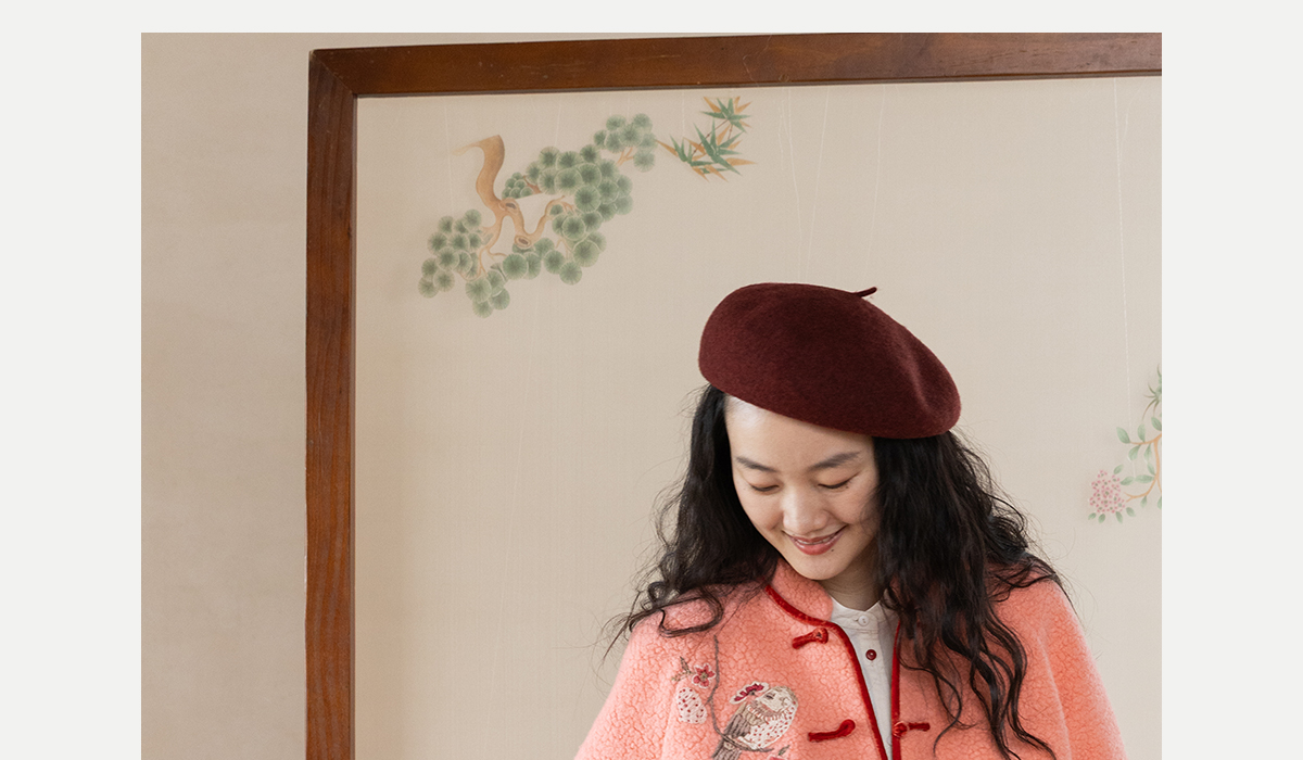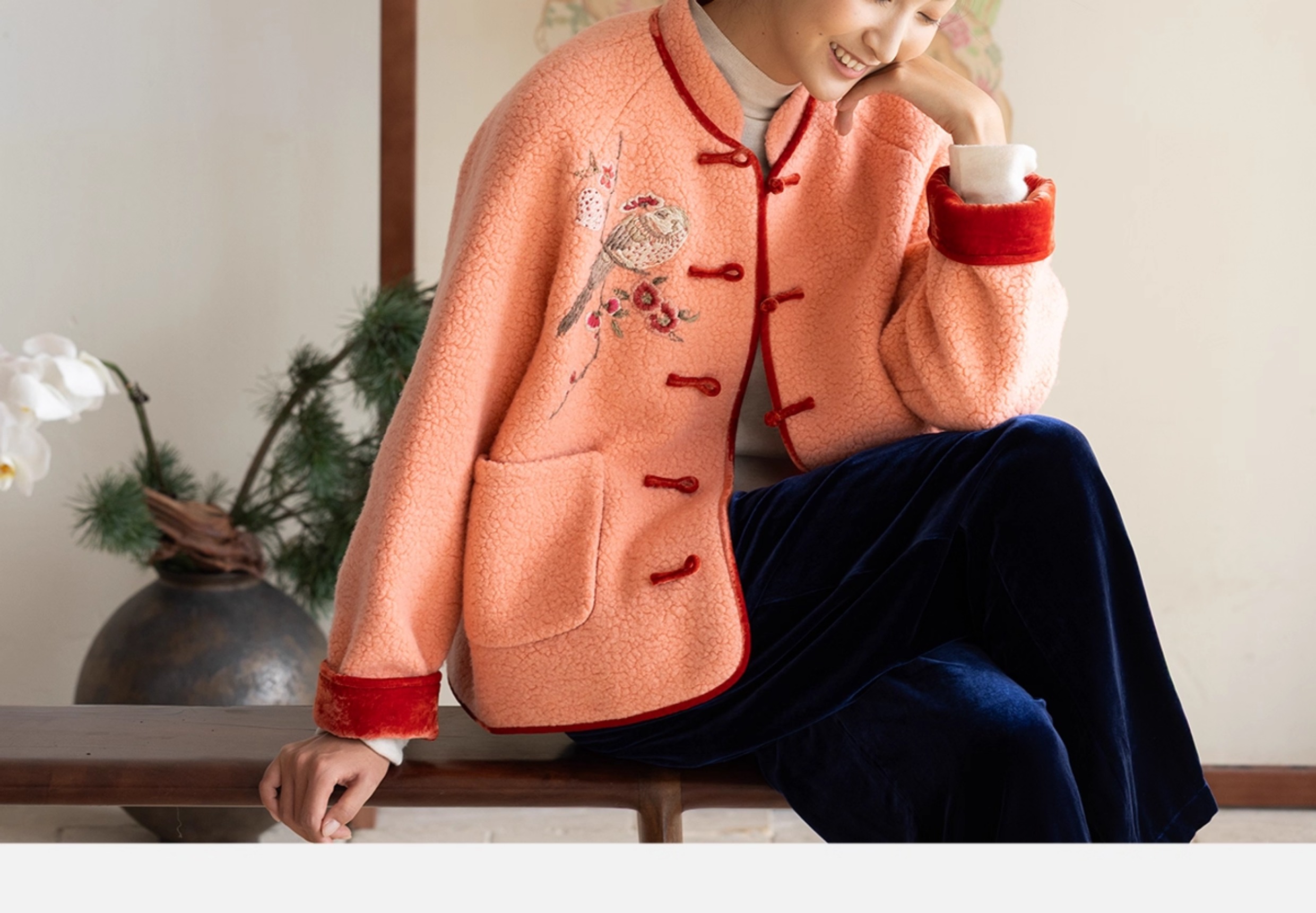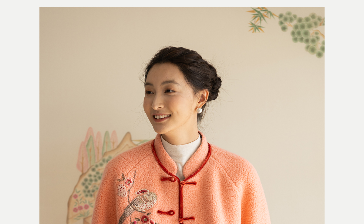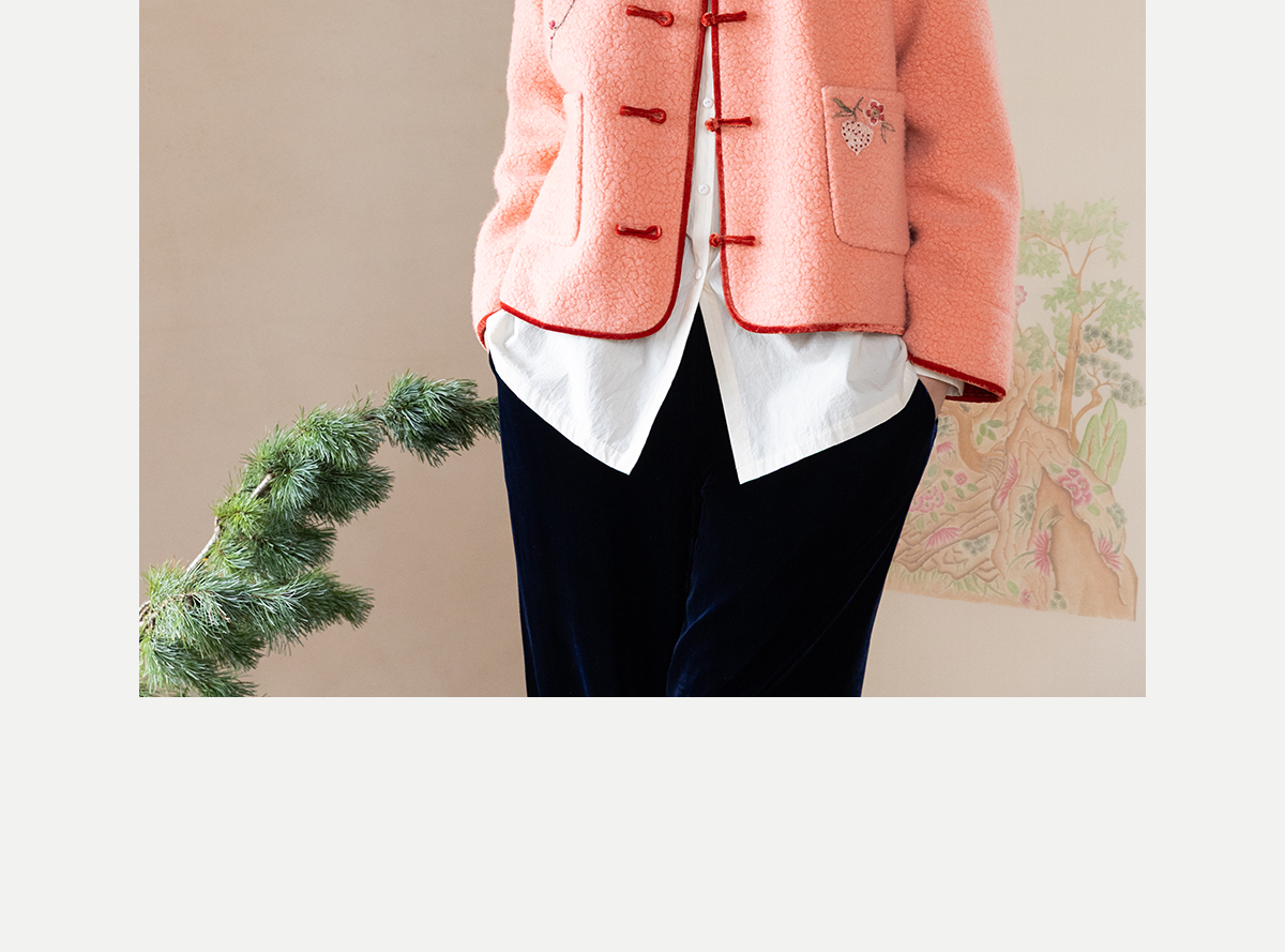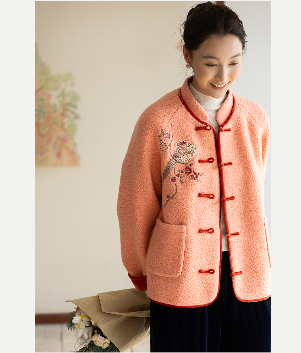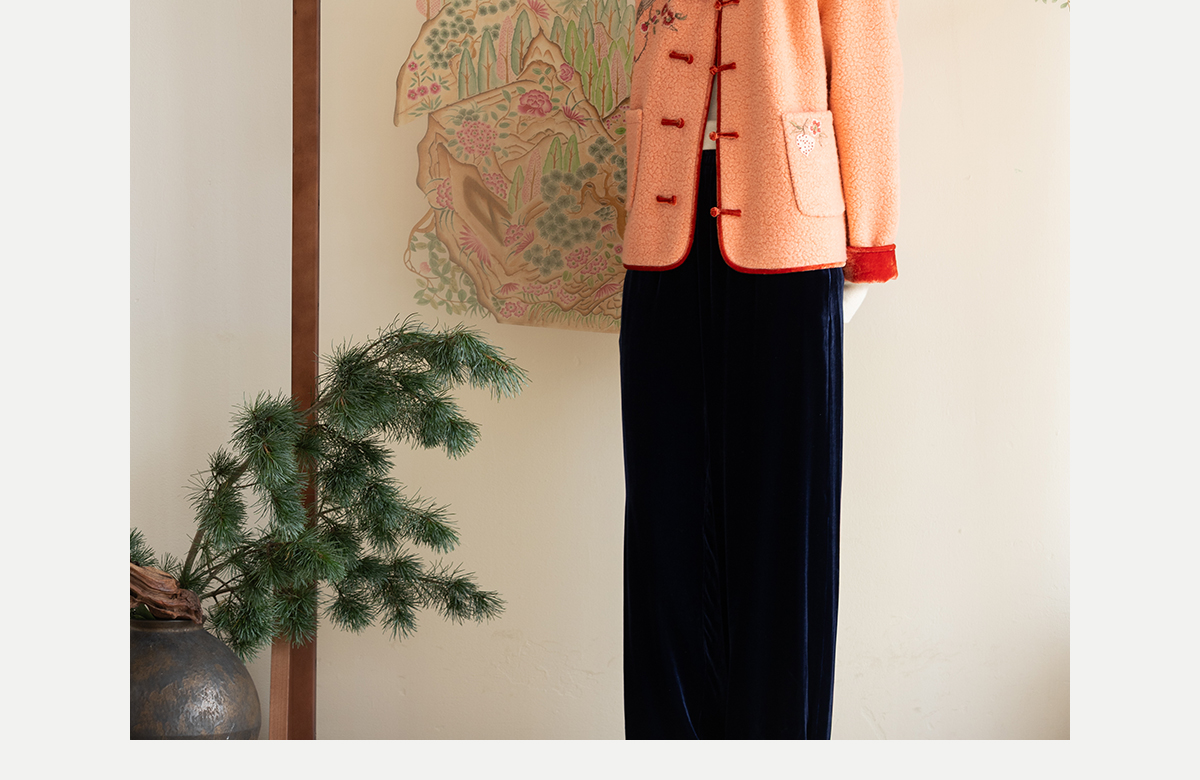 牧衣游原创 刺绣进口羊毛混纺羊羔毛毛呢外套新中式红色新年 风雲
