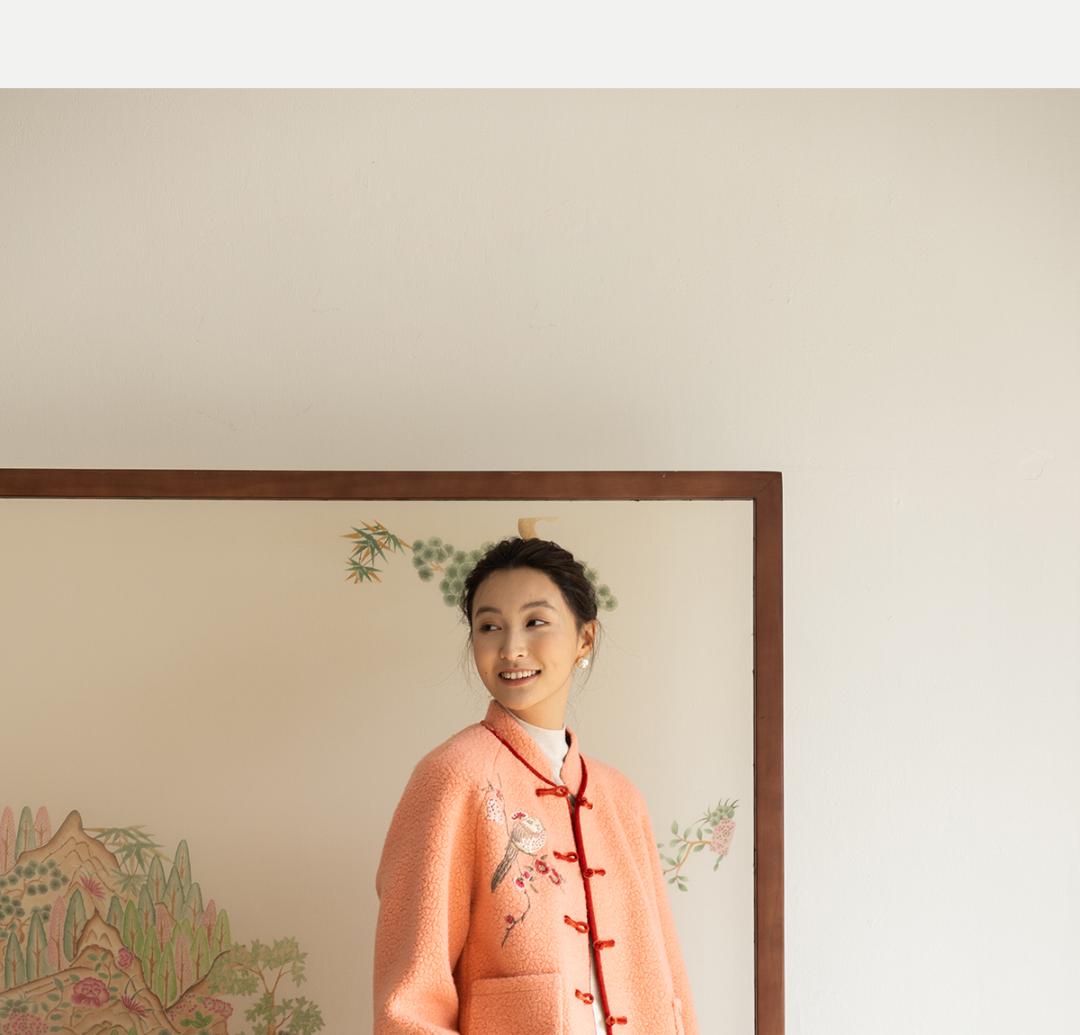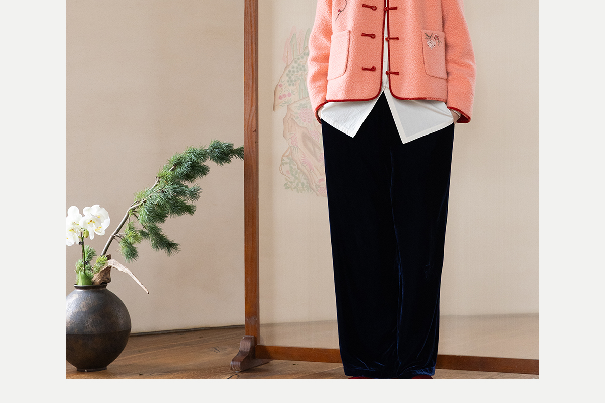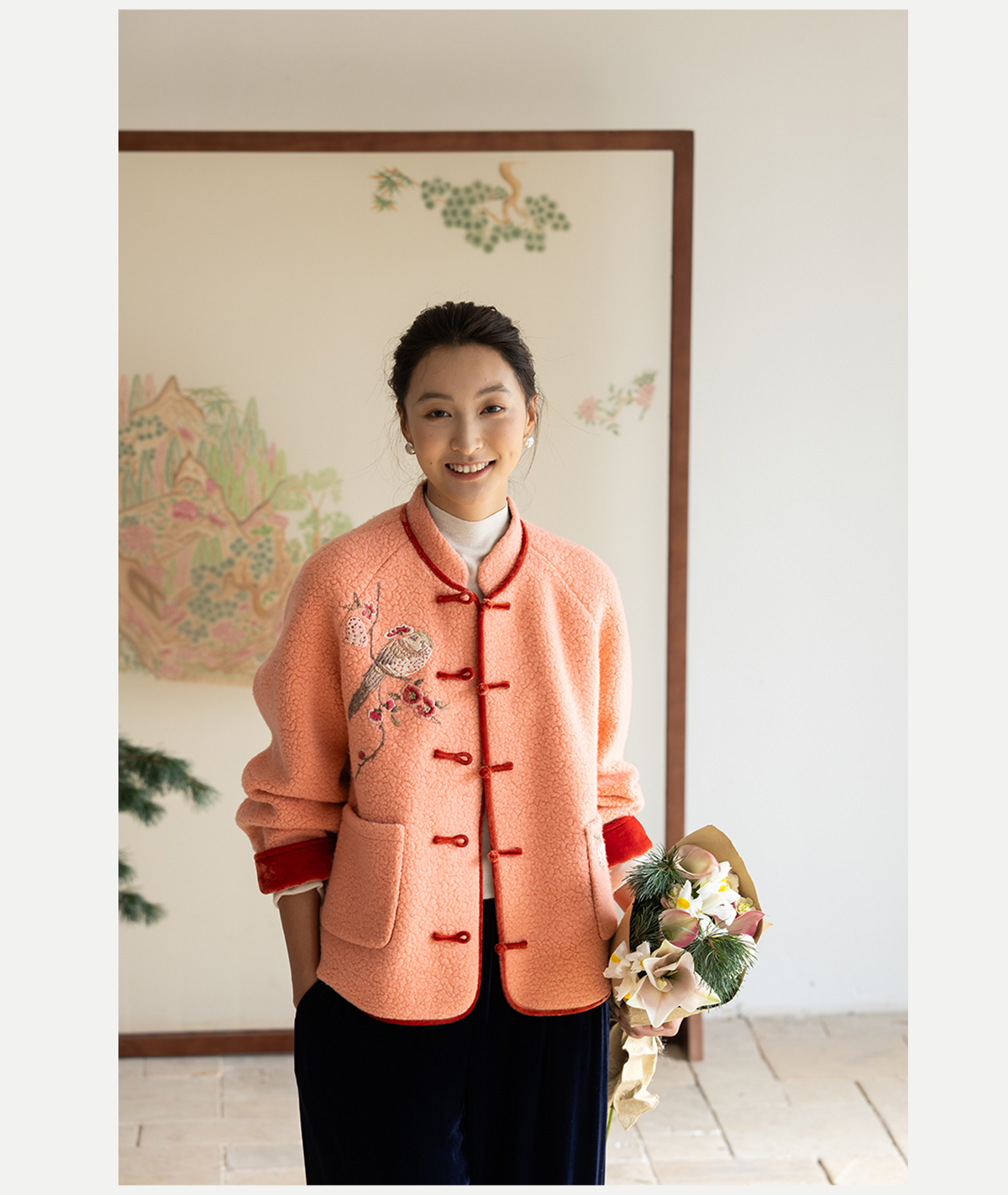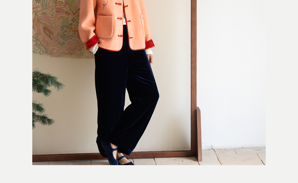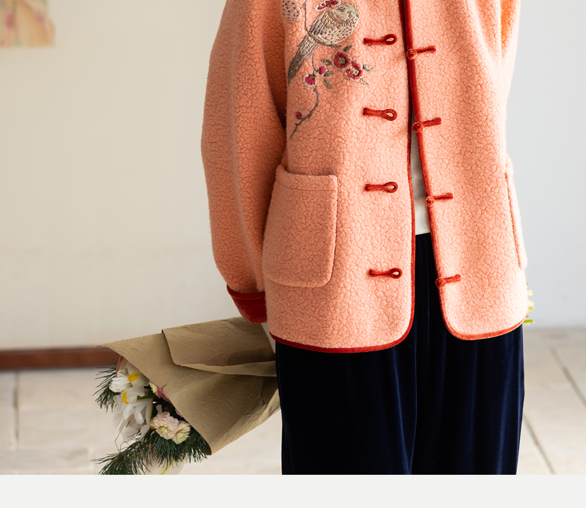 牧衣游原创 刺绣进口羊毛混纺羊羔毛毛呢外套新中式红色新年 风雲