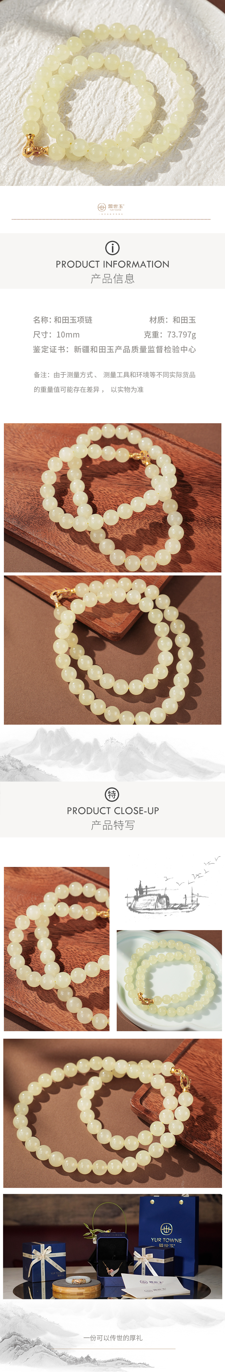 新疆国玉盟世玉和田玉项链【带证书·顺丰物流】