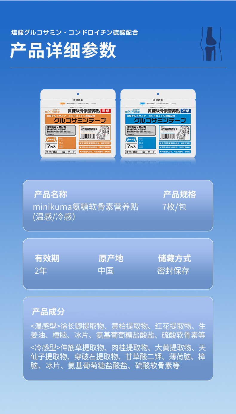 minikuma氨糖软骨素营养贴中老年颈肩腰腿半月板全身关节膝盖可贴
