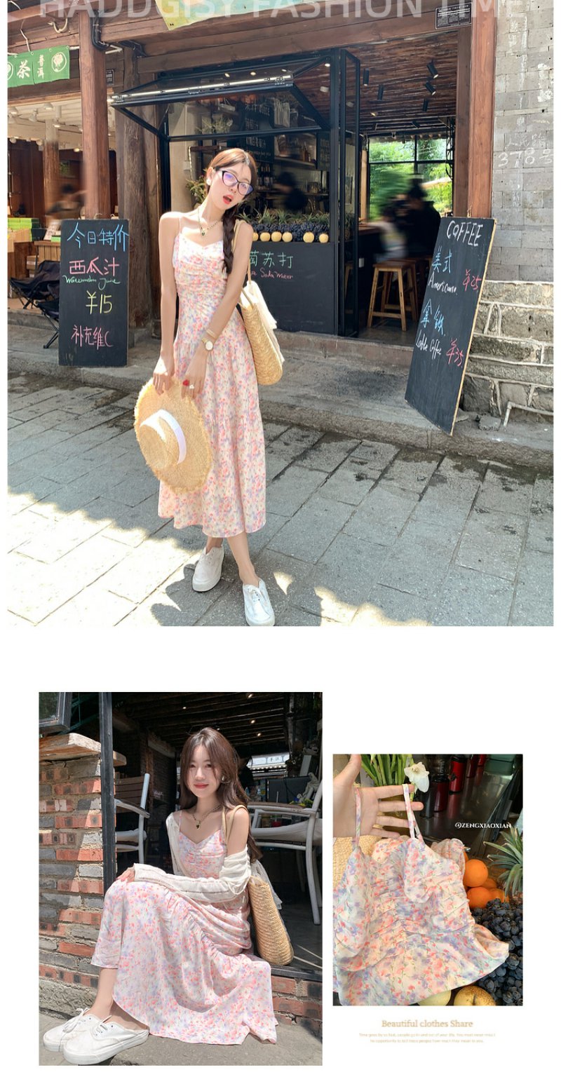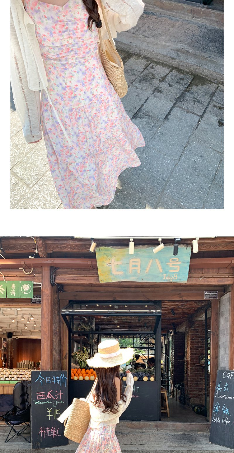 【189元任选2件】最后一波现货!紫粉色碎花吊带长裙