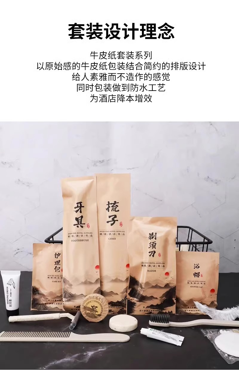 酒店高端一次性牙刷牙膏洗漱套装牛皮纸防水包装宾馆民宿现货批发