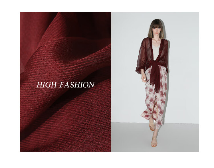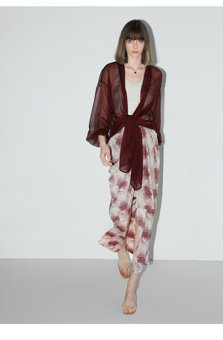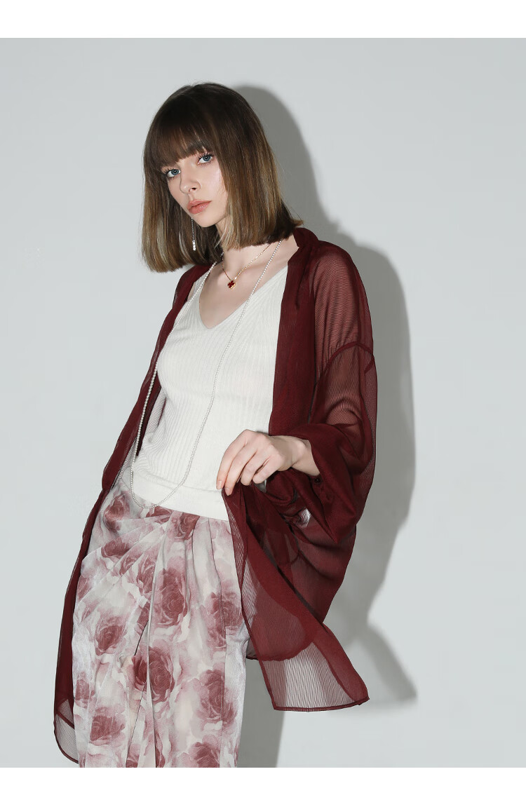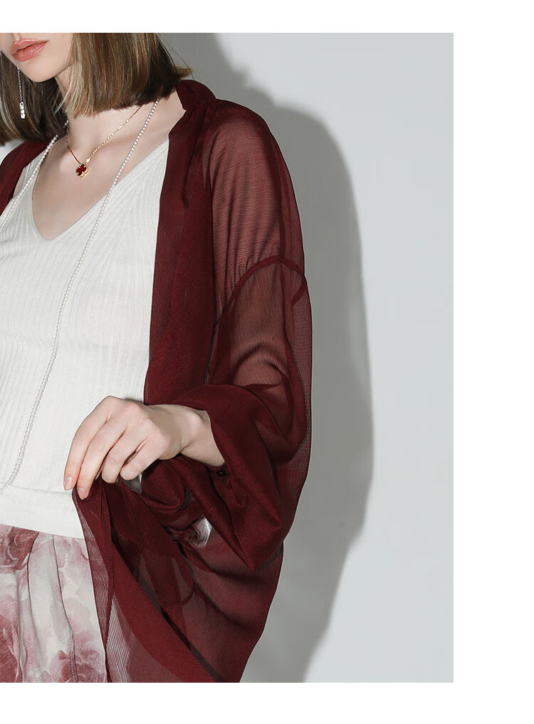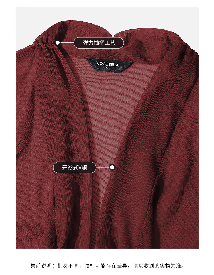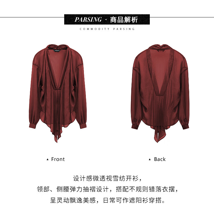 COCOBELLA设计感抽褶不规则雪纺衫微透视褶皱精致开衫LC0001C