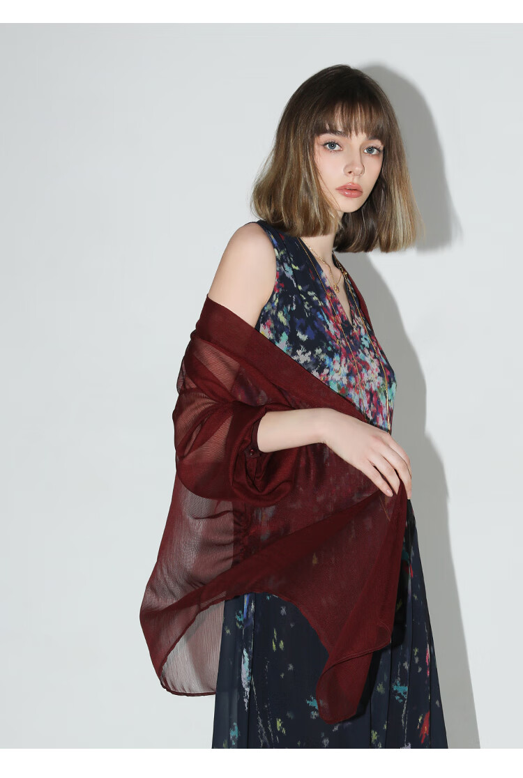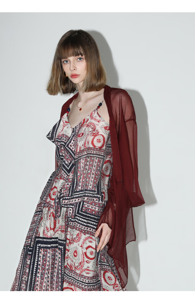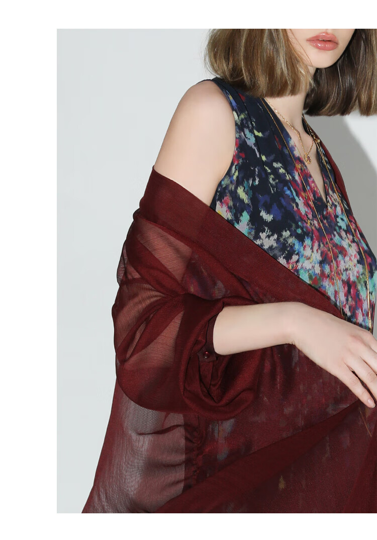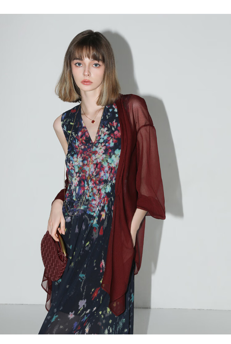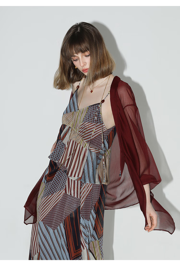 COCOBELLA设计感抽褶不规则雪纺衫微透视褶皱精致开衫LC0001C
