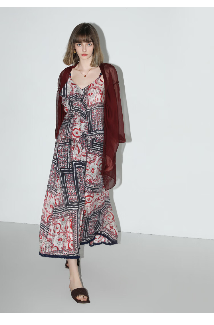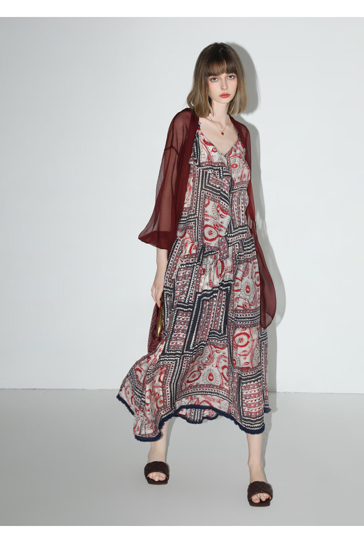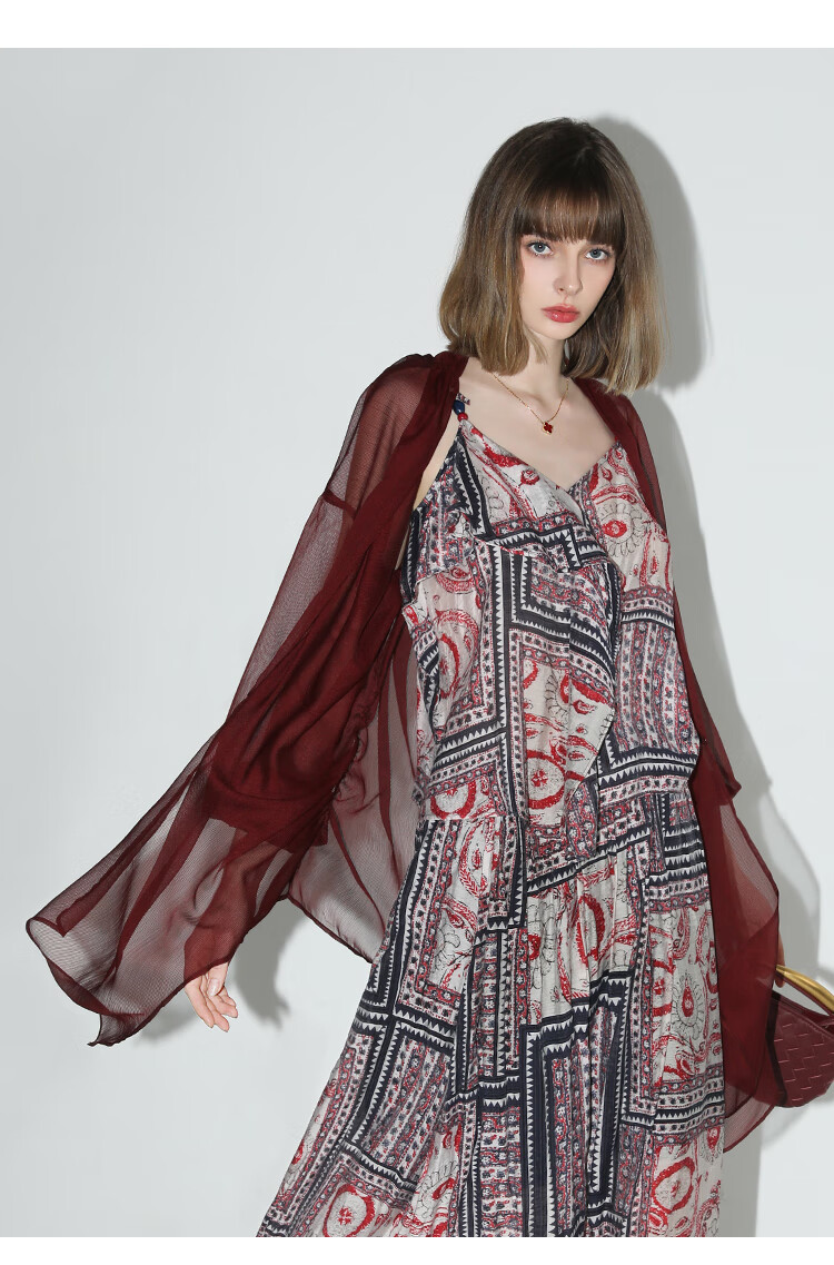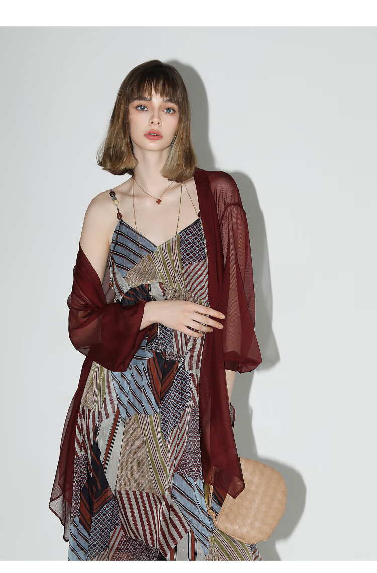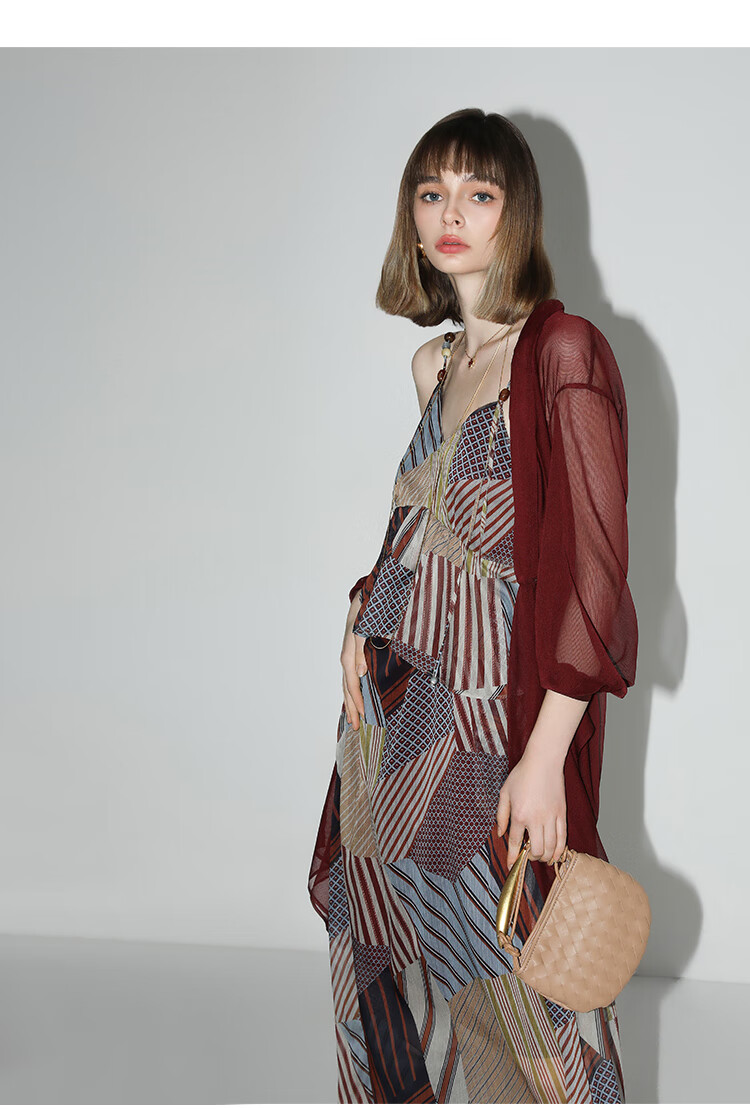COCOBELLA设计感抽褶不规则雪纺衫微透视褶皱精致开衫LC0001C