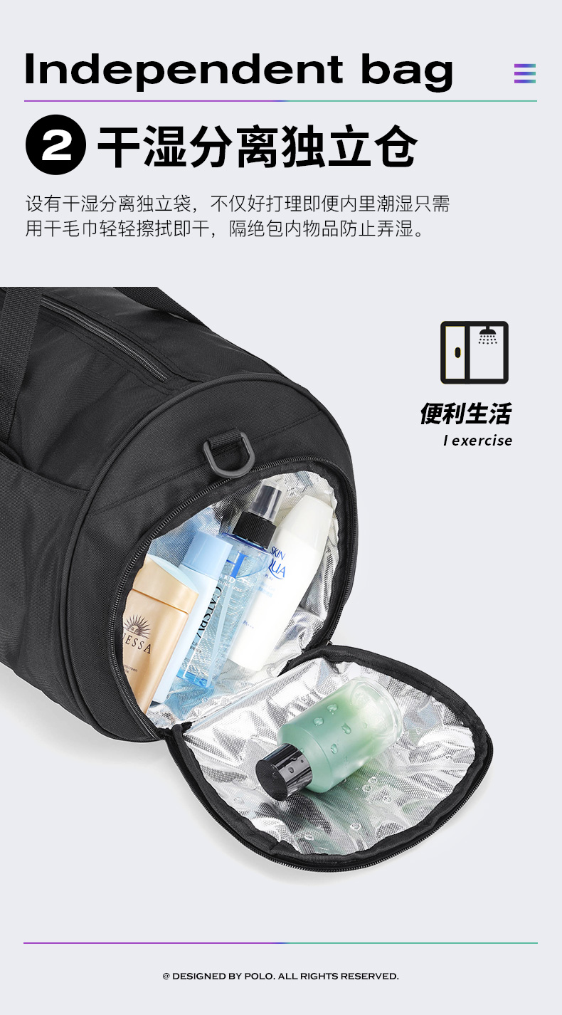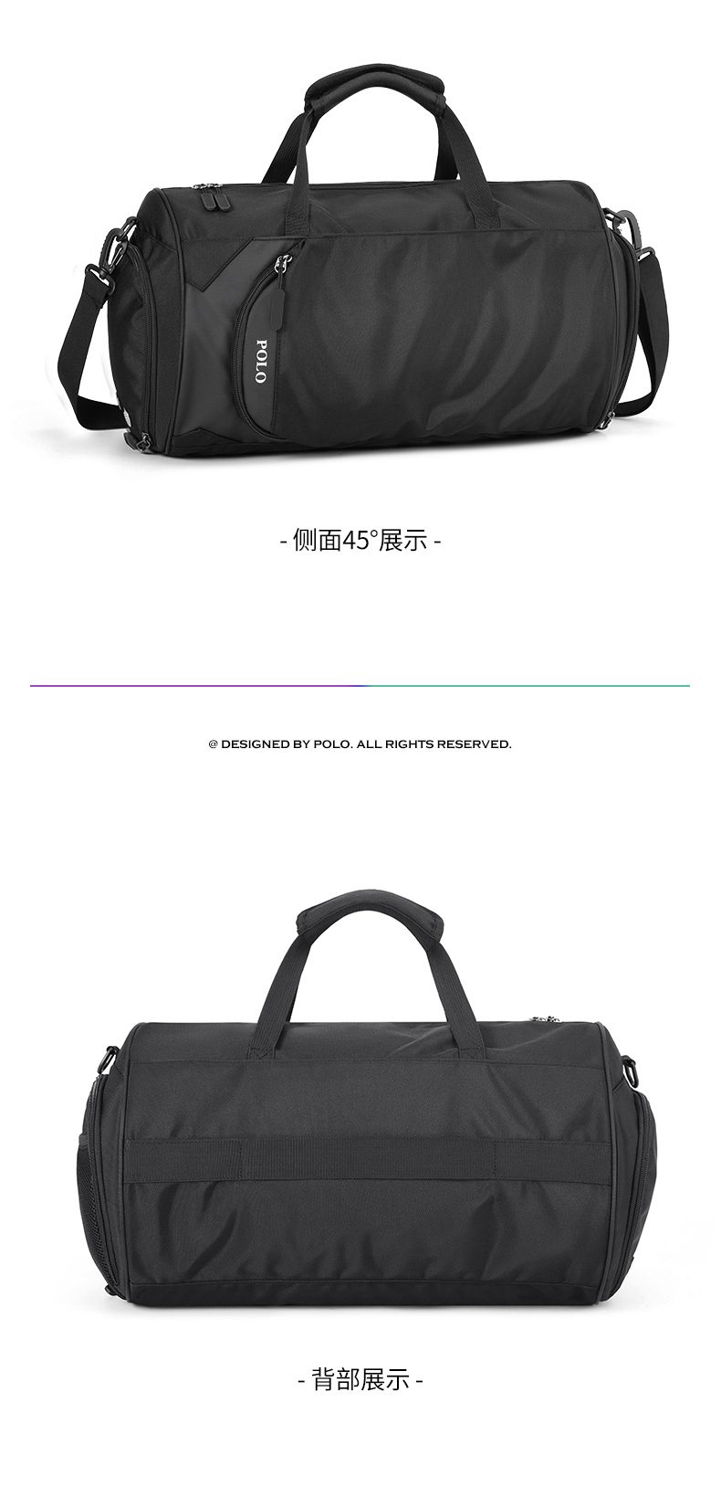 POLO运动健身包男士手提行李包大容量出差旅行袋休闲单肩斜挎包男包44293