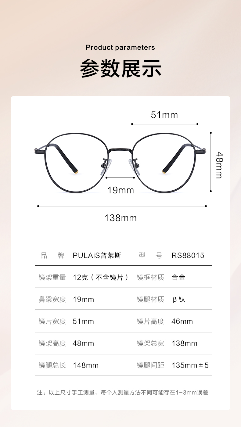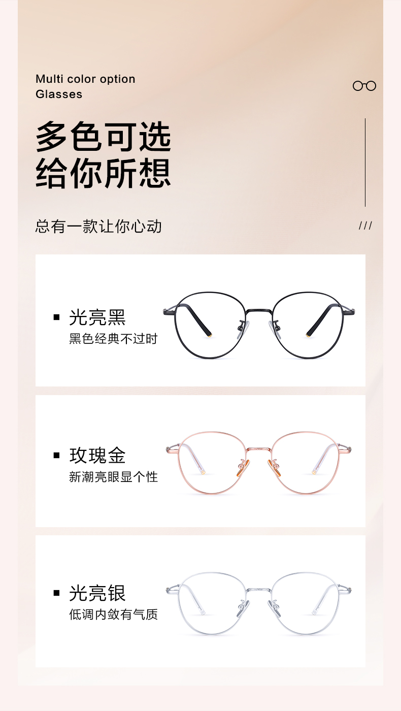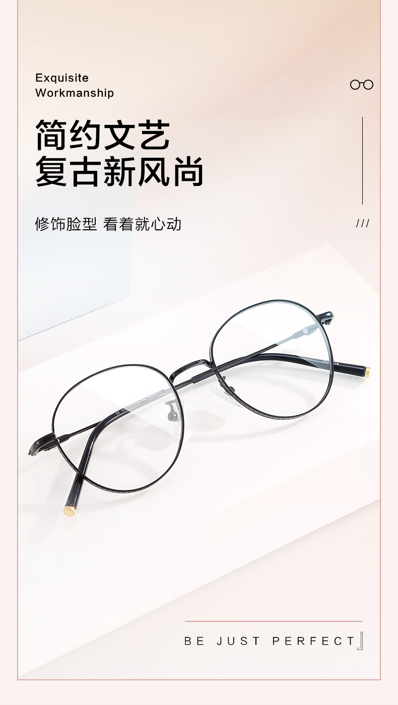 普莱斯RS88015 时尚圆框清新复古文艺 合金+β钛 三色可选