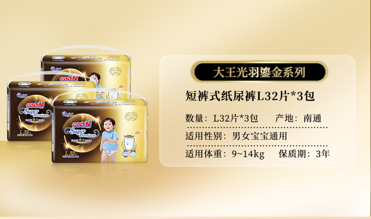 大王光羽鎏金系列拉拉裤L码32片