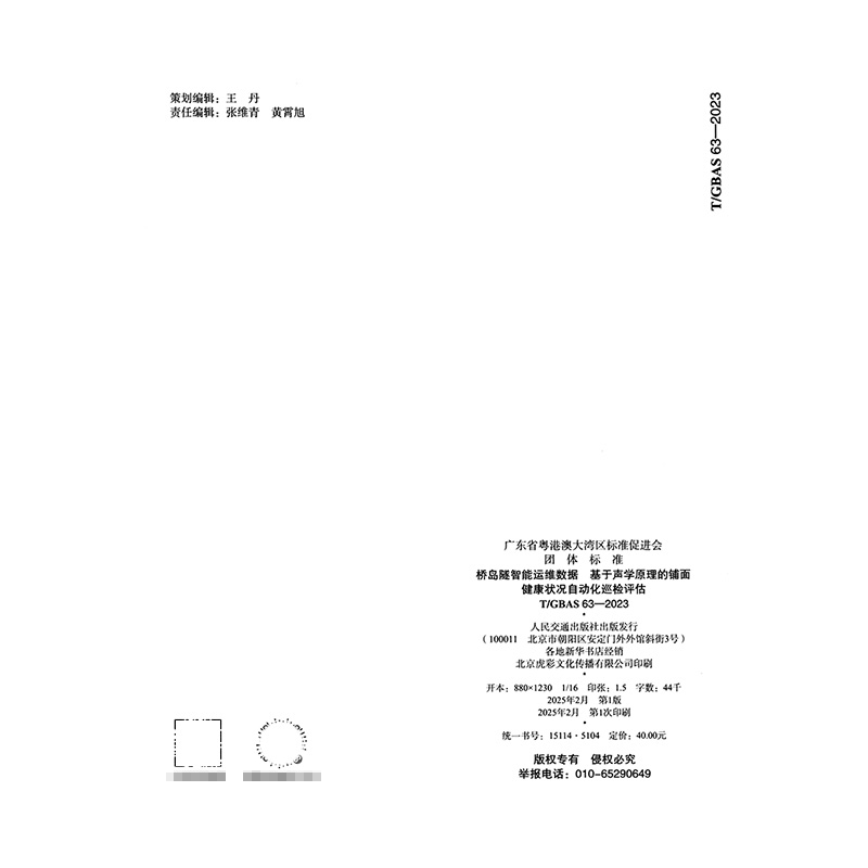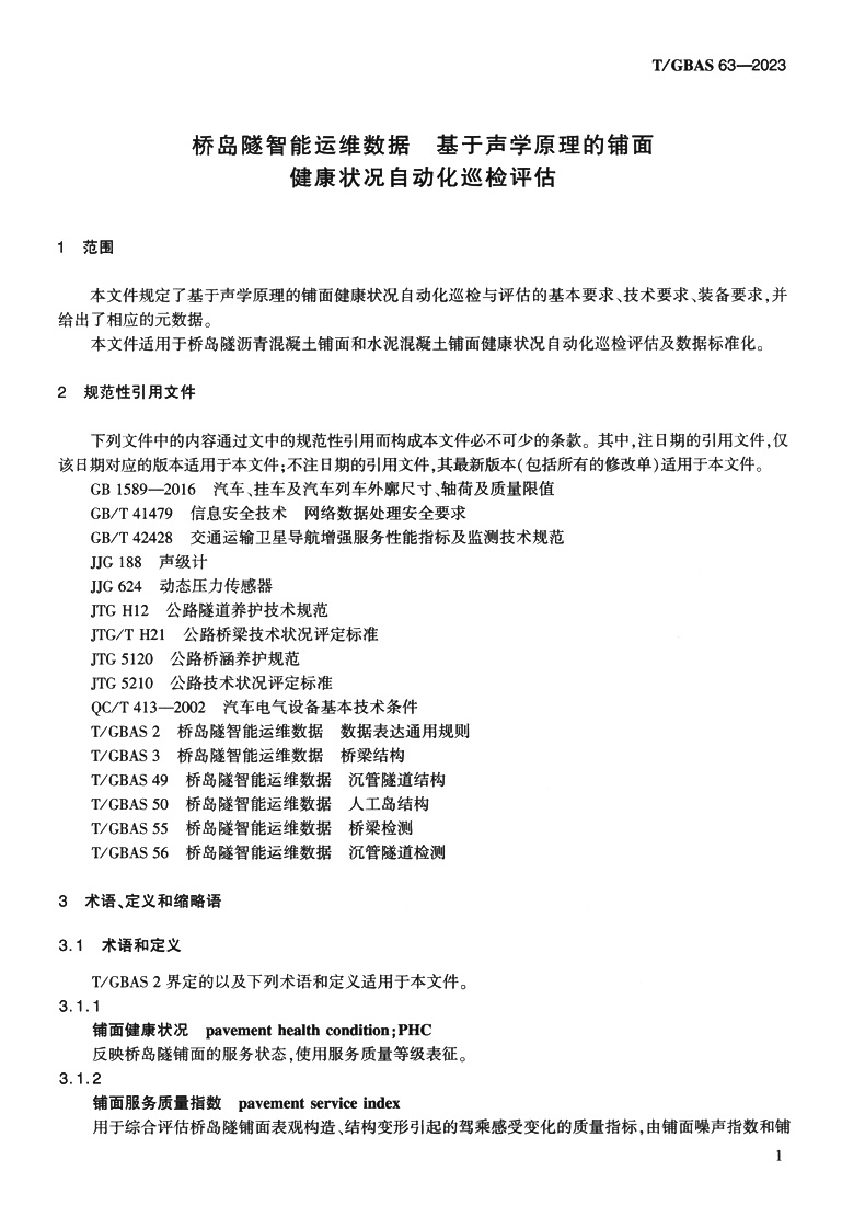 书名:桥岛隧智能运维数据 基于声学原理的铺面健康状况自动化巡检评估T/GBAS 63—2023