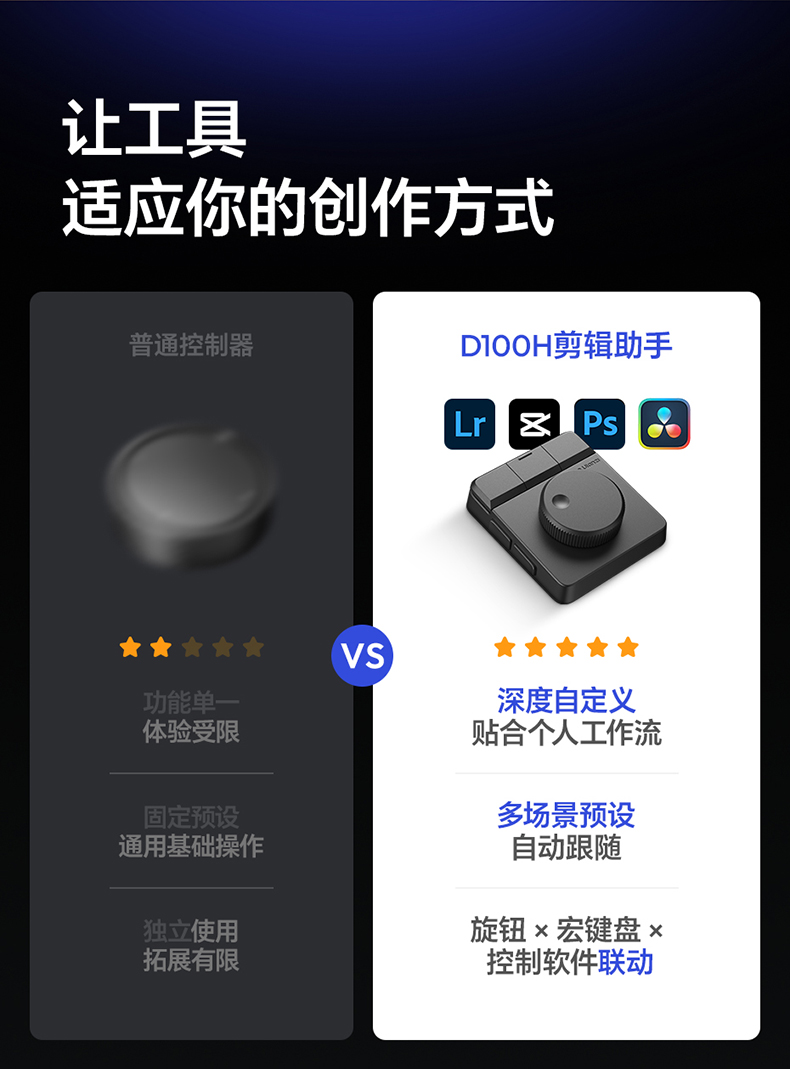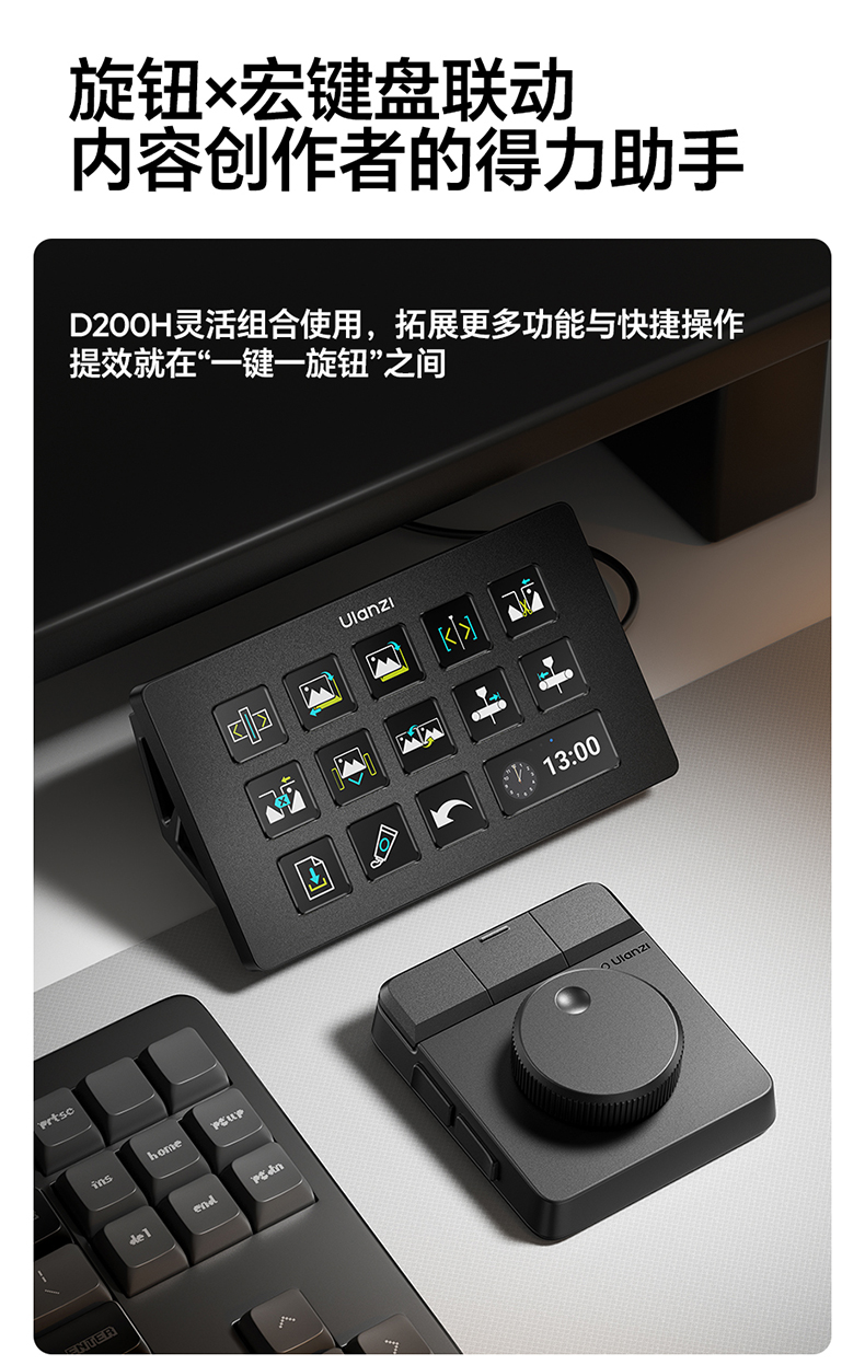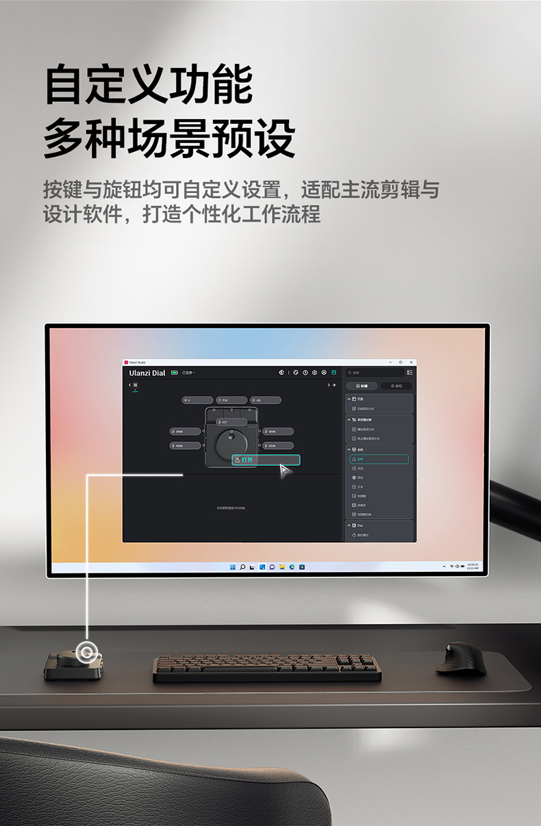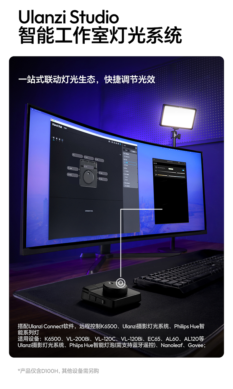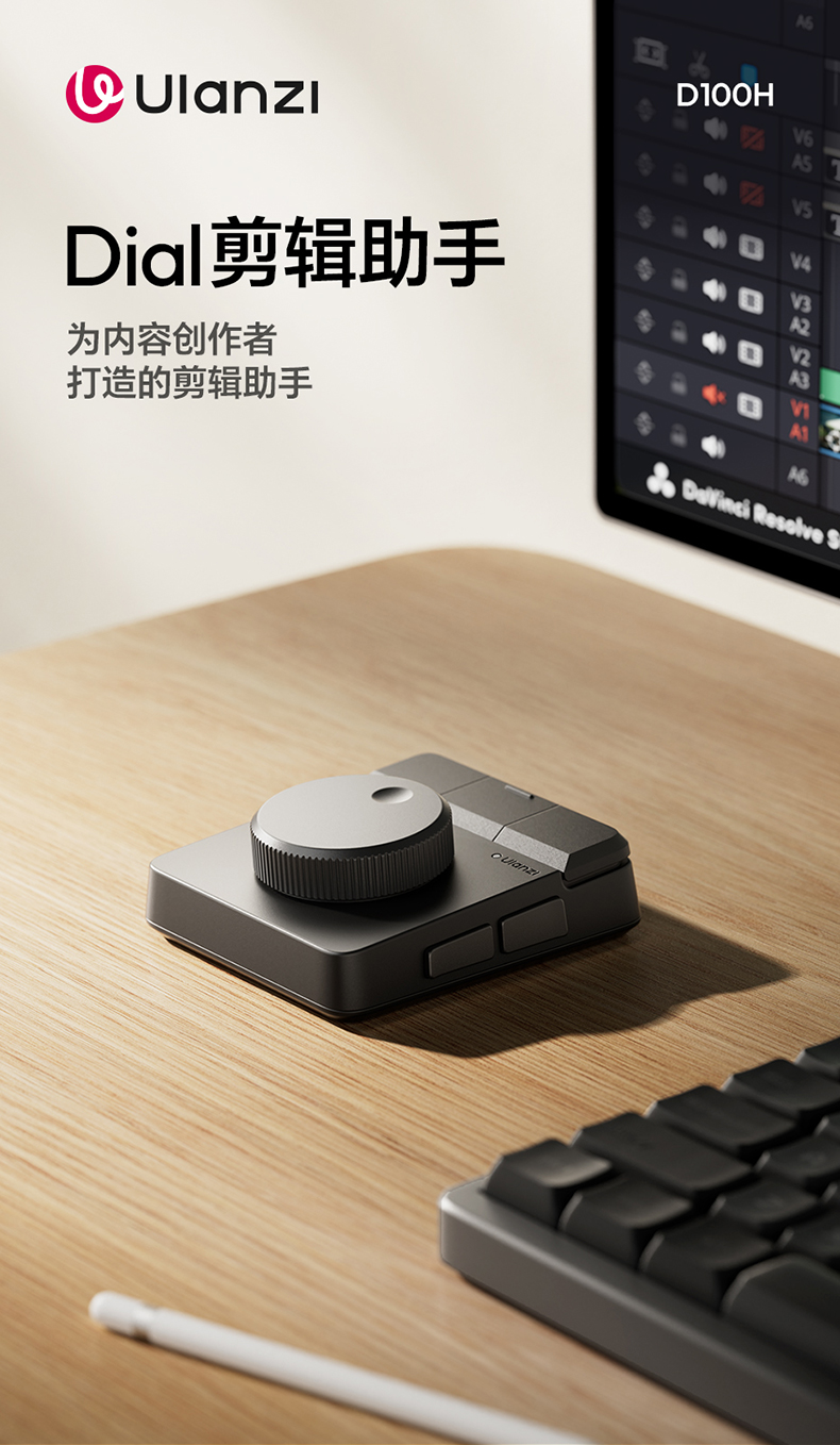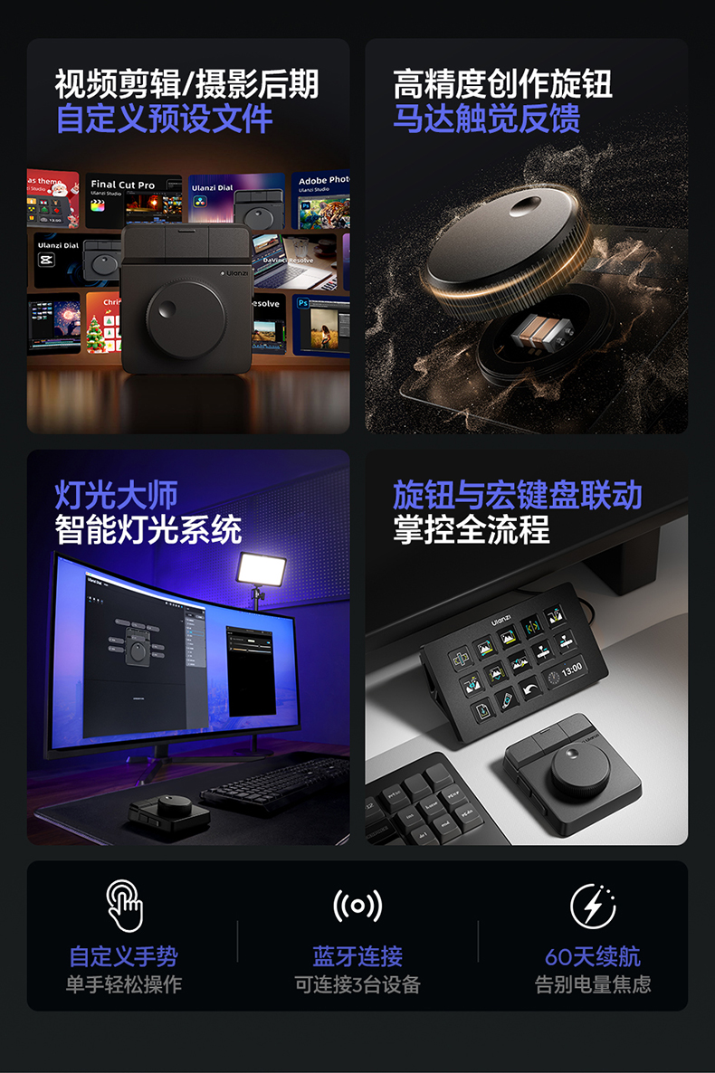 Ulanzi优篮子D100H Dial桌面控制器视频直播剪辑助手摄影内容创作AI智能辅助工具电脑自定义旋钮按键控制台座