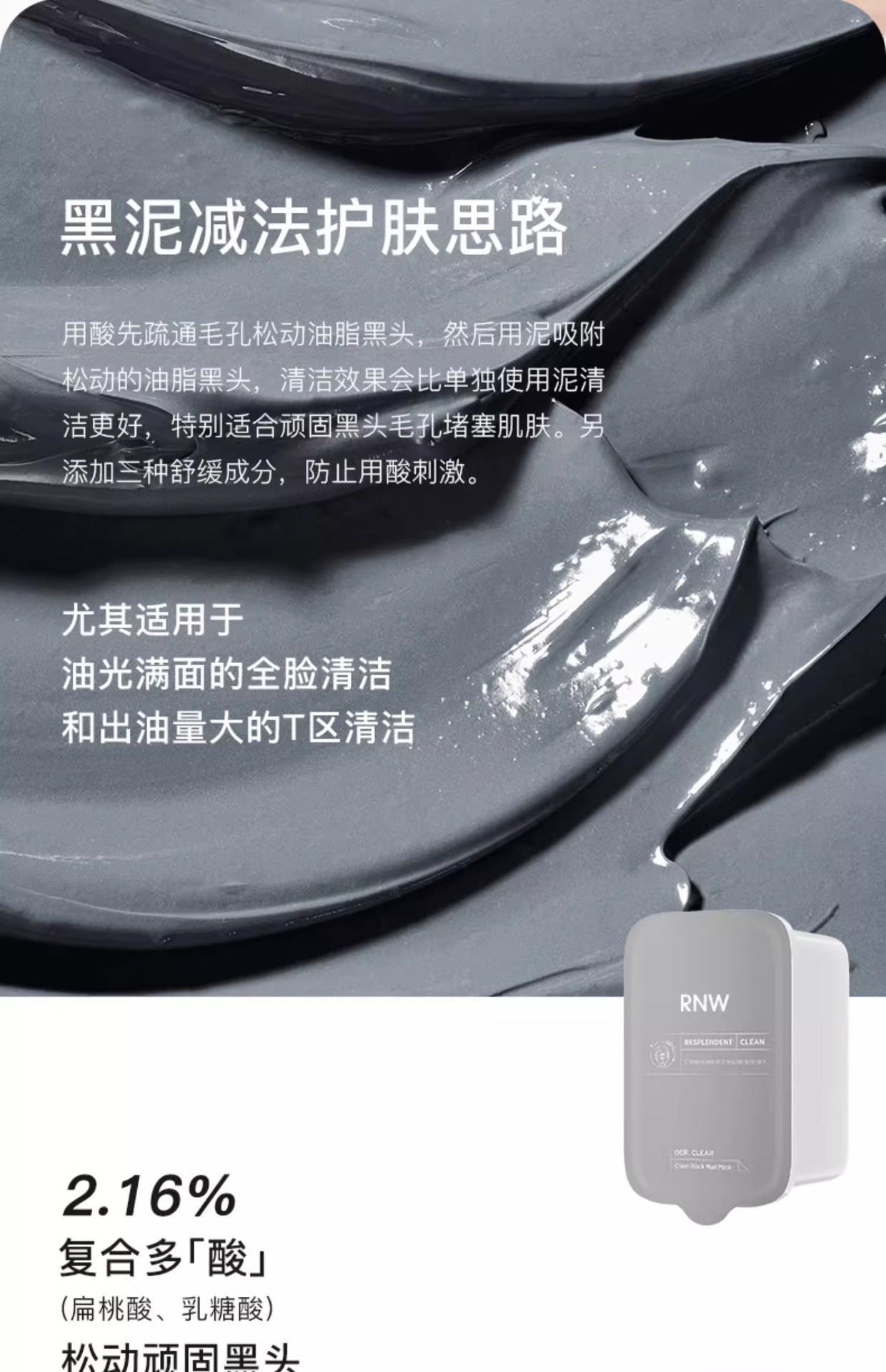 【自营】RNW双色去黑头泥膜清洁毛孔补水保湿男女涂抹式面膜