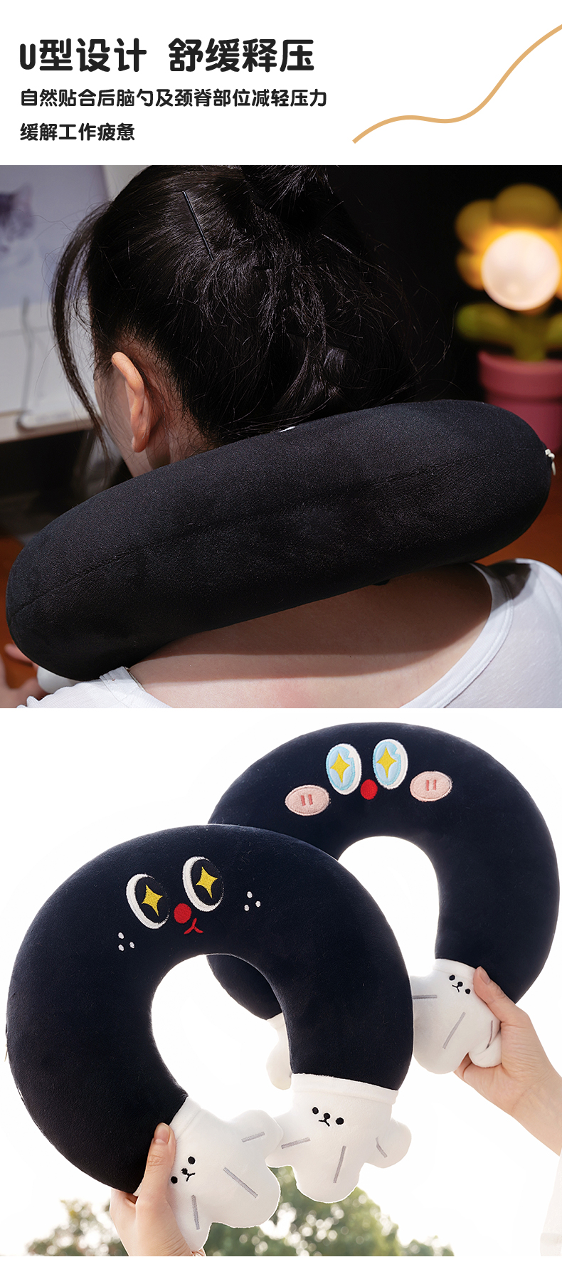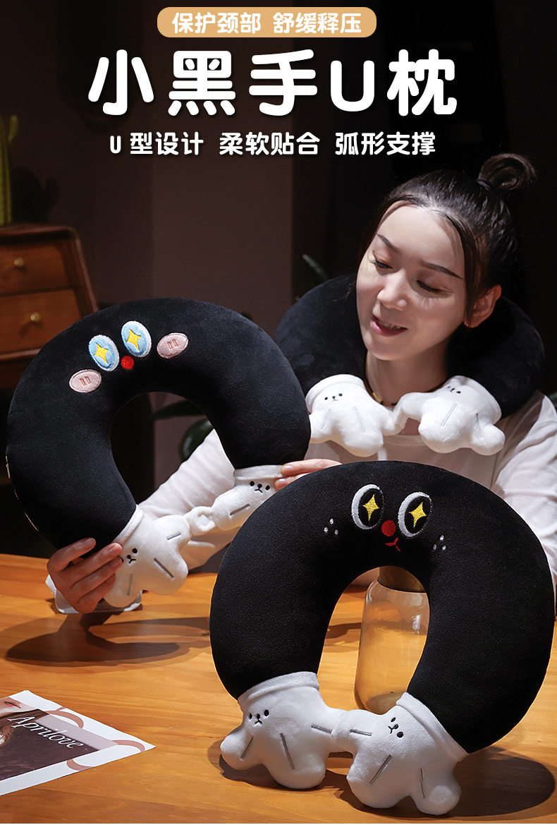 自然醒水晶绒小黑手u枕QYL