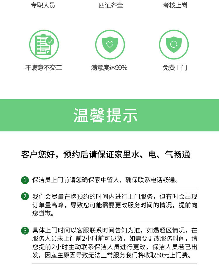 服务说明:临近春节期间库存较满,请提前安排您的保洁服务,若因库存问题导致无法服务,请您谅解!