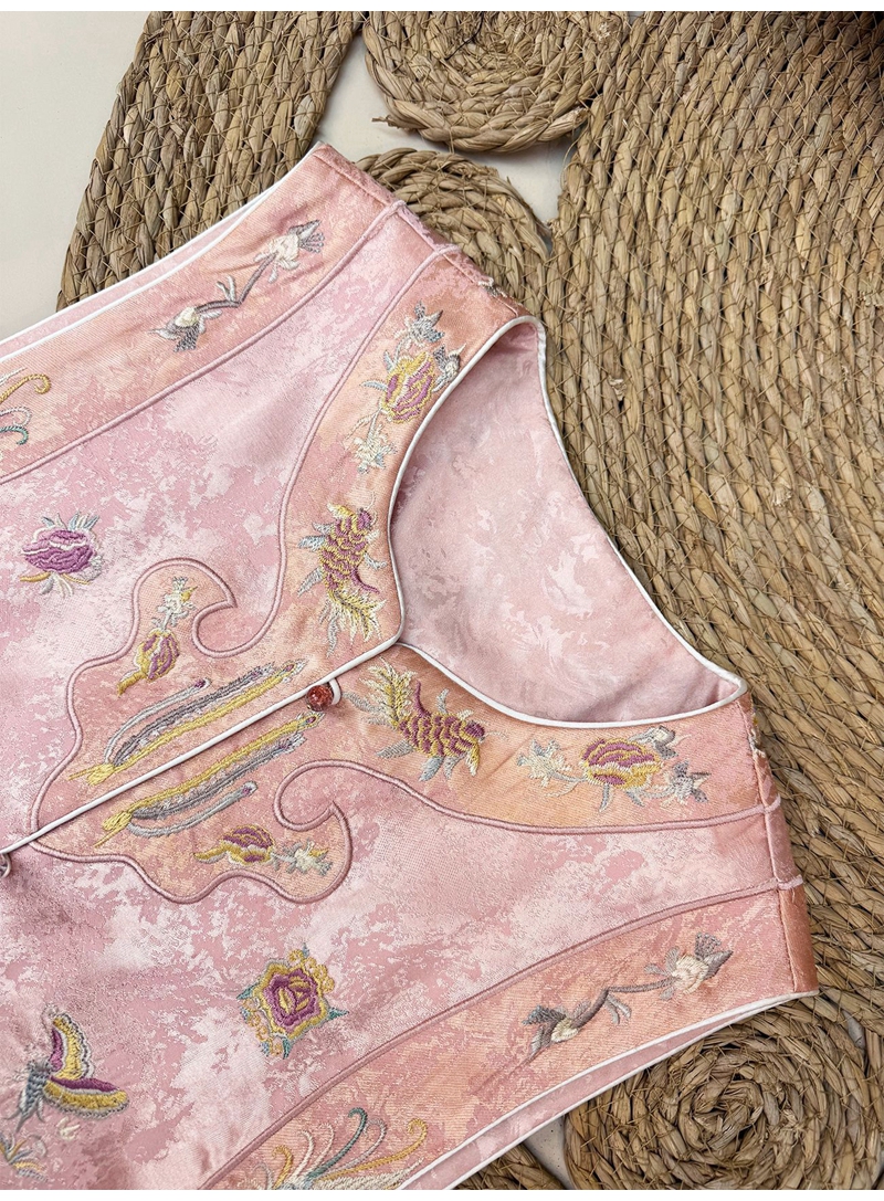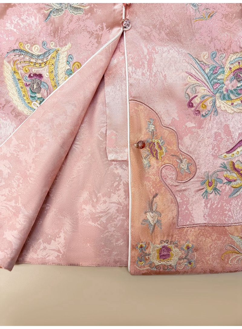 时尚浮雕肌理提花圆领短袖拼接连衣裙