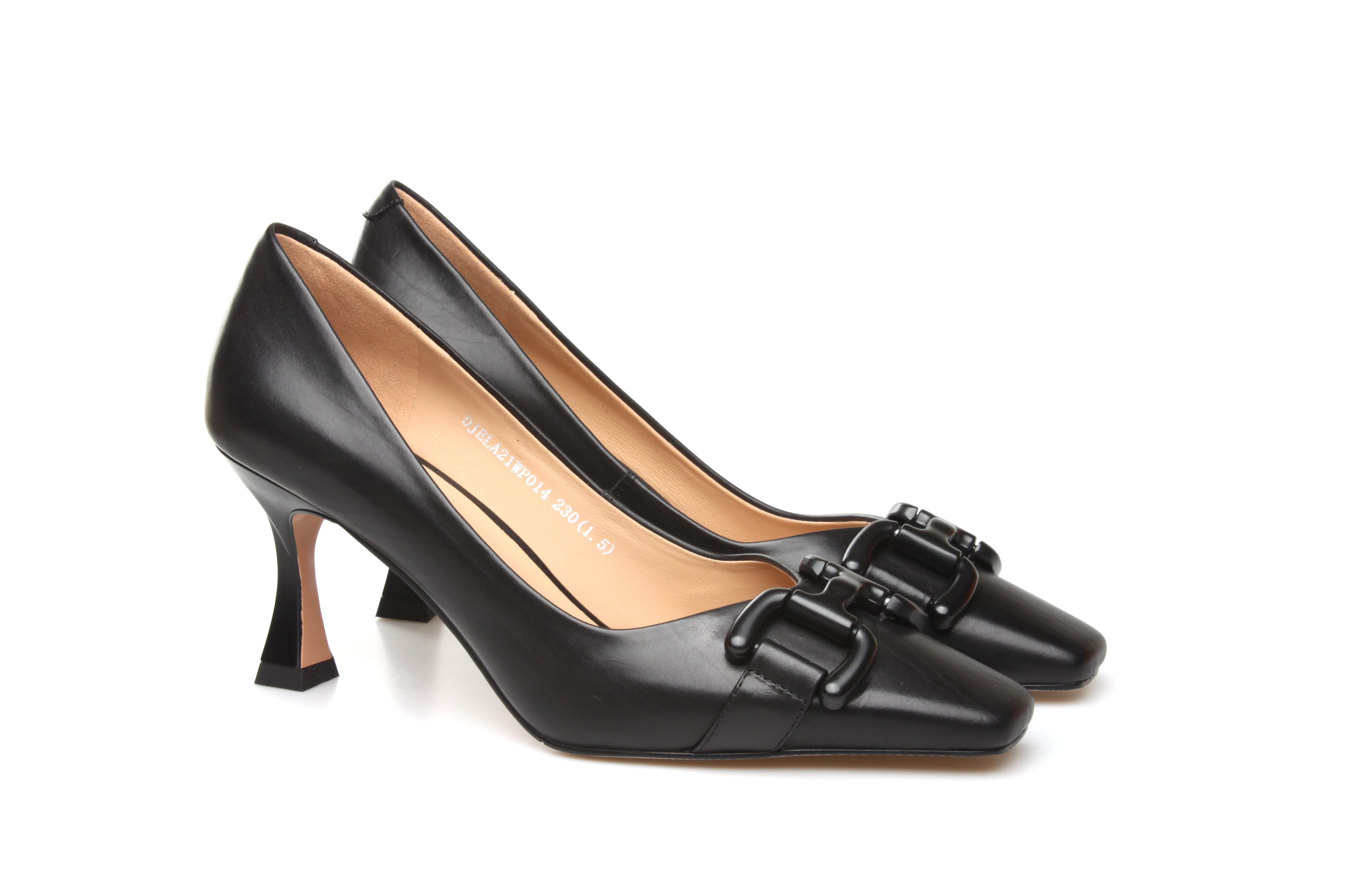 豪麟名鞋奥莱迪嘉女装胎牛皮时尚气质皮鞋DJELA21WP014黑色 原价1960元