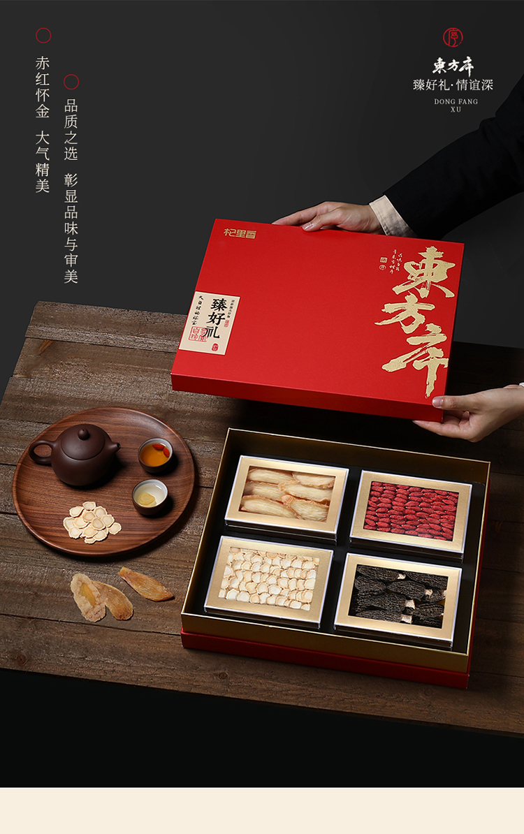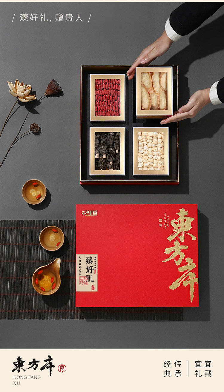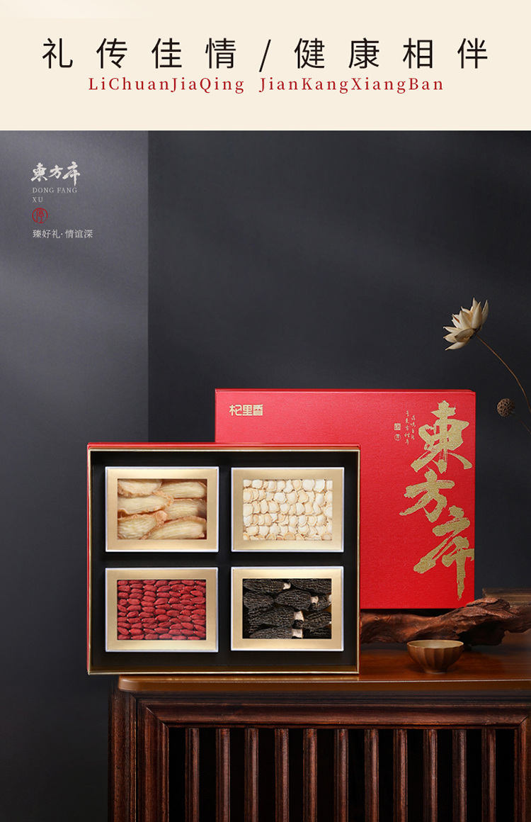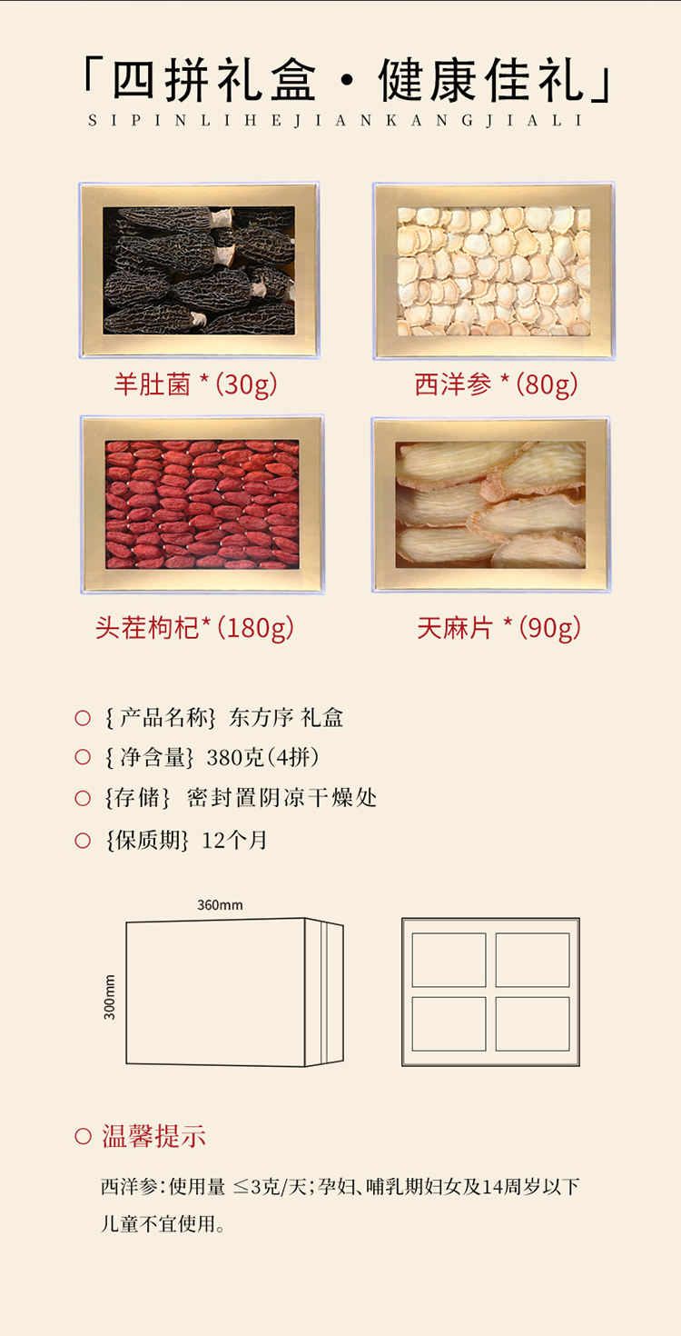 杞里香380g东方序四拼礼盒F【羊肚菌30g、10-12mm西洋参80g、宁A150-170枸杞180g、天麻片90g】