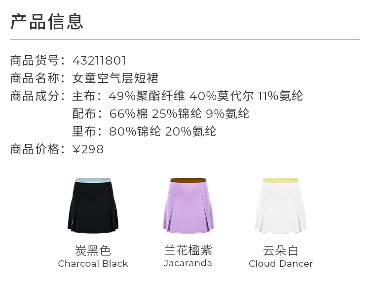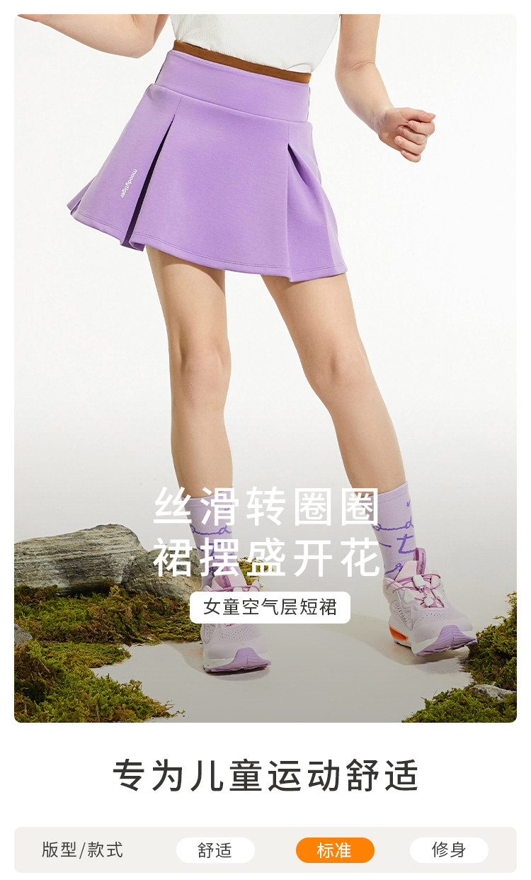【24年秋新品】moodytiger24秋新女童半身裙舒适休闲时尚运动半身裙43211801