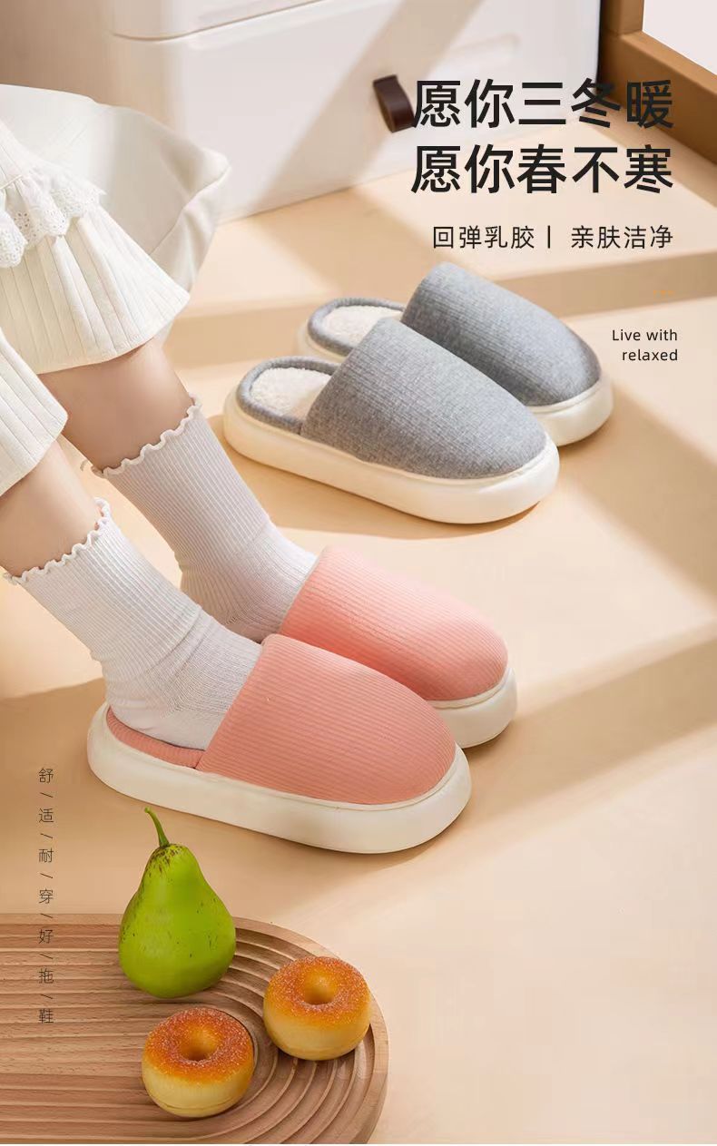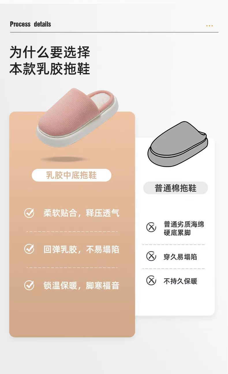 乳胶棉拖鞋女 冬季新款居家用 防滑厚底情侣棉拖鞋 乳胶中底 一踩一回弹 保暖乳胶拖鞋 每一步都踩在乳胶枕上