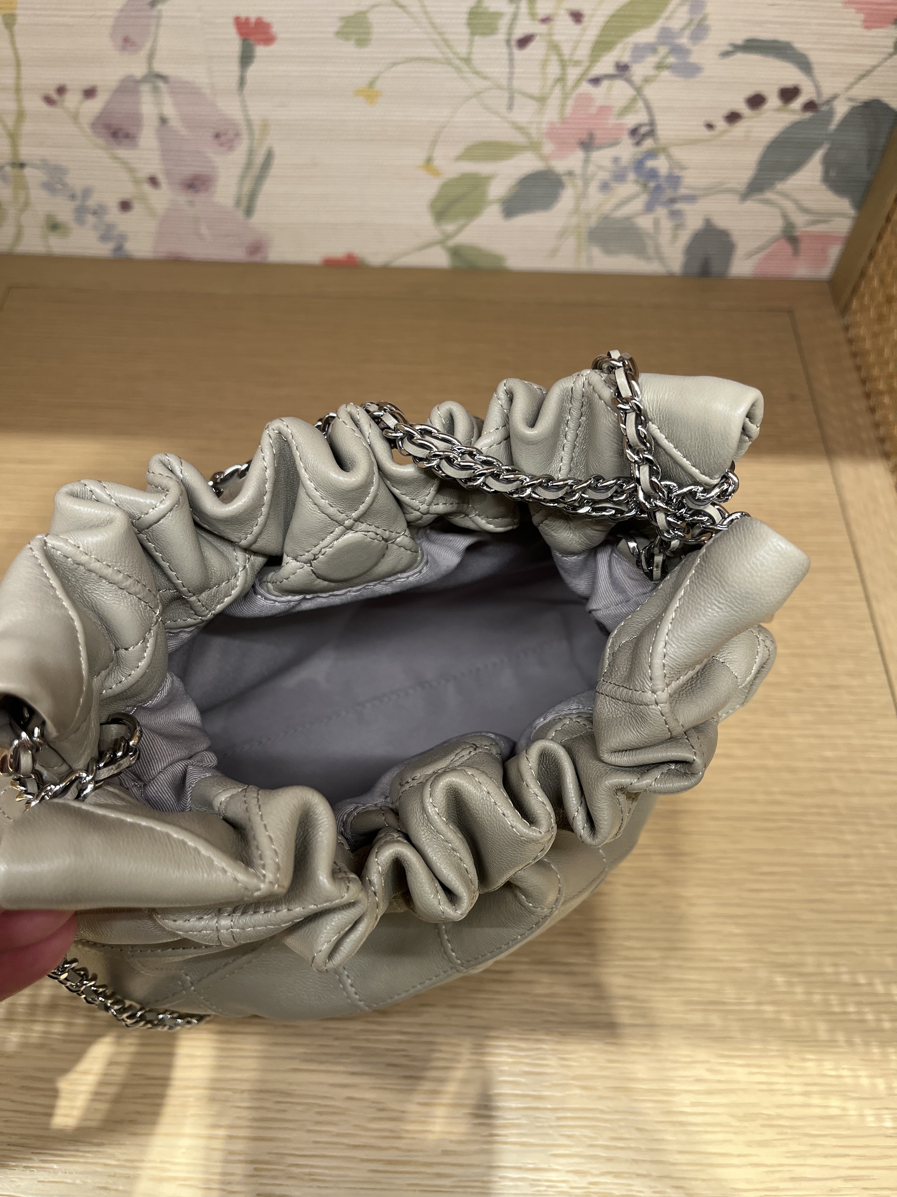 Fleming 迷你肩背包精选柔软皮革,焕新融入菱形褶饰,搭配皮革编织链条背带,更显精致与时尚。
