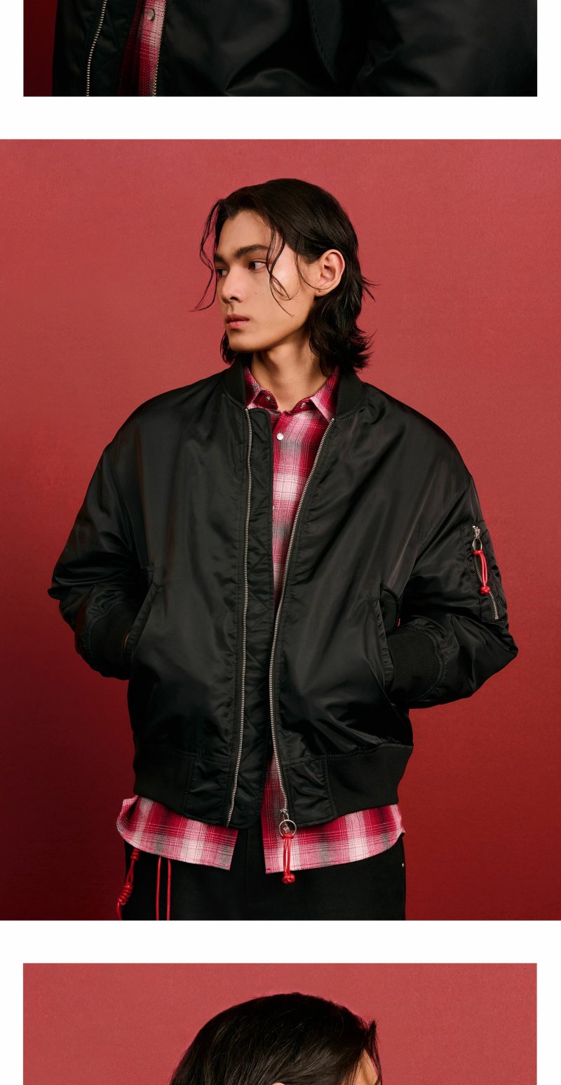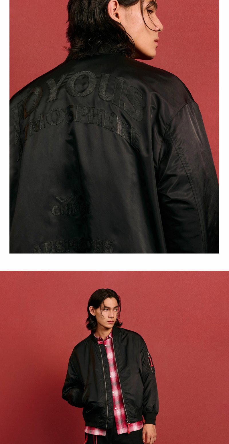 CHINISM赤尘 CH中国结MA1飞行夹克男秋季复古加厚男生无领外套