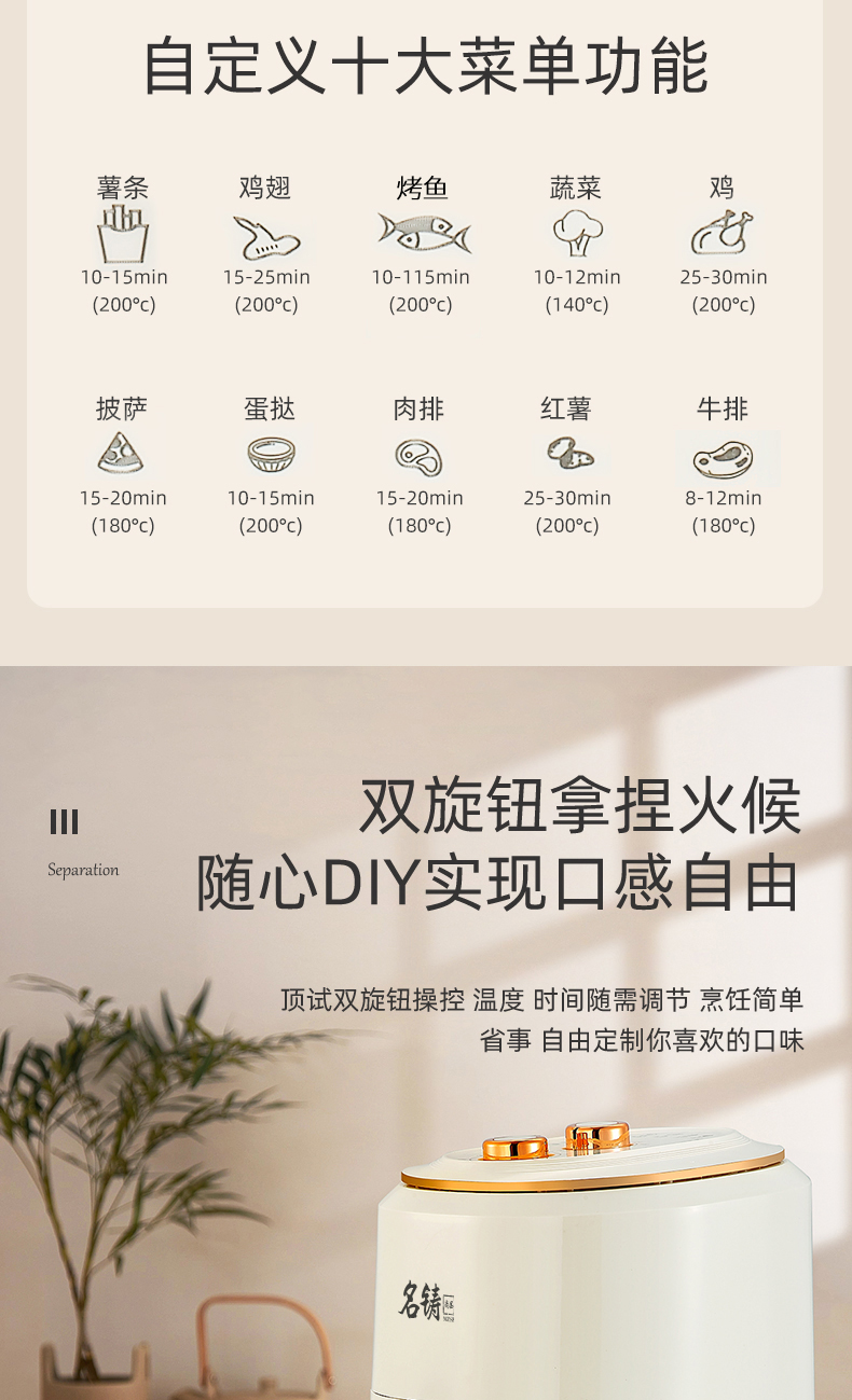 【自营】名铸尚品 可视空气炸锅电烤箱 米黄色 A0-88