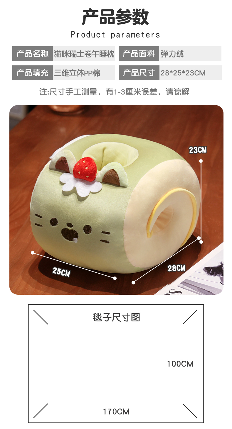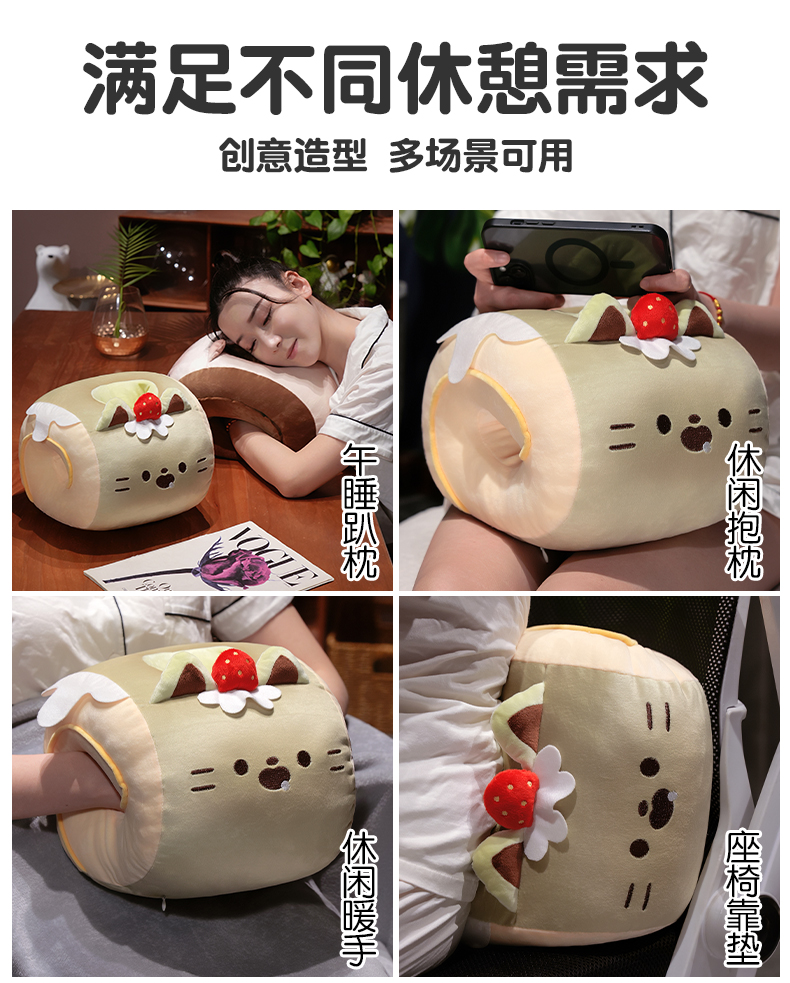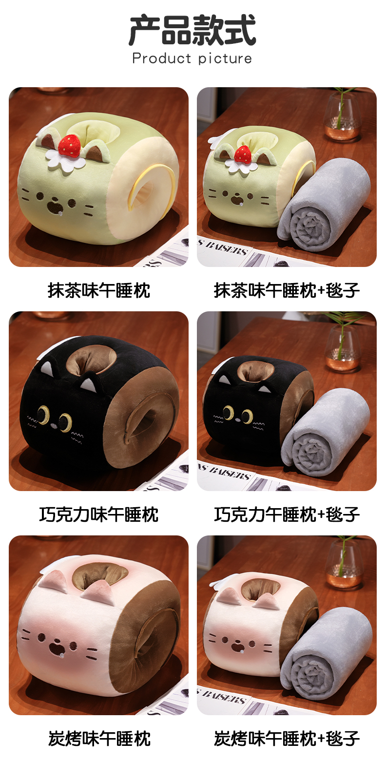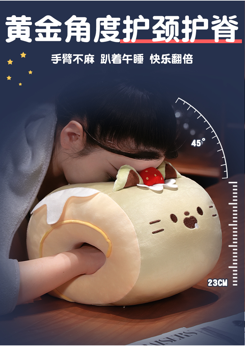 自然醒猫咪瑞士卷带孔午睡枕趴睡枕儿童小学生教室睡觉枕头抱枕办公室QYL
