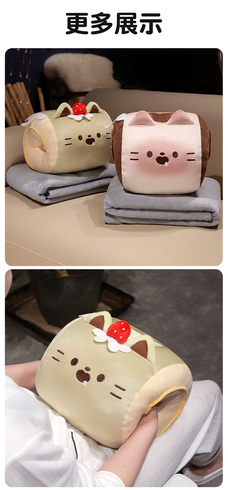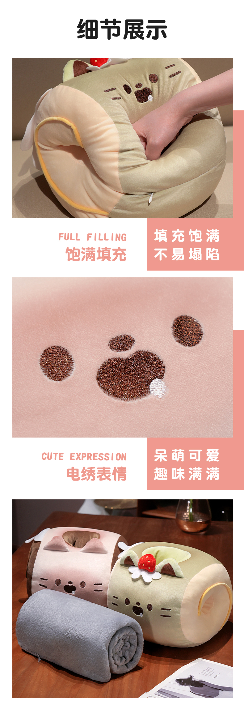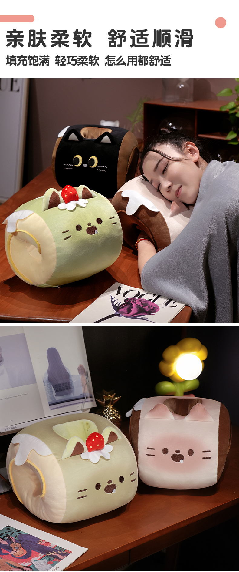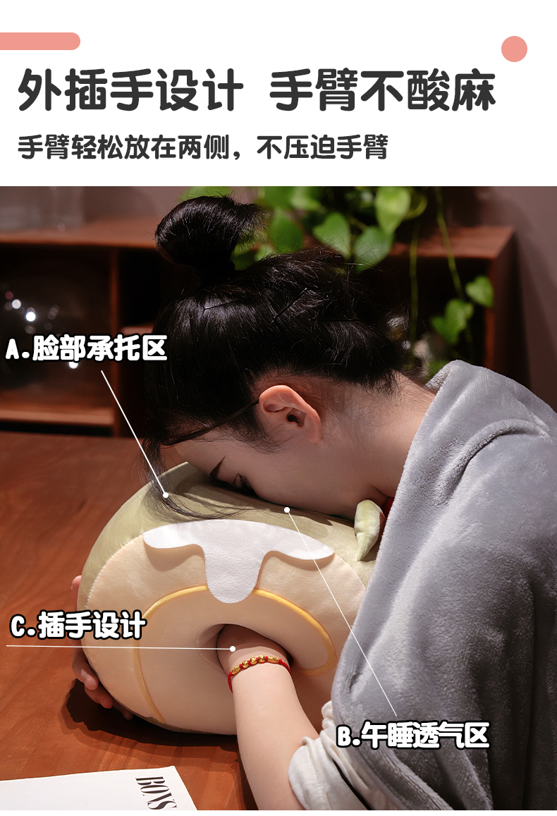 自然醒猫咪瑞士卷带孔午睡枕趴睡枕儿童小学生教室睡觉枕头抱枕办公室QYL