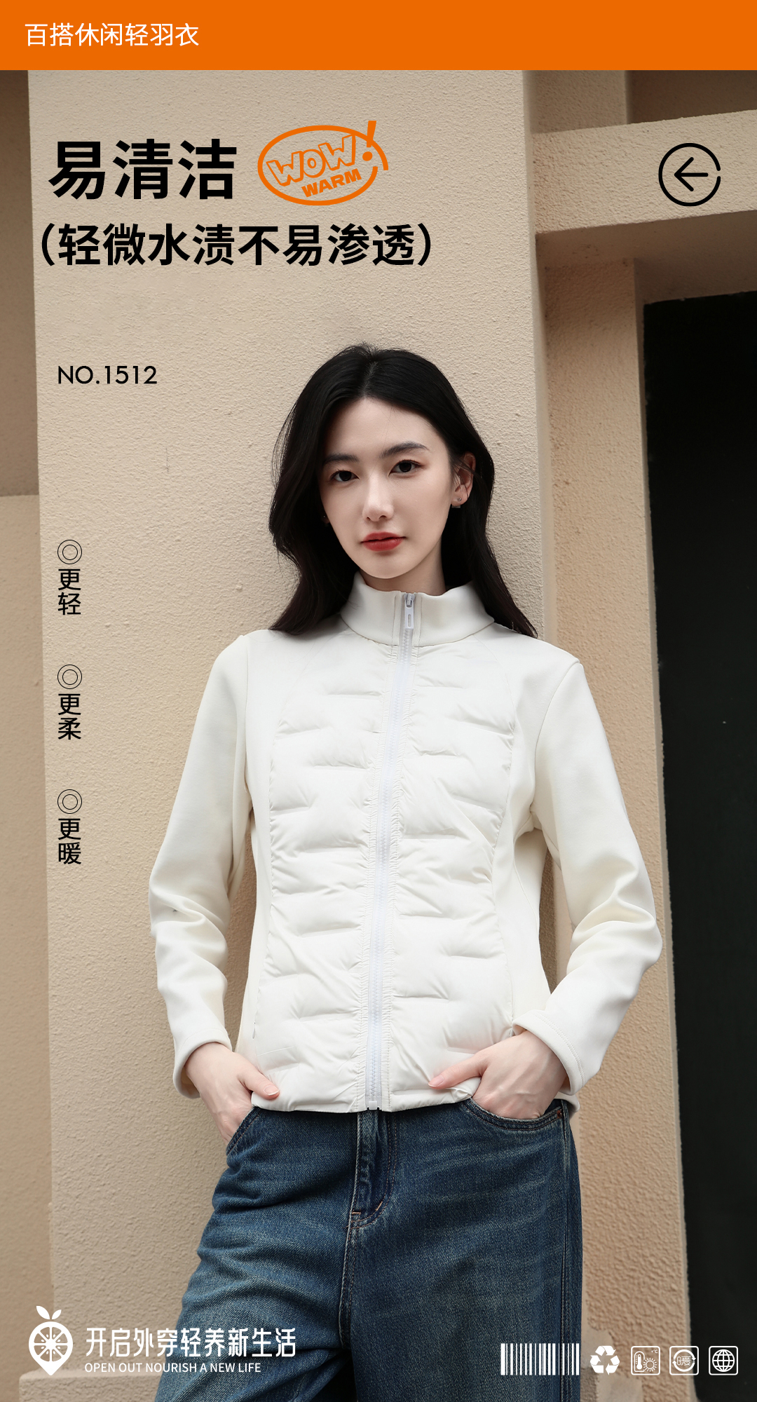 【喵小仟 百搭休闲轻羽衣】90鸭绒 微米防风防泼水外层 时尚修身 冬季保暖