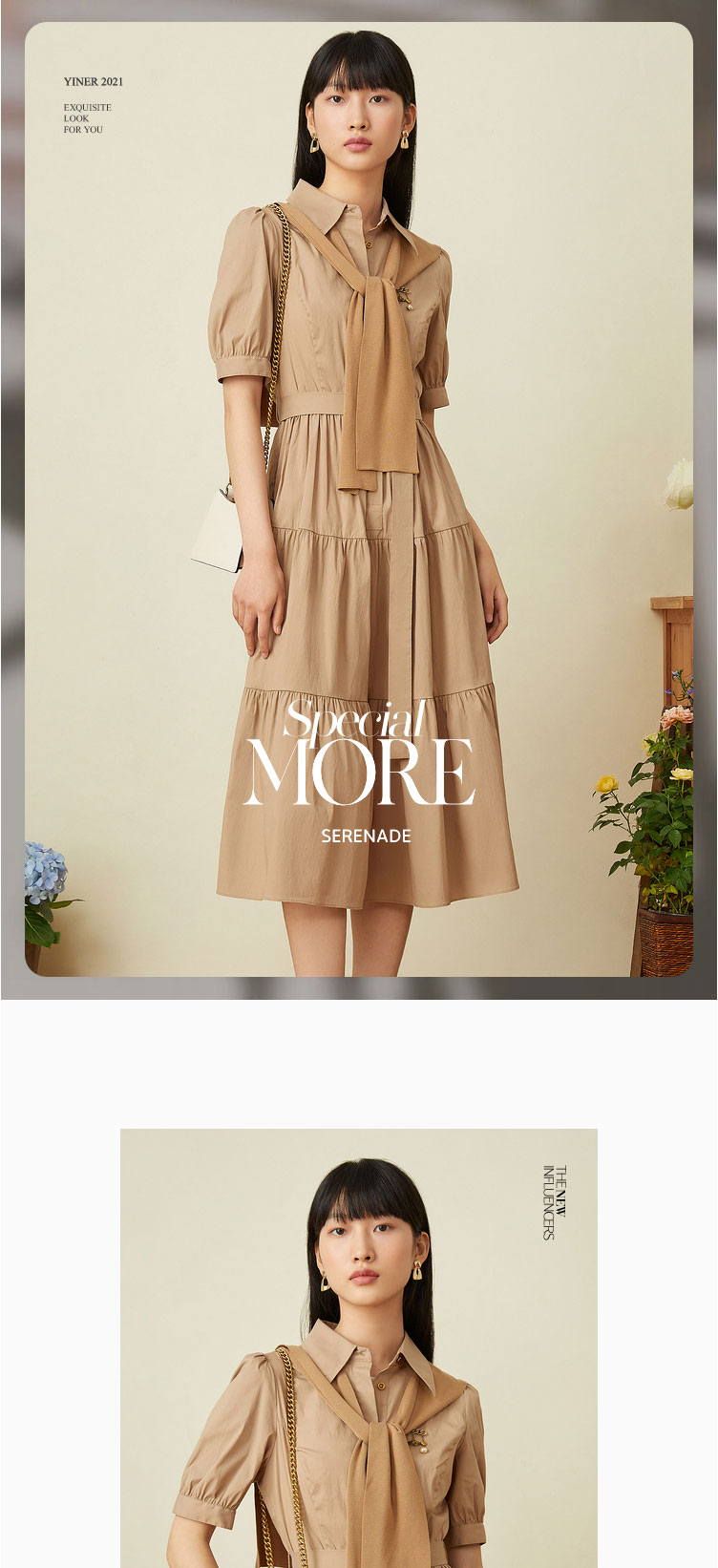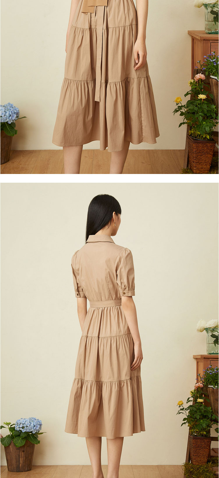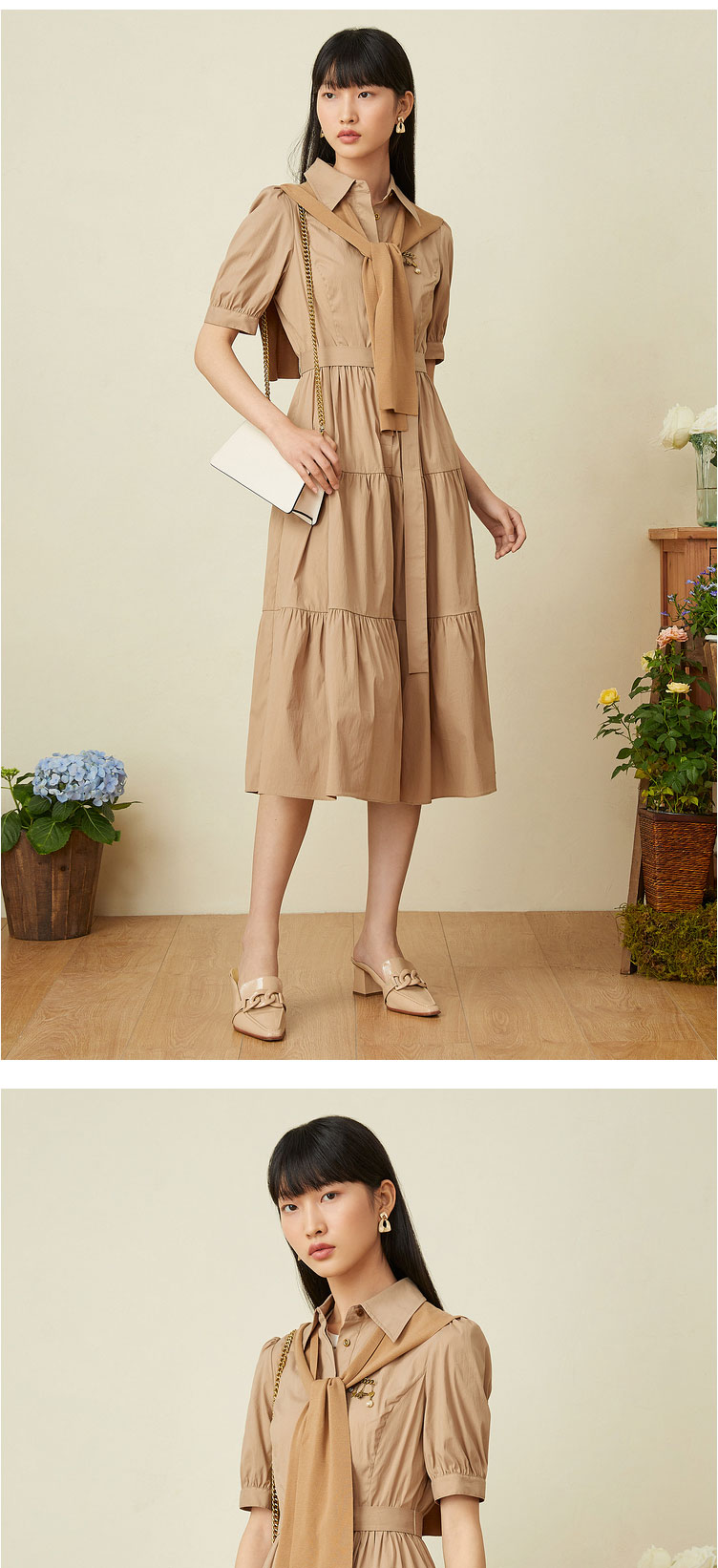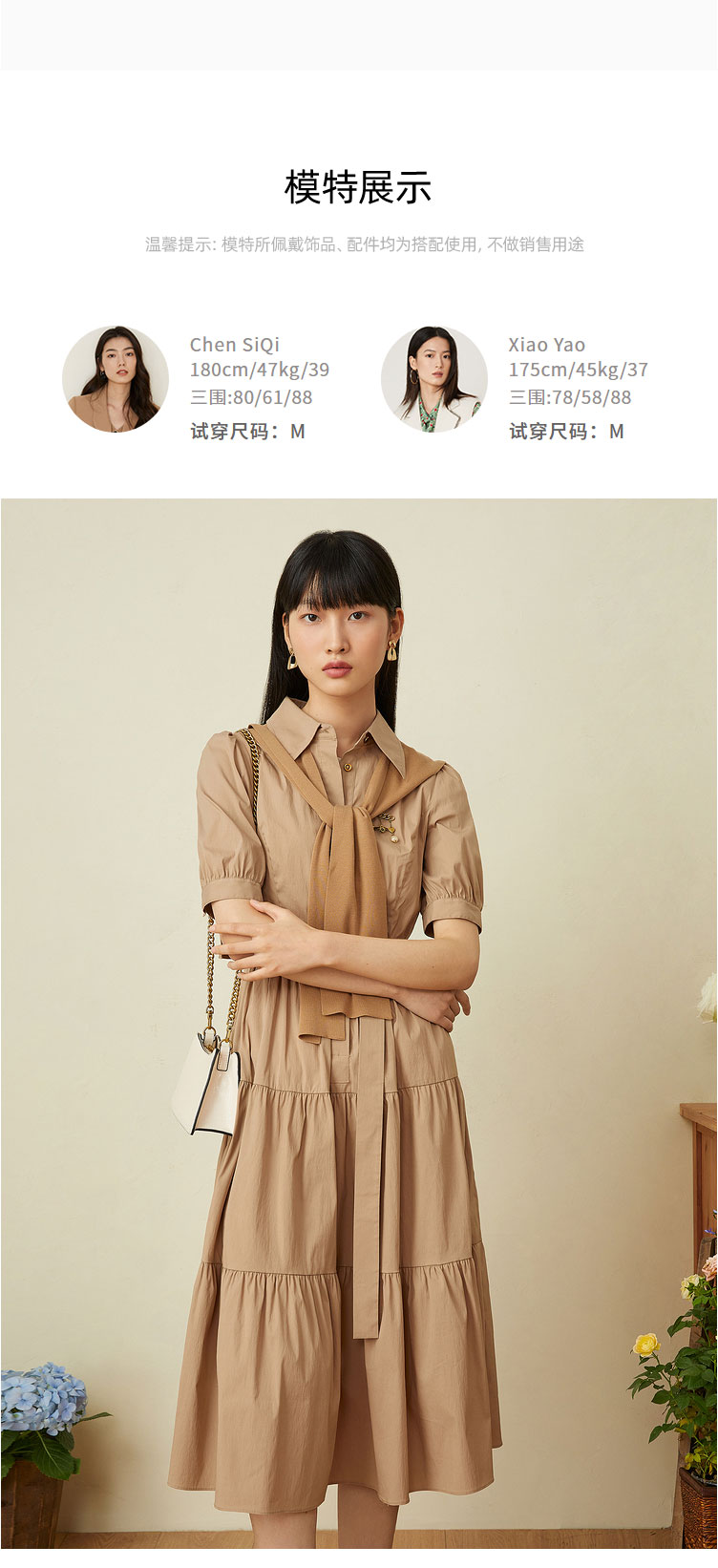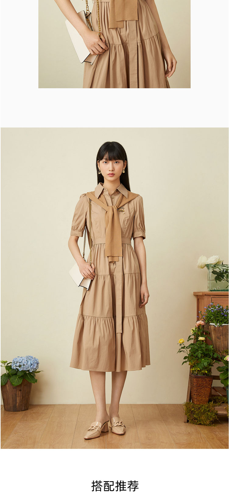 音儿女装2022夏季新款收腰蛋糕裙衬衫领连衣裙8c32205210