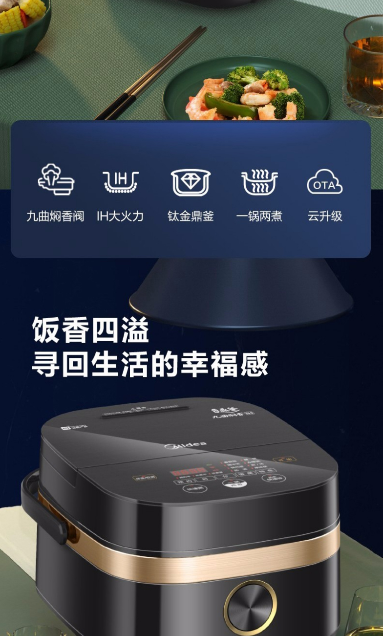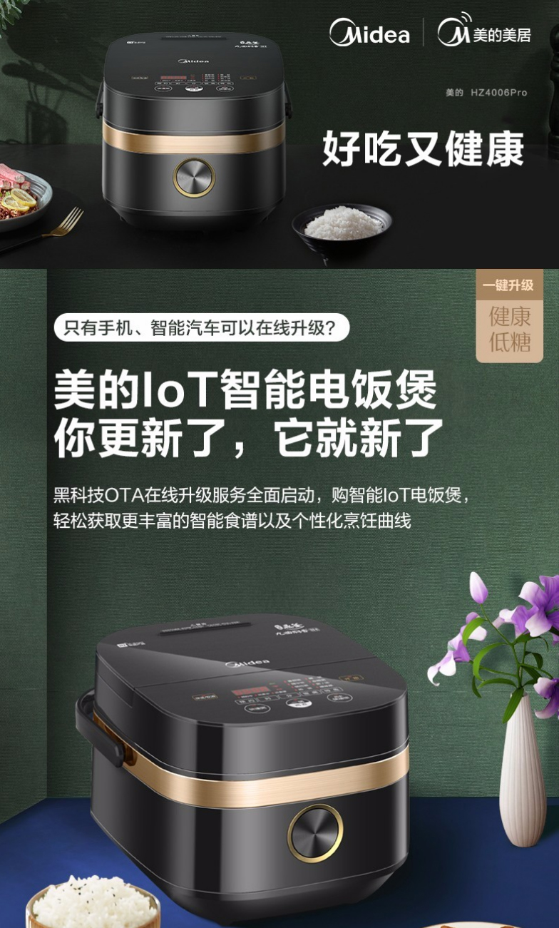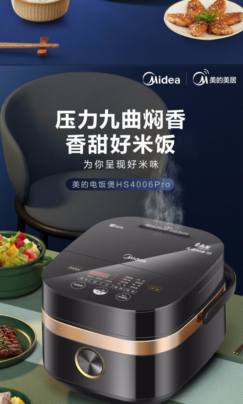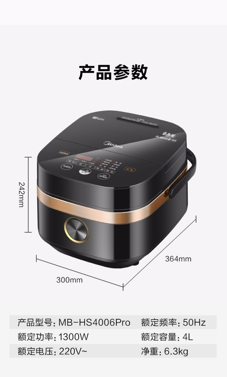 美的电饭煲IH电磁加热4升钛金鼎釜内胆24小时智能预约电饭锅MB-HS4006pro