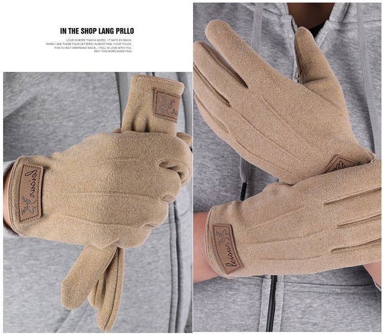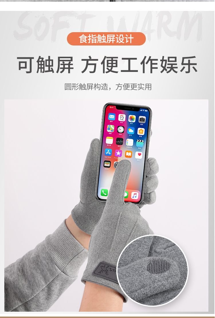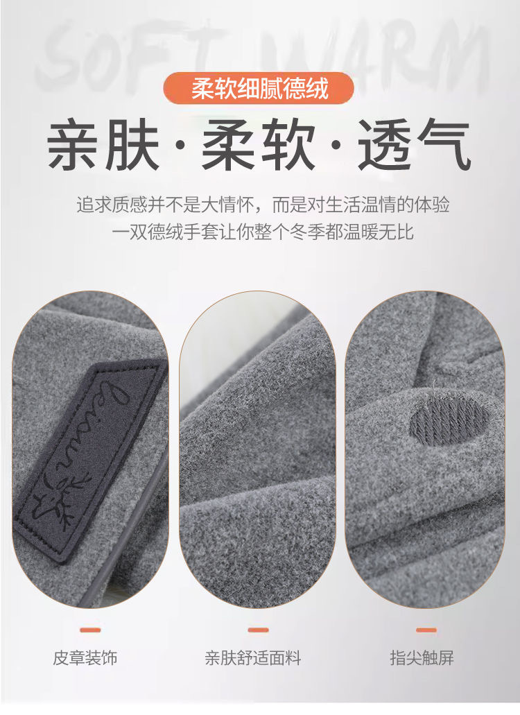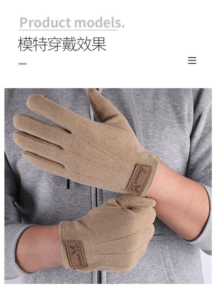 德绒手套男款秋冬季触屏保暖男款骑行手套时尚加绒分指手套秋冬防风保暖手套骑行手套