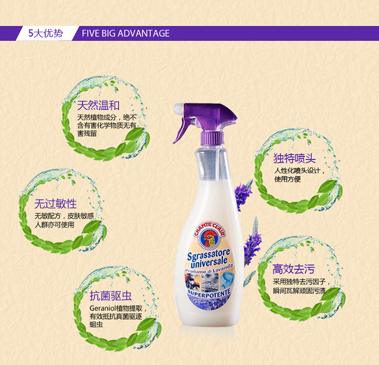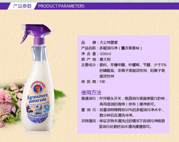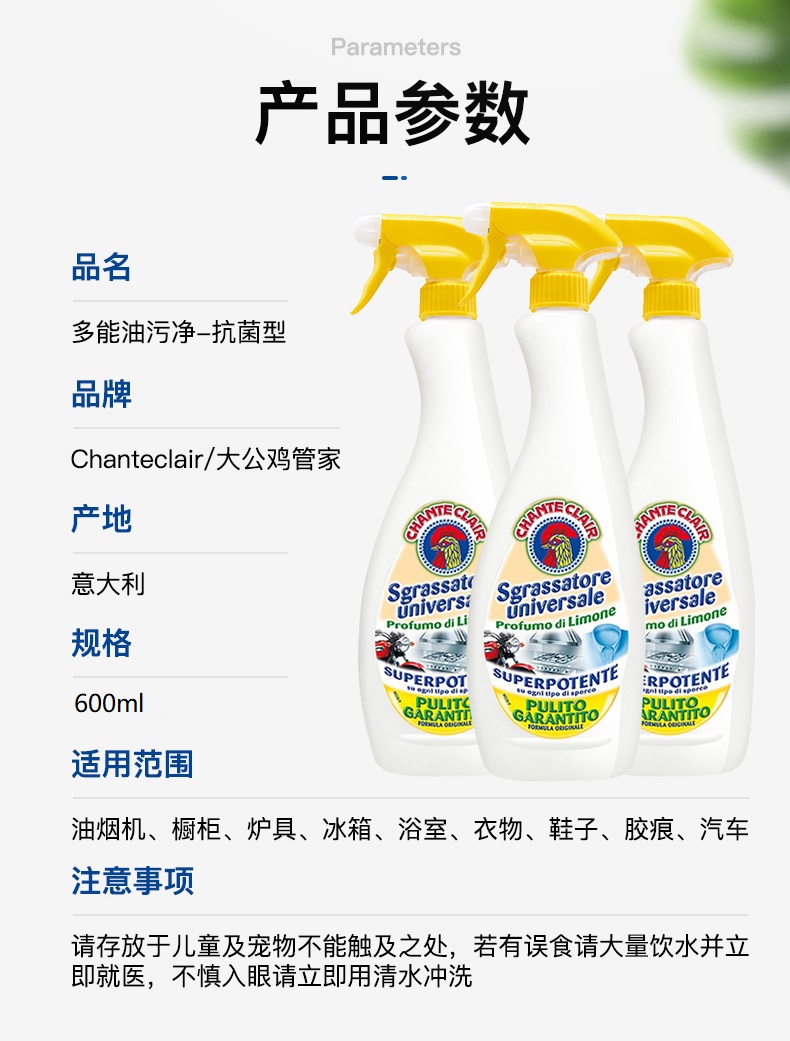 【中欧班列3瓶】意大利清洁剂 原装进口大公鸡管家多能去污清洁剂套装600ml/瓶OC