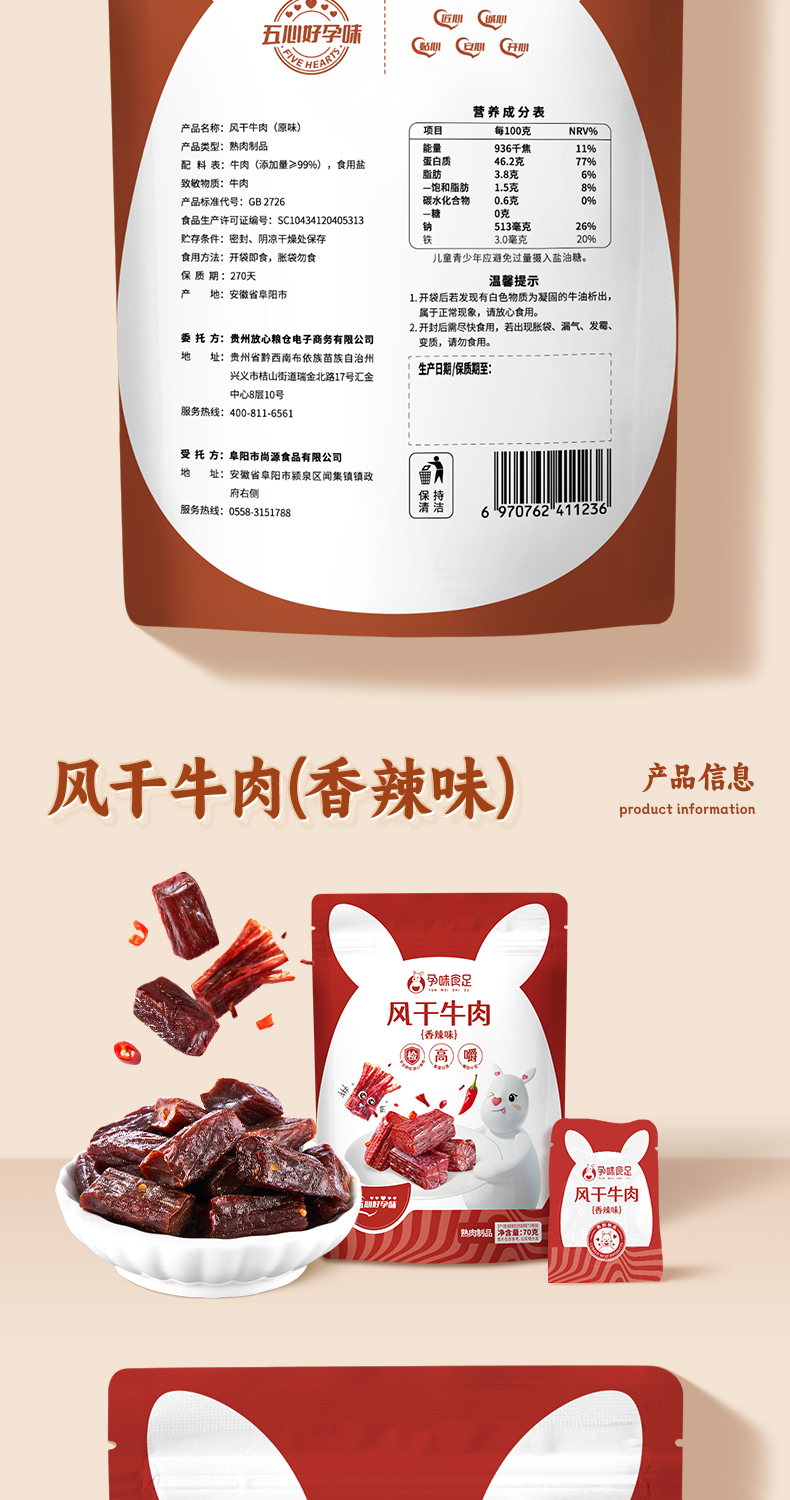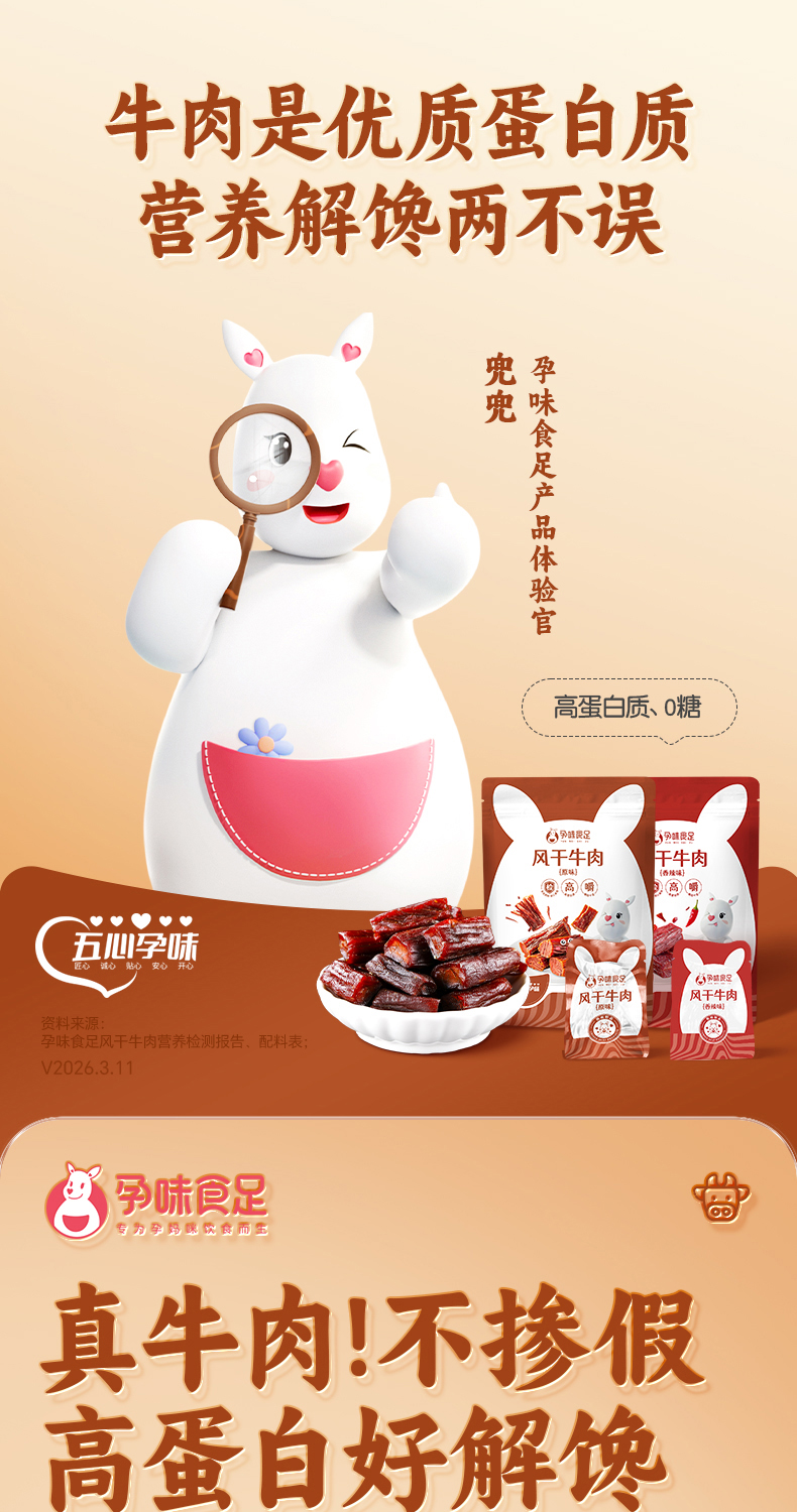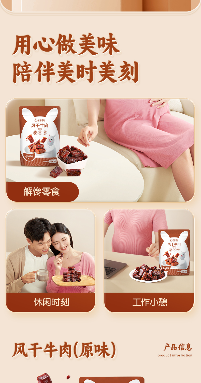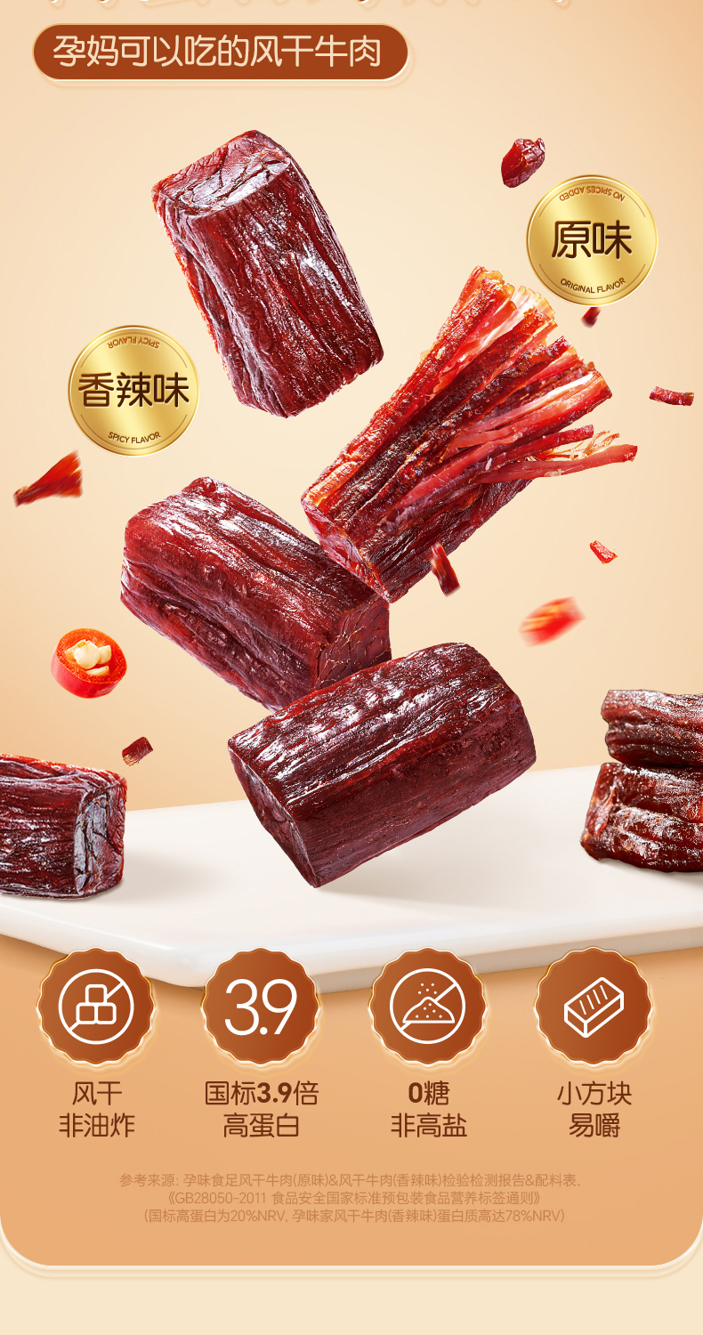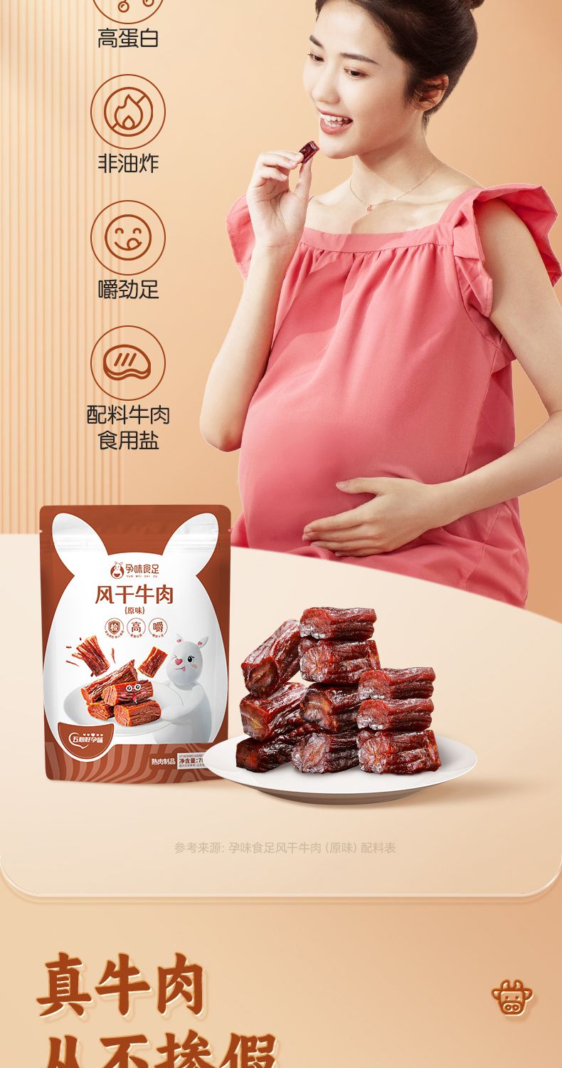 【品牌直发】孕味食足孕妇可以吃的无添加剂原味手撕风干牛肉干低脂解馋扛饿零食
